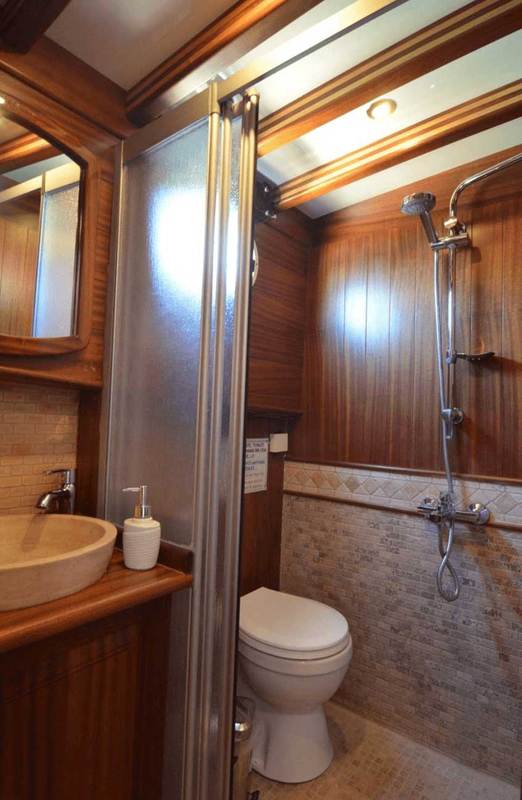 Shower, WC and Air Conditioning are available in the cabins of this gulet, which offers every opportunity for a comfortable tour of your blue cruise.