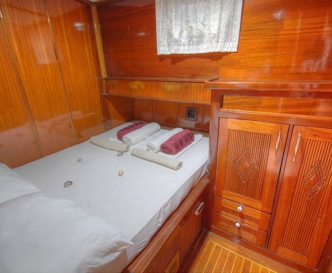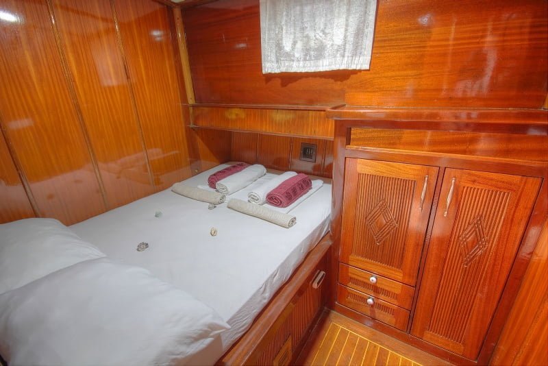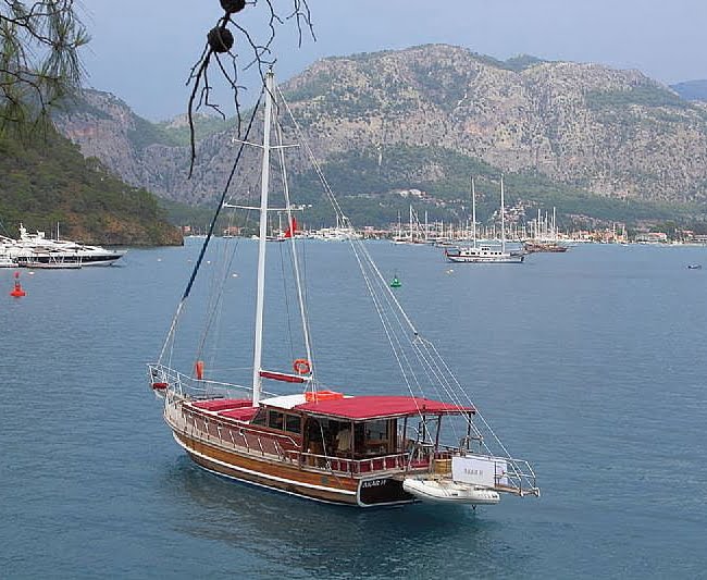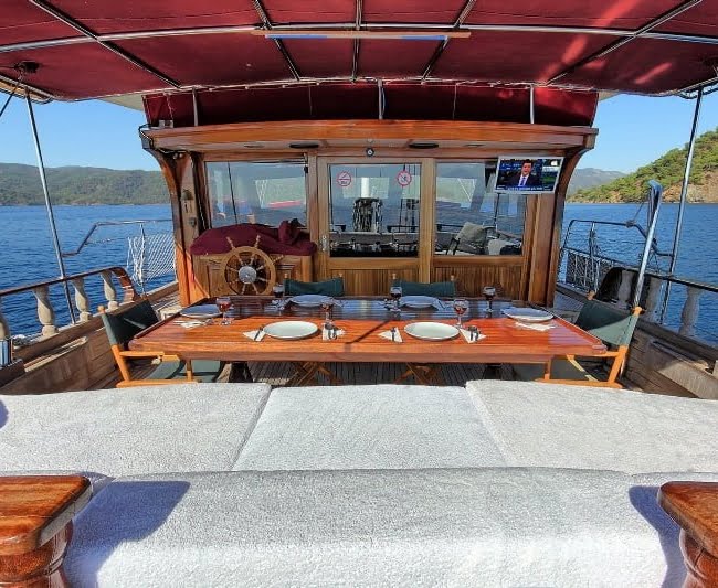 Akar is a 2008 built gulet available to charter from Gocek. Comfortably sleeping up to 6 people in her 1 master and 2 double cabins; each cabin has air conditioning and is en-suite. Lay back and relax while our team of 3 host your every need. Akar has a beautiful open plan kitchen/dining area, perfect for those unforgettable nights bonding with your fellow guests. In her lounge, you can enjoy DVD, TV and listen to music! Want to explore the sea a bit more canoe, fishing and snorkelling equipment are at arm’s length for you to enjoy.