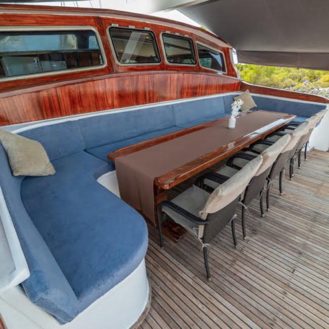 Gulet Albatros D serves its guests with an experienced skipper, 1 cook, 3 sailors, and 1 service staff who know all routes like the palm of your hand.