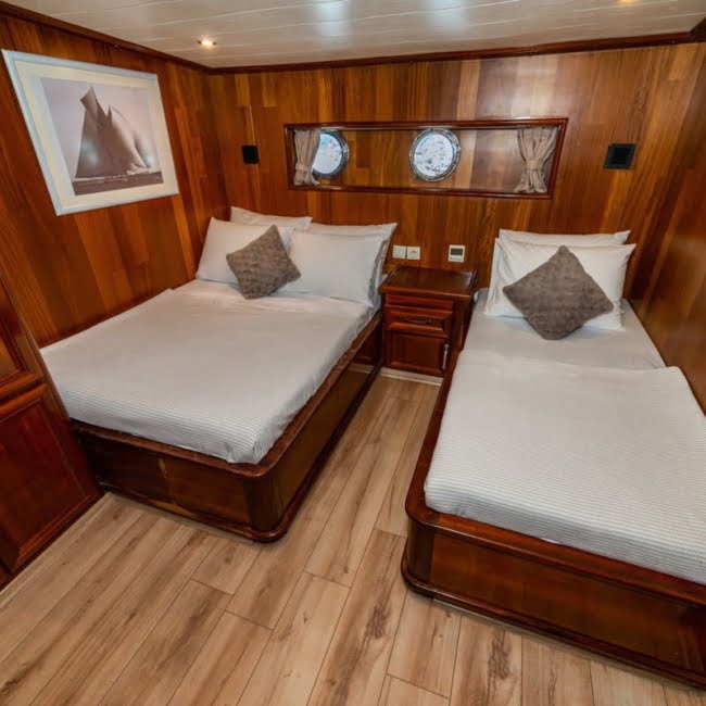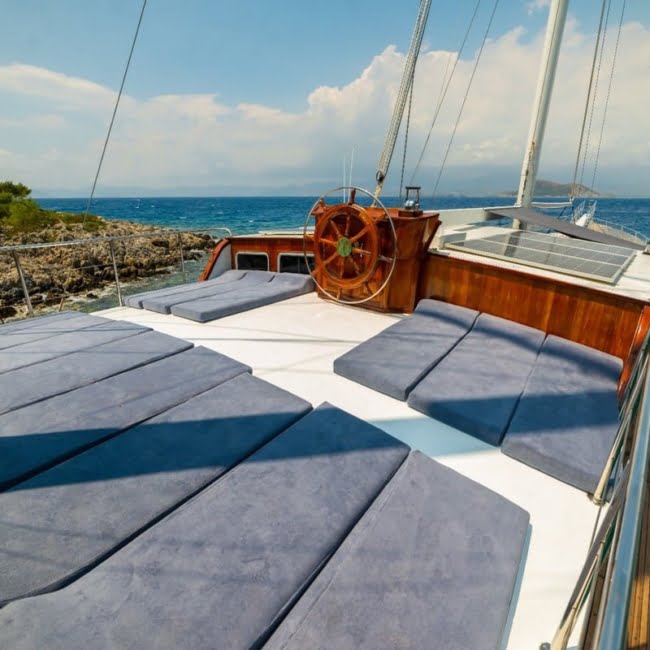 Gulet Yacht Albatros D is a very comfortable yacht with a flat deck of 36 m. 8 double and 1 tripple in total 9 cabins can accommodate 18 people comfortably.