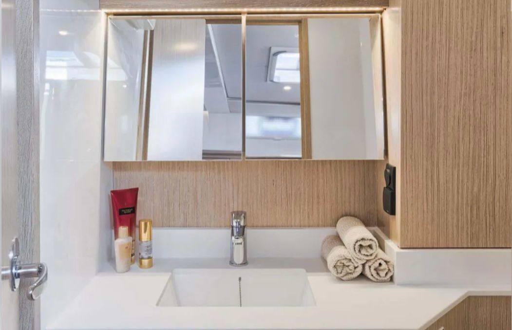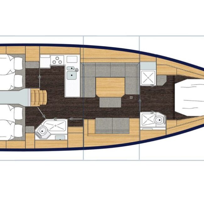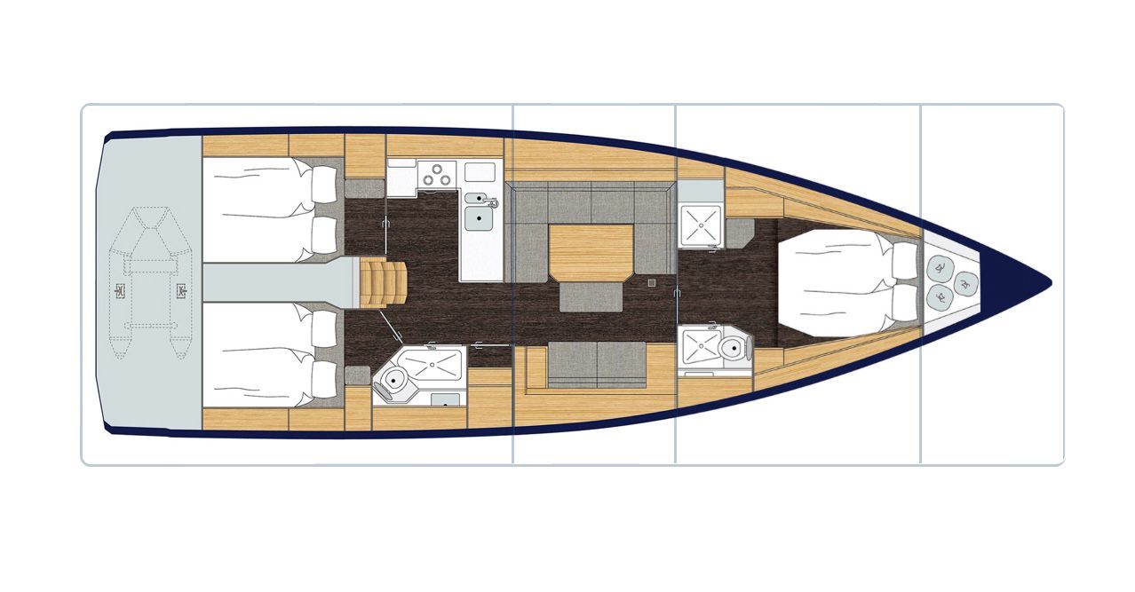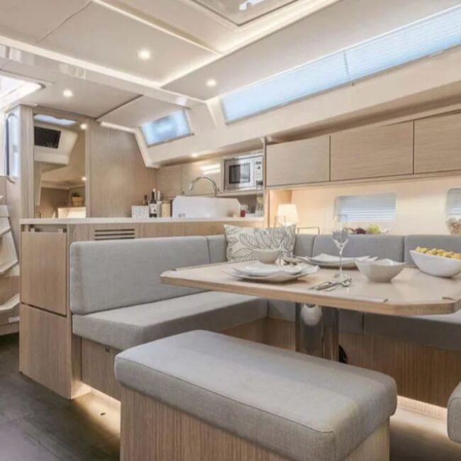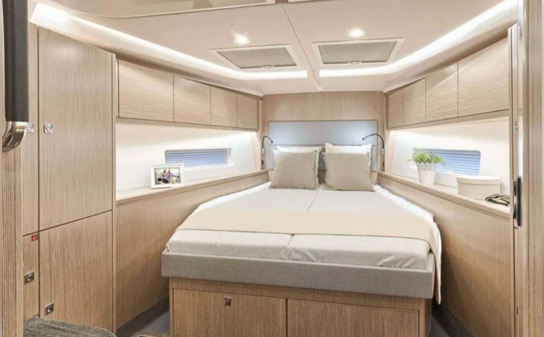 Şık ışık şeridi: Hiçbir zaman yeterince doğal ışık alamazsınız. Bu nedenle salona parlaklık kazandırmak için ekstra uzun pencereler eklenmiştir. Yelken açmak ve dinlenmek için en iyi yer kokpittir. Ve yelken açarken her şey iki dümen istasyonundan kontrolünüz altında. Barbekü ızgaralı ıslak bar: Kokpit alanı barbekü alanına dönüşüyor. Gazlı barbekü ve buzdolabı içeren katlanabilir ıslak bar sayesinde çok basit. Yüzme platformunda rahatlayın ve denize yakın olun. Bot garajına yüzme platformundan da kolayca ulaşılabilir.