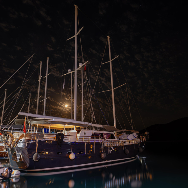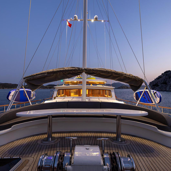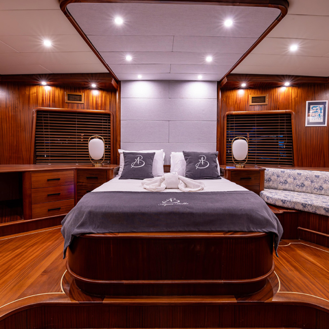 Aqua Bella Gulet is an elegant and welcoming yacht designed for guests who want to experience both comfort and tranquility at sea. This beautiful 24-meter gulet was completely renovated in 2023 and equipped with modern details to provide a relaxing and enjoyable blue cruise experience. The yacht accommodates up to 11 guests in 5 cabins, including 2 master cabins, 1 double cabin, 1 triple cabin, and 1 twin cabin. Each cabin features a private bathroom, toilet, and air conditioning to ensure maximum comfort throughout the journey. A professional crew of four, consisting of a captain, chef, and two deckhands, takes care of every detail during the trip so guests can simply relax and enjoy the sea, sun, and breathtaking bays. With its spacious deck areas, comfortable seating corners, and sunbathing cushions, Aqua Bella Gulet offers the perfect setting to spend your days swimming in crystal-clear waters, sunbathing, or sharing unforgettable moments with your loved ones. The yacht also offers various water activities such as paddle board, water skiing, ringo, snorkeling equipment, and fishing gear, adding fun and excitement to your journey. With Aqua Bella Gulet, you can explore the most beautiful bays of the Aegean and Mediterranean while enjoying an unforgettable holiday where you will feel completely at home on the sea.