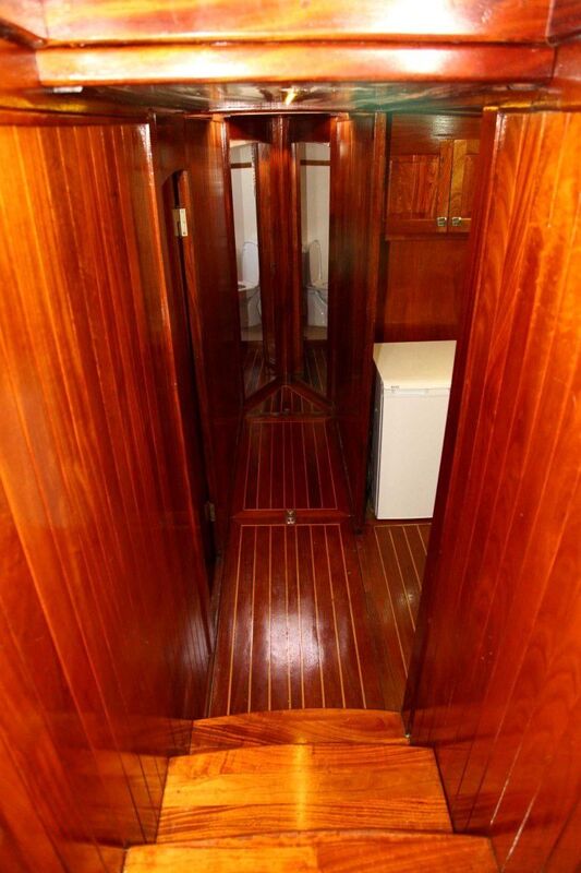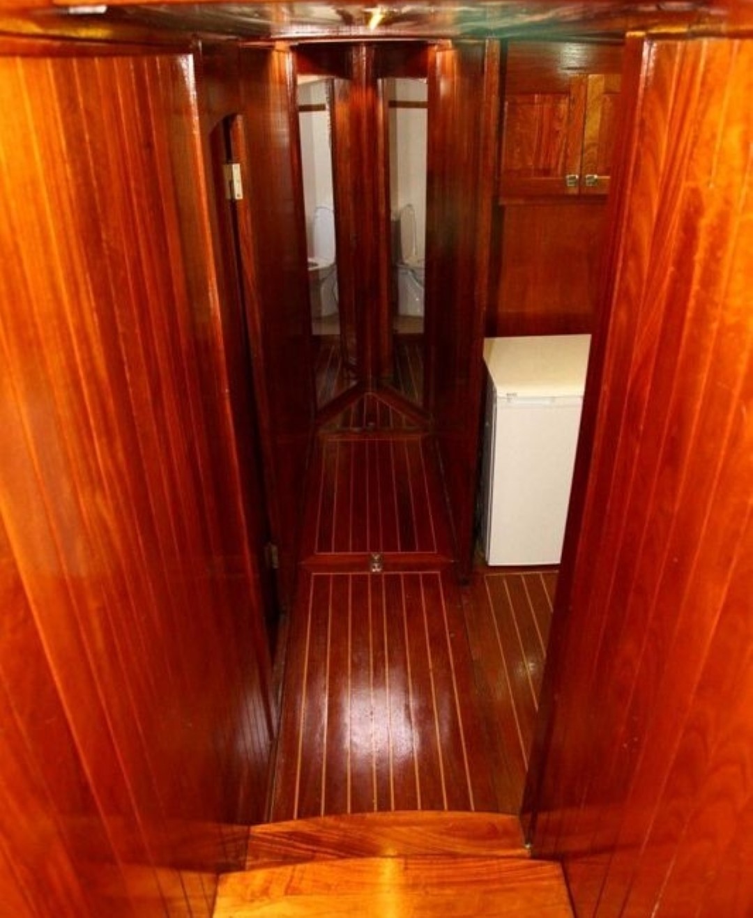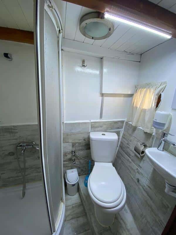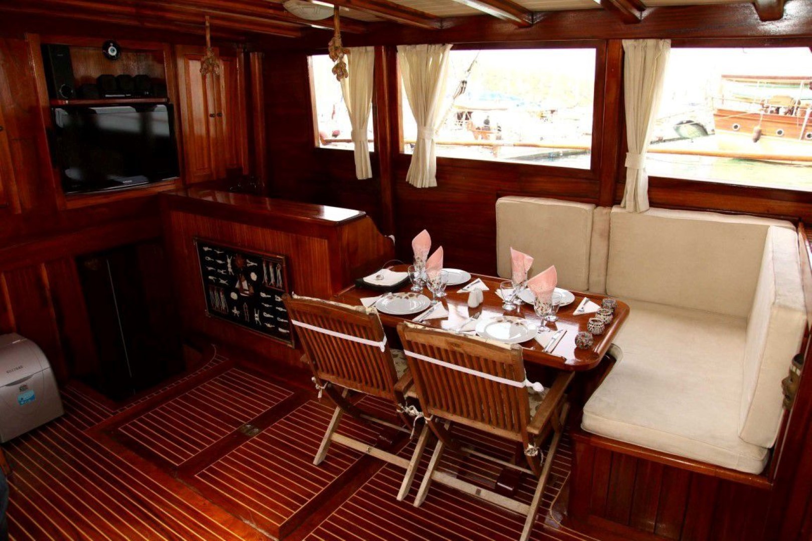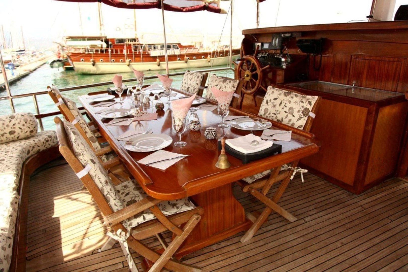 Gulet Aria has a total of 4 cabins, 2 masters and 2 doubles. Passenger capacity is a maximum of 8 people. All cabins have air conditioning, bathrooms with shower cabin, WC, bath and hand towels. There is a TV, music system and sitting group in the living room. fishing equipment, mask, fins, snorkel, backgammon, okey and playing cards are on board.