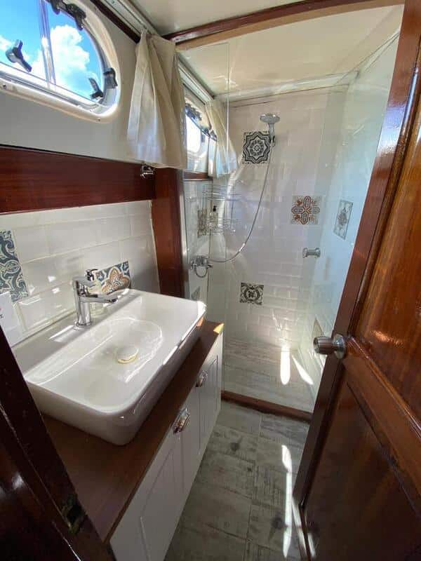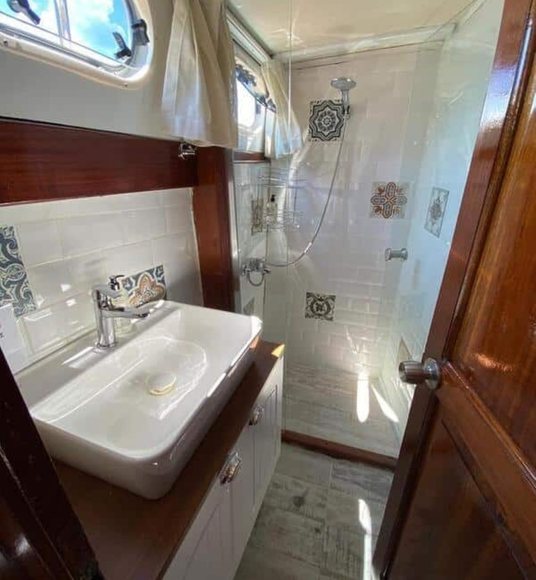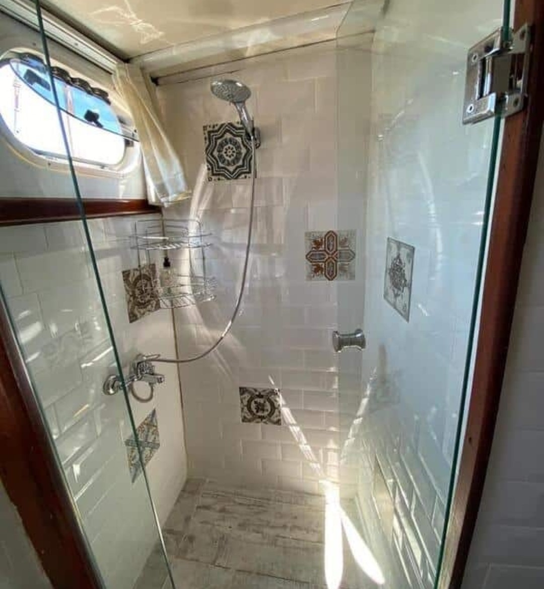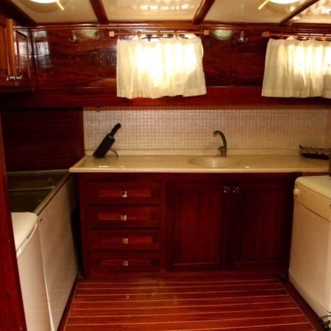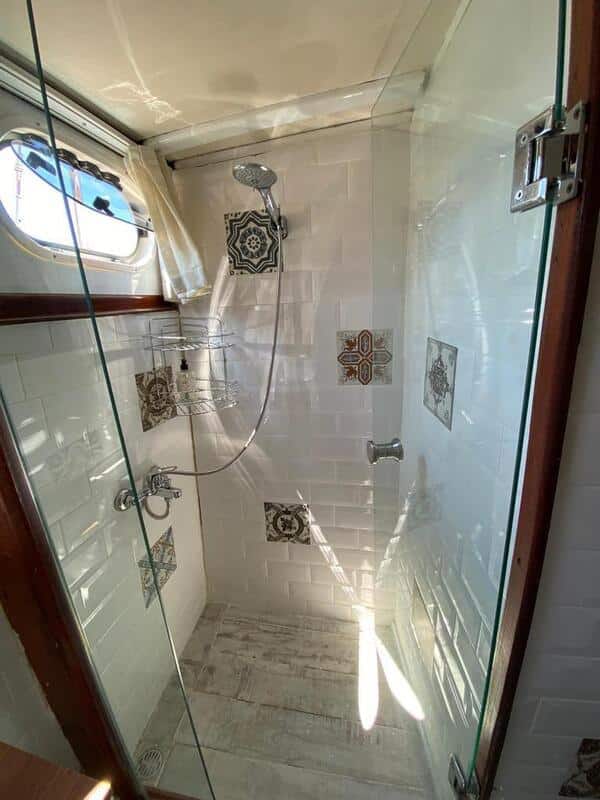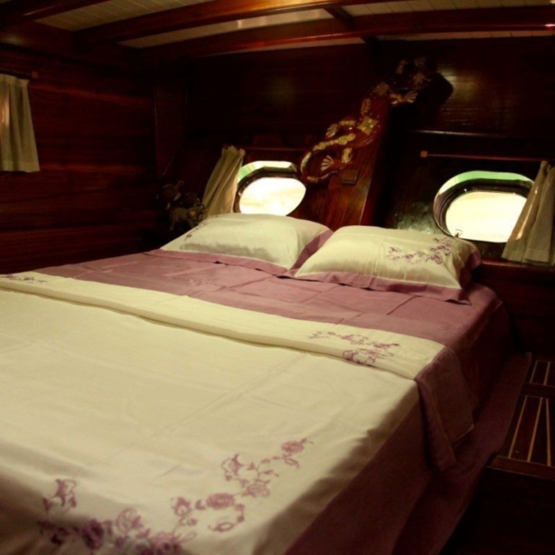 Gulet Aria has a total of 4 cabins, 2 masters and 2 doubles. Passenger capacity is a maximum of 8 people. All cabins have air conditioning, bathrooms with shower cabin, WC, bath and hand towels. There is a TV, music system and sitting group in the living room. fishing equipment, mask, fins, snorkel, backgammon, okey and playing cards are on board.