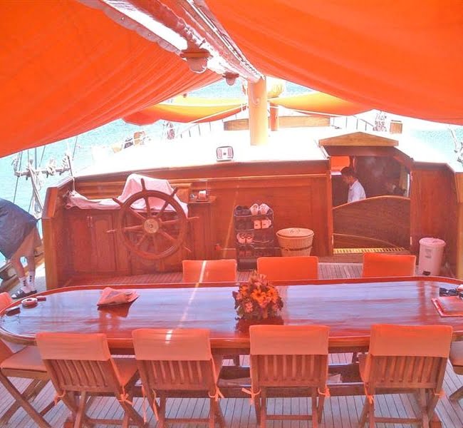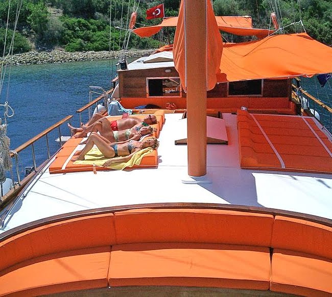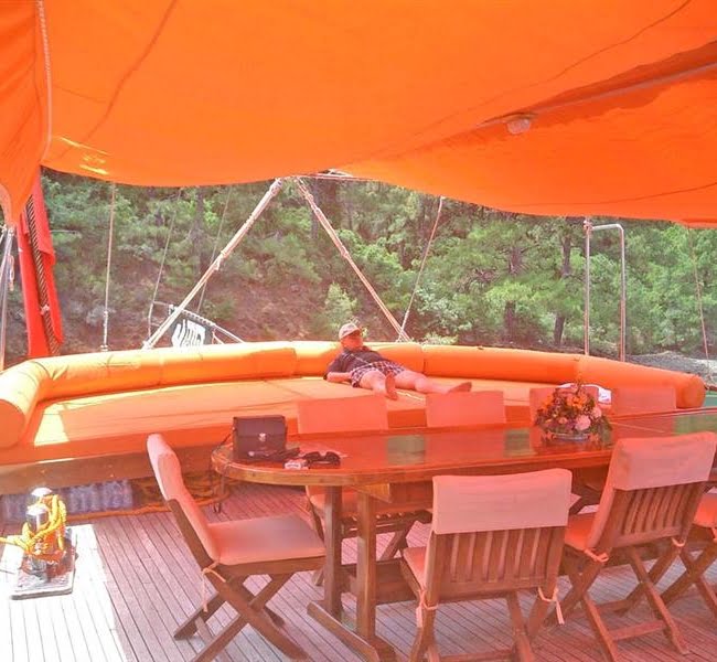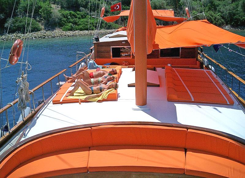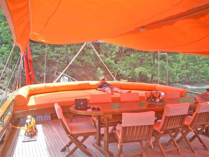 Explore freedom in Asensena, a 28 metre luxury gulet. With her 2 masters, 2 twin and 2 double cabins she can sleep up to 12 guests in comfort. Each cabin is air conditioned and en-suite. Flying the Turkish flag Asensena was built in 2005; she is traditional and elegant. She offers music, TV and DVD in her beautiful lounge, relax in the sun and explore the sea with her snorkelling gear.