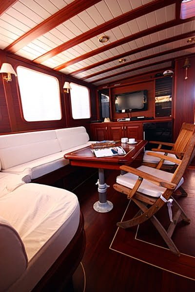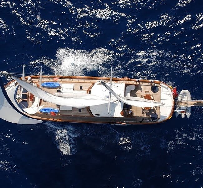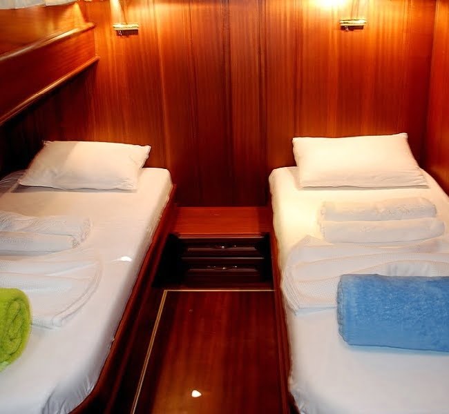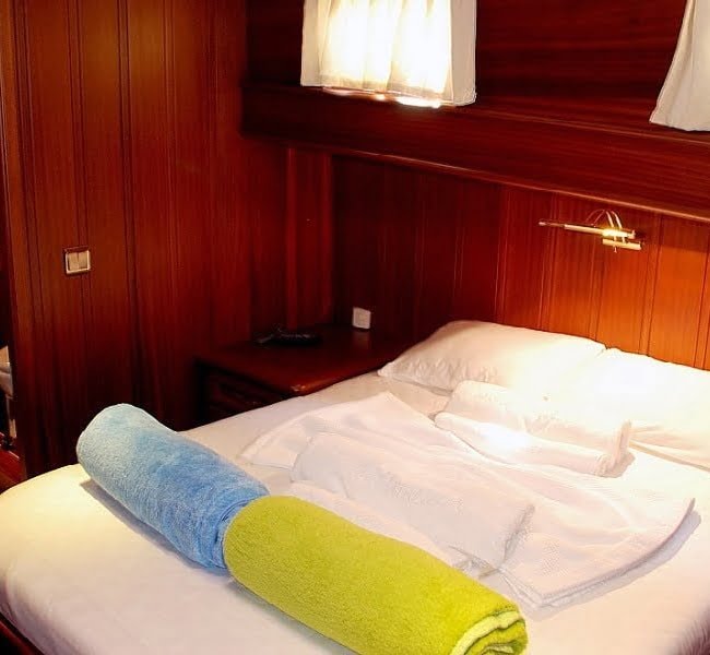 Atalante was launched in the year 2009 with 4 stunning cabins welcoming up to 8 guests. Classed in the deluxe category you can easily see why with the quality of the workmanship and wooden finishings. She is a favored gulet due to her spacious and pleasant living areas. Each cabin is air-conditioned and en-suite. Atalante has a length of 24 meters and features include seating areas, a dining table, a bar, a TV, a DVD player, a canoe and snorkel equipment.