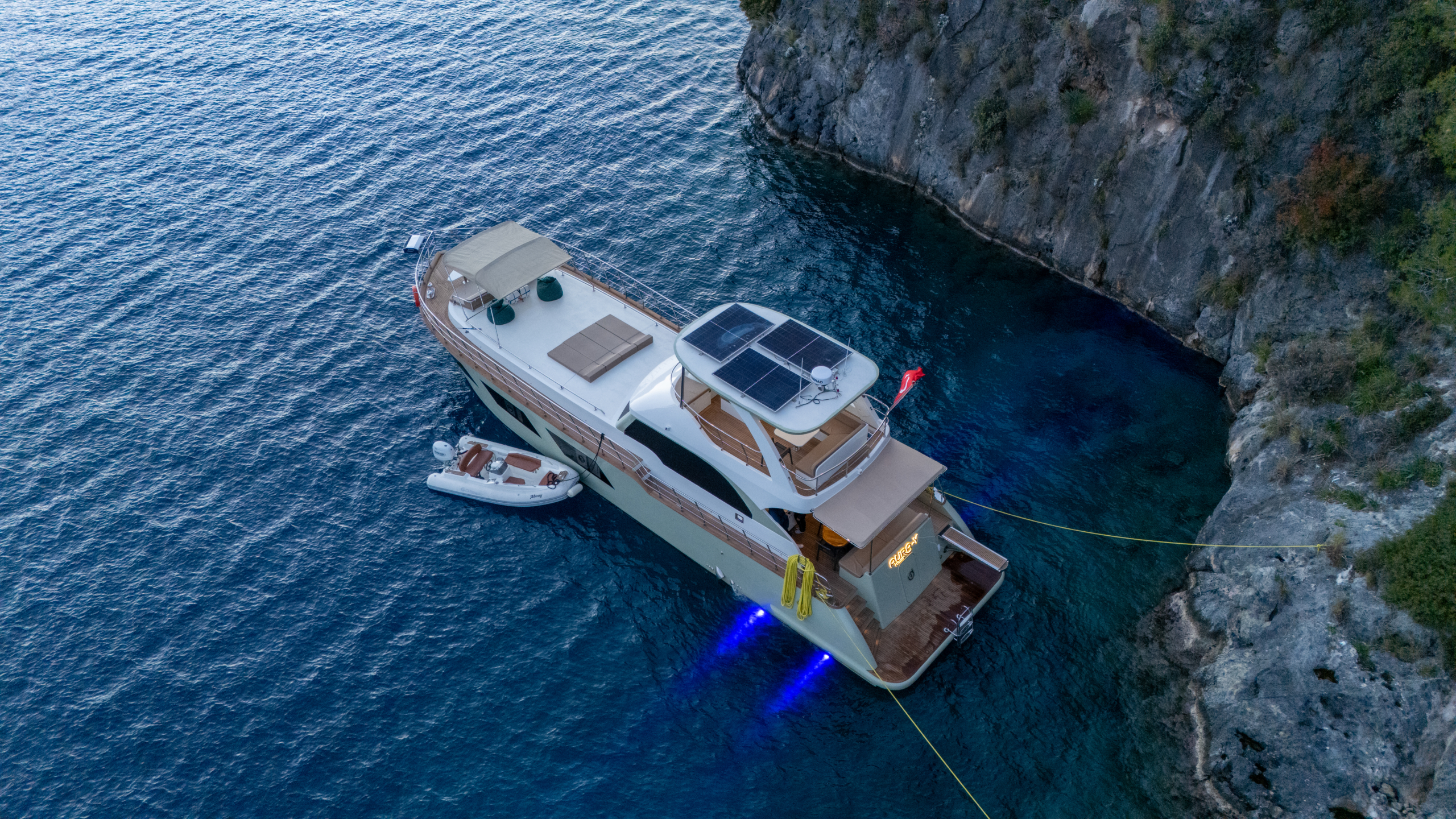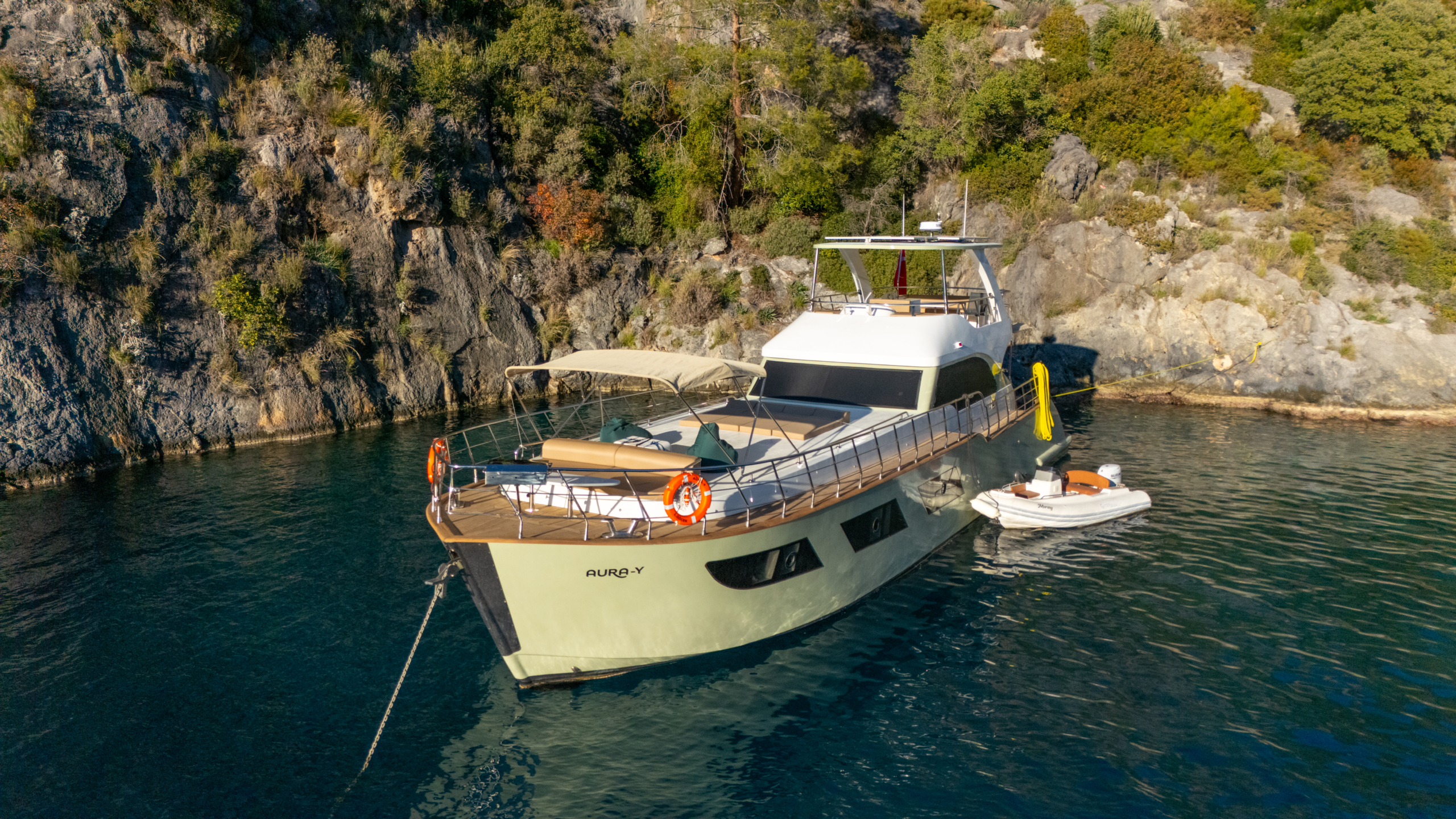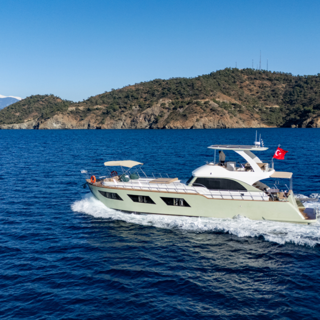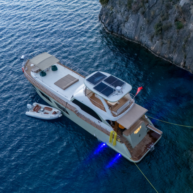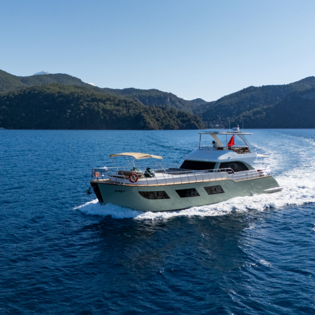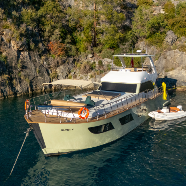 AURA-Y is a 20-meter charter yacht, launched in Fethiye in late 2025. Designed for comfort and relaxation, she features a spacious main deck lounge and a peaceful outdoor sunbathing area.