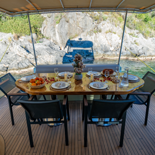 The AURA-Y crew will warmly welcome you on board and ensure you enjoy a comfortable and unforgettable experience at sea.
