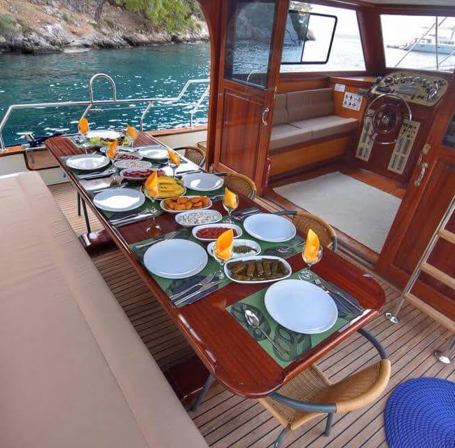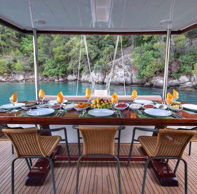 Gulet Ayna is ideal for couples looking for the perfect gulet charter in Turkey. Flying the Turkish flag from Fethiye explore the crystal clear waters around the Gulf of Fethiye and Gocek Islands. With over 200 different bays and coves, you will not visit the same place twice.