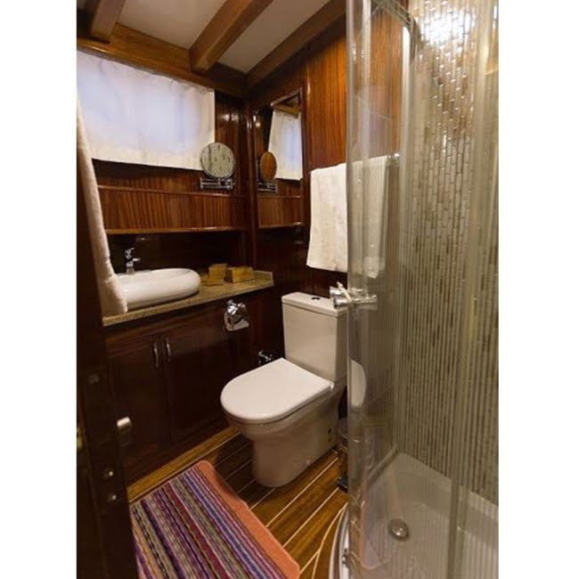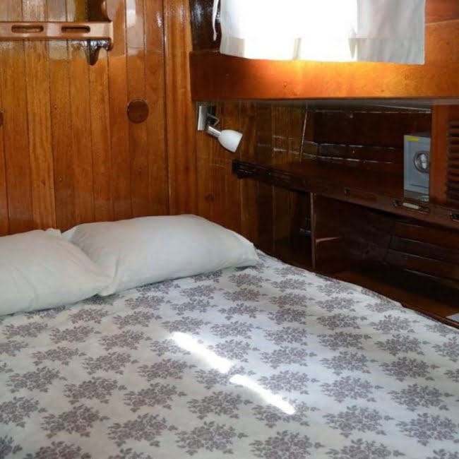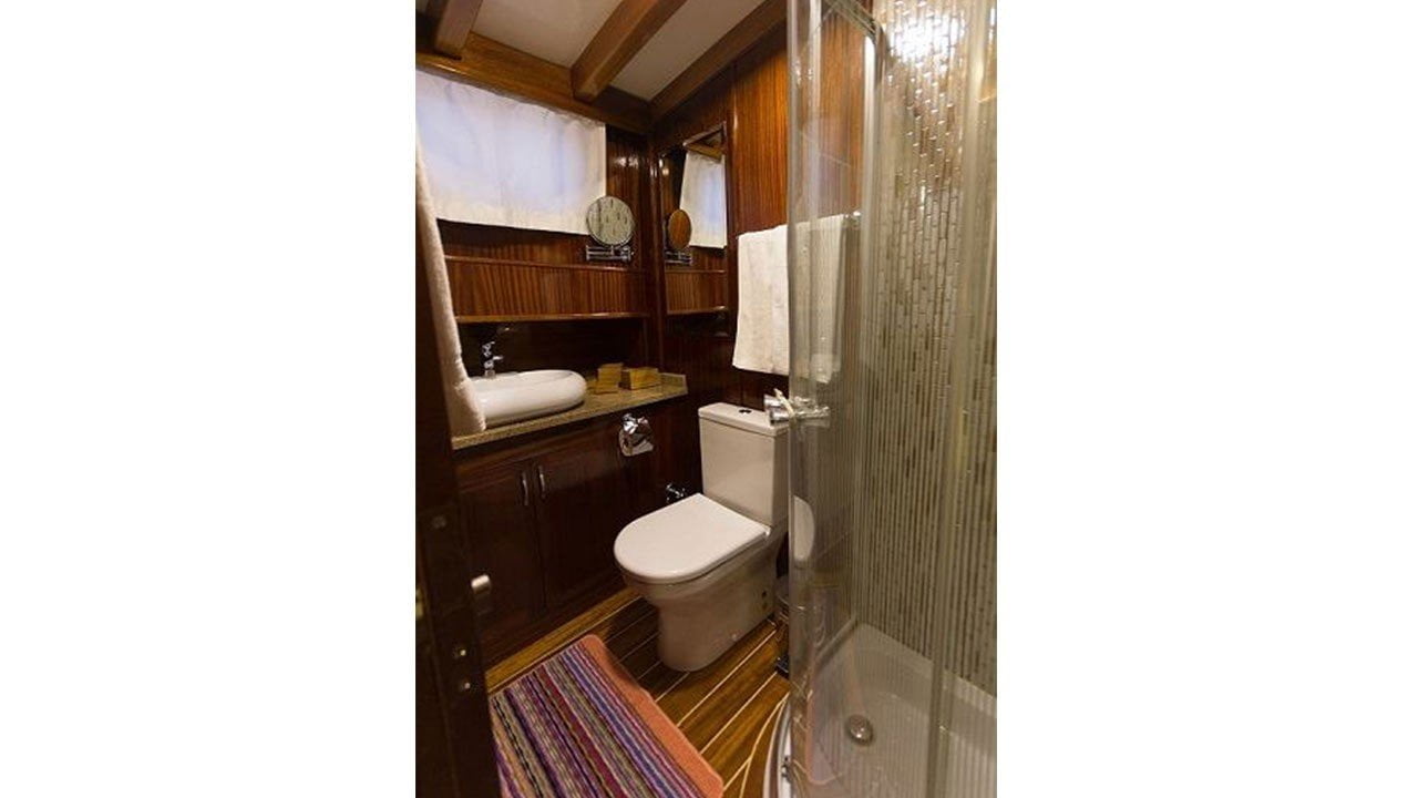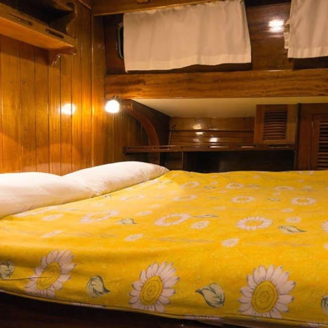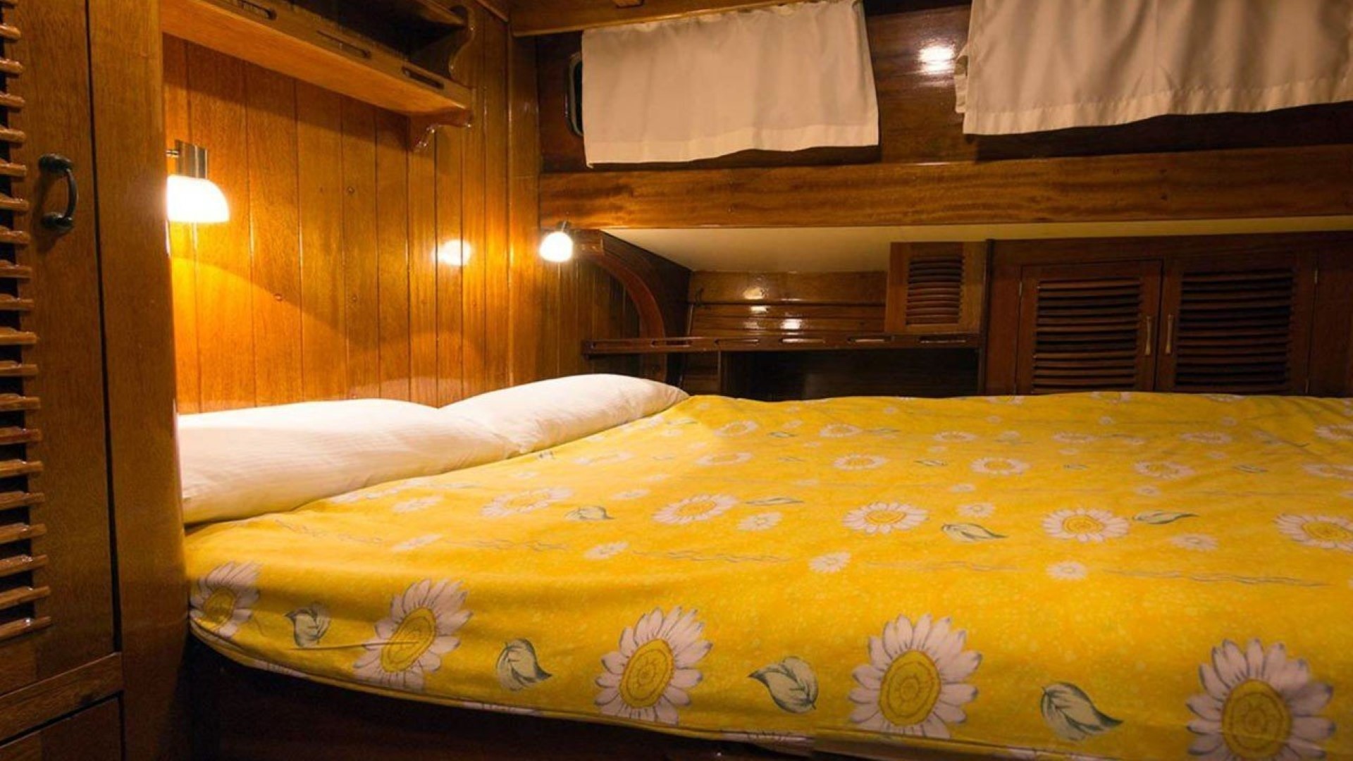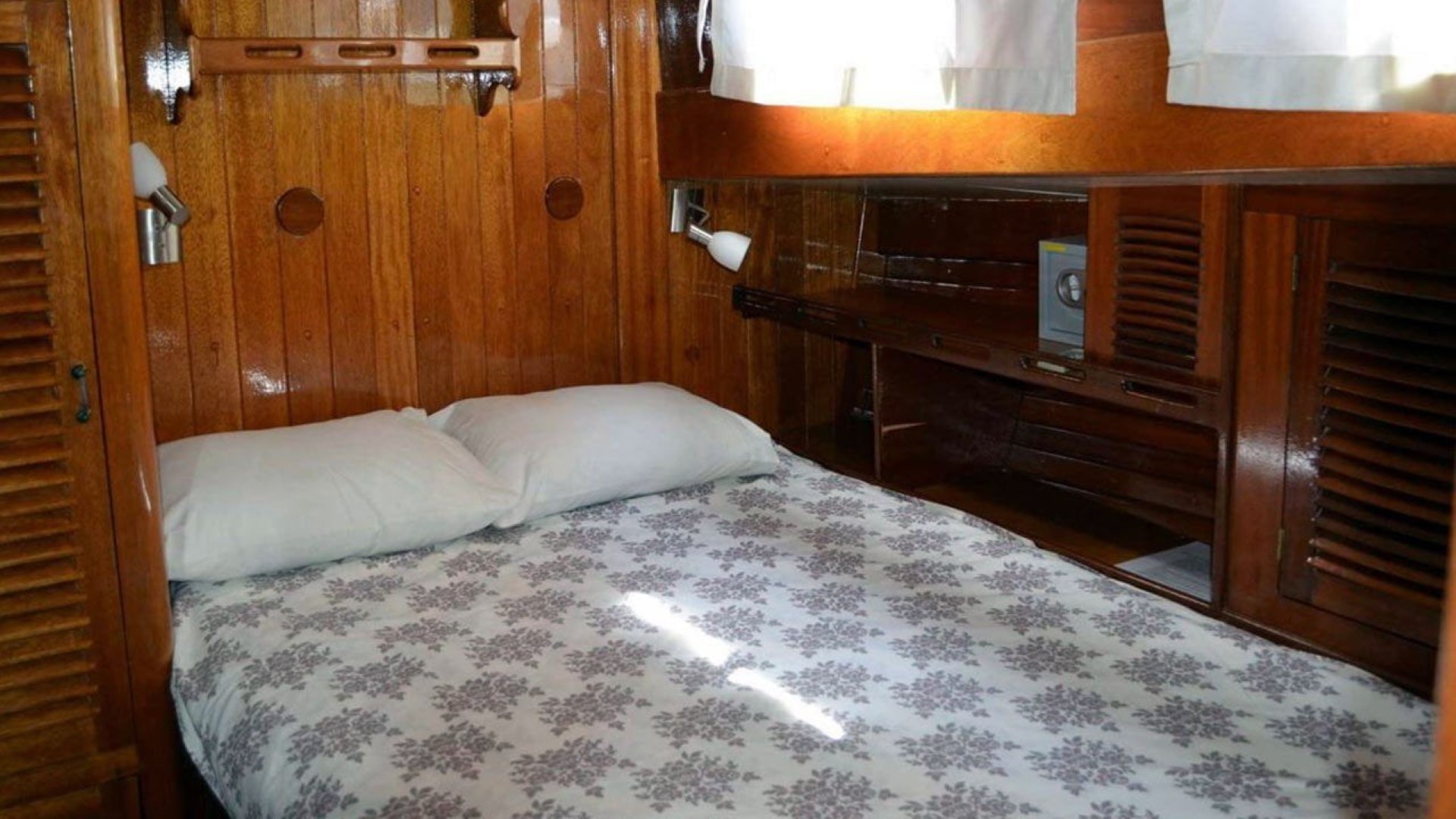 It can host a total of 12 guests, 3 Double Cabins and 3 Twin Cabins. Our cabins are large, spacious and modern, with A / C, Shower and WC.