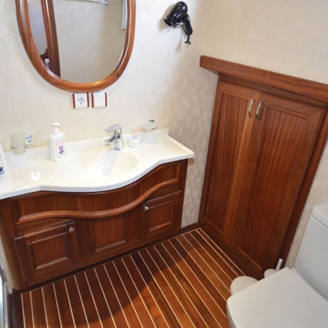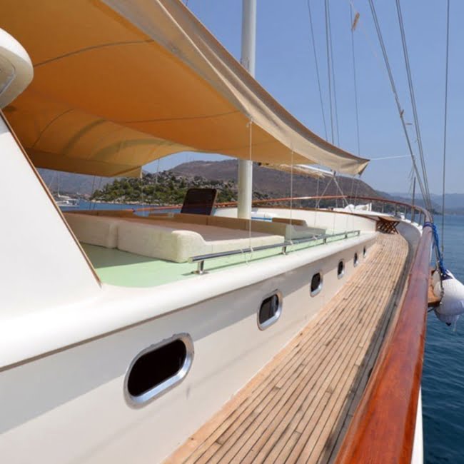 On the other hand, sun awnings, sunbeds, sea ladders, and shower facilities on the deck are among the other advantages of the boat.