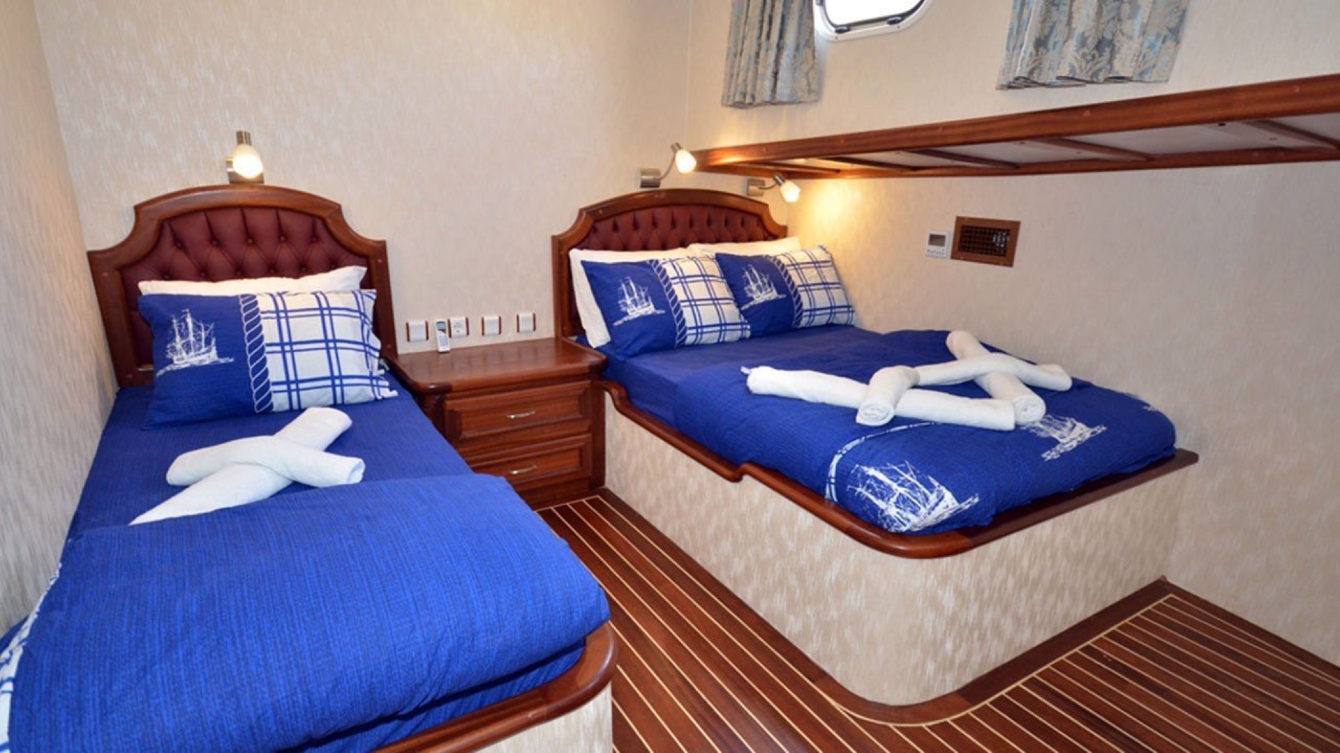 It has the capacity to host a total of 16 guests, 1 Master, 4 Double, 2 Triple, and 1 Twin cabin.
