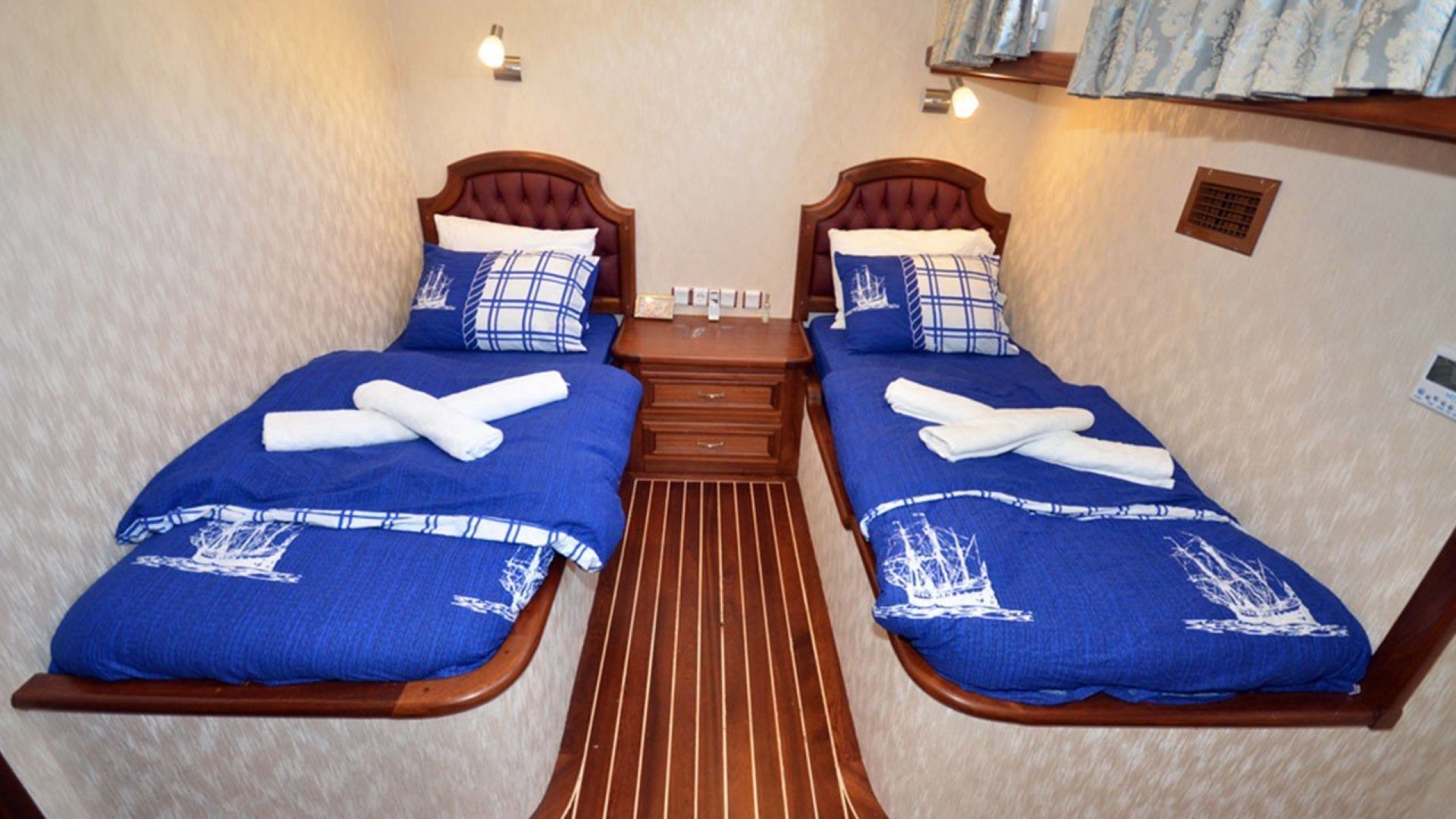 Our cabins are large, spacious and modern, with A / C, Shower and WC.