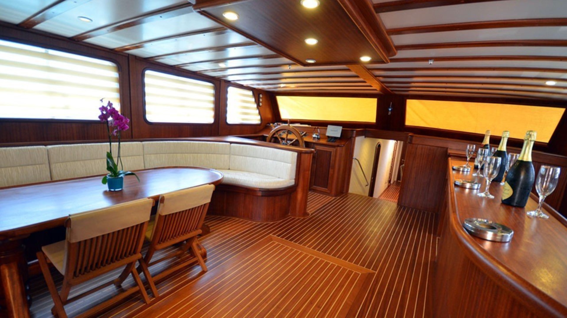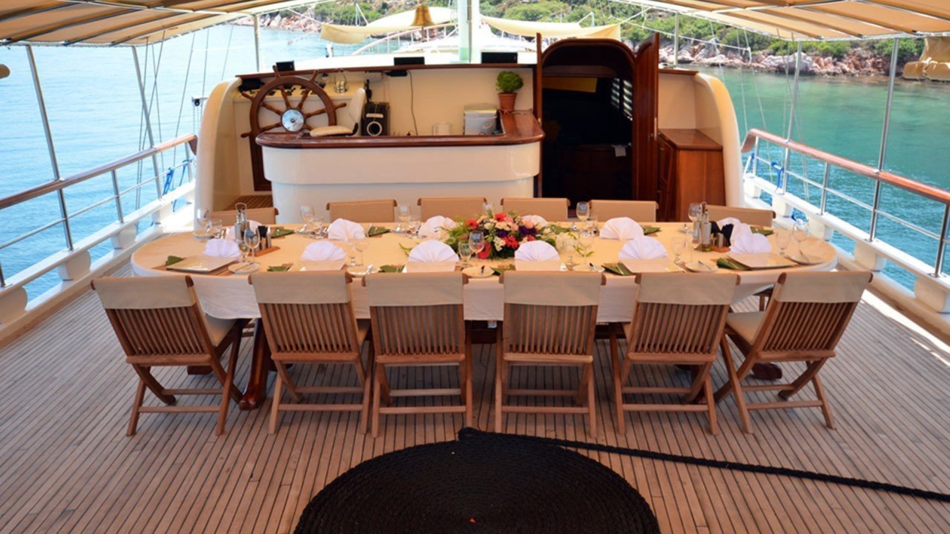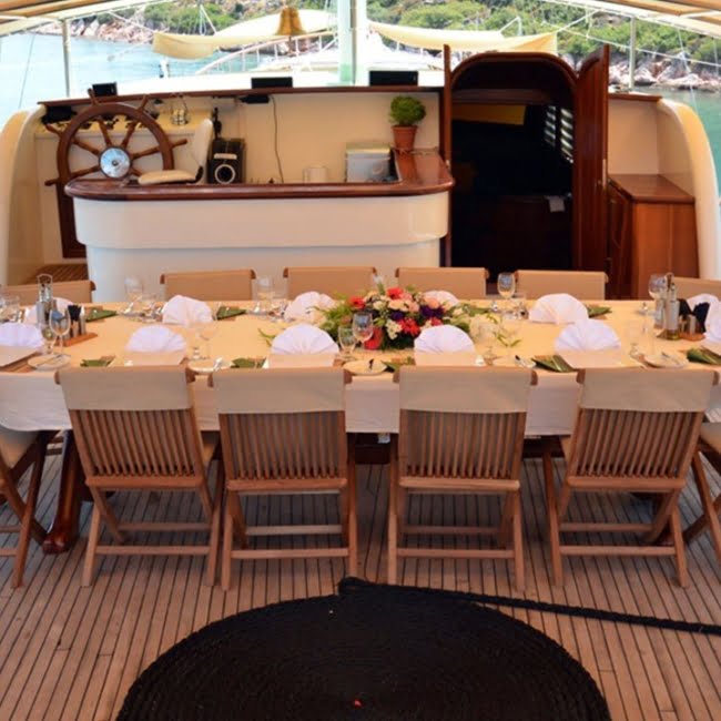 You can taste our carefully prepared meals in our fully equipped kitchen on our stern deck or at our stylish tables in the living room.