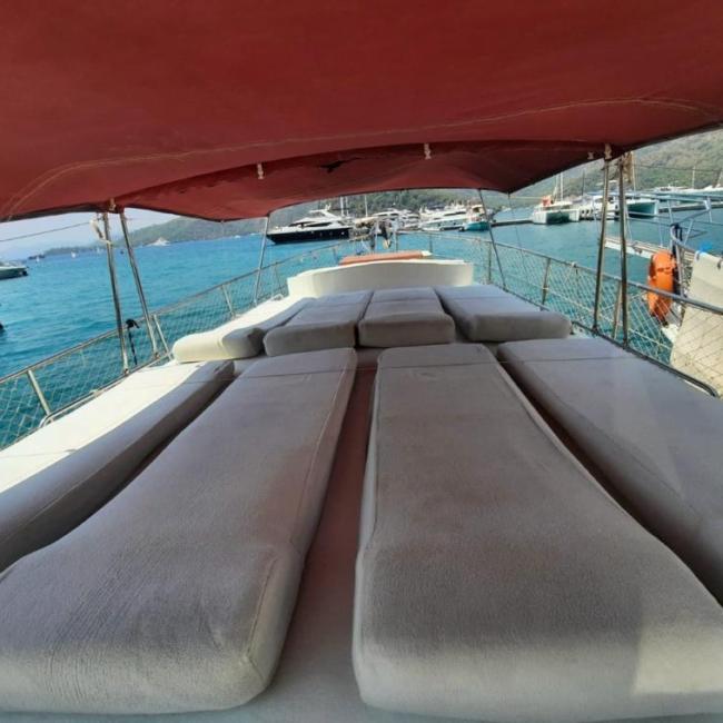 Çetin İlarslan, built in 2004, was renovated in 2019. It has a total of 3 cabins, 1 master and 2 double. Accommodation capacity is 6 people. Its length is 15 meters and its width is 4.6 meters.