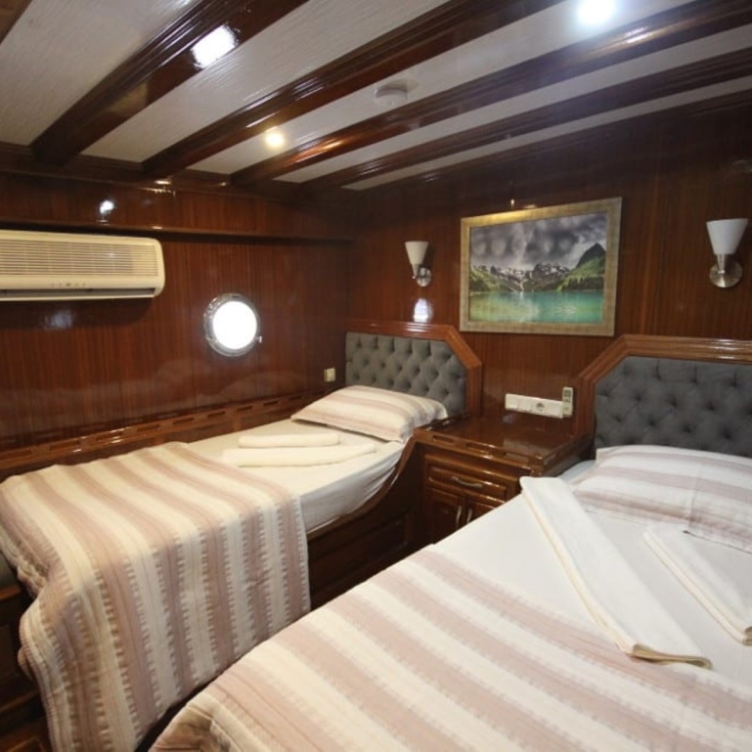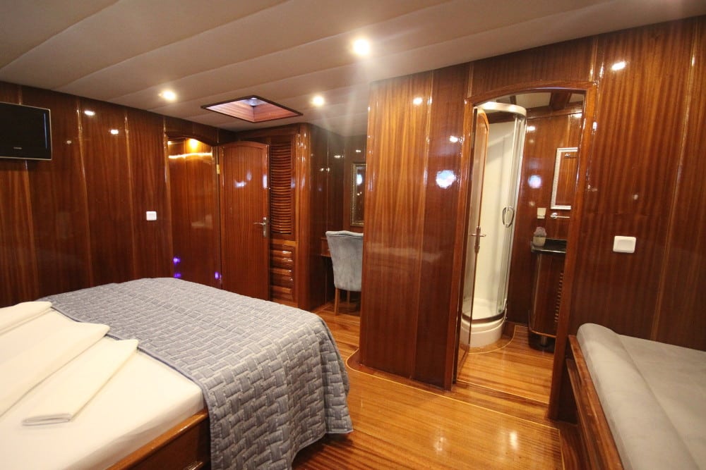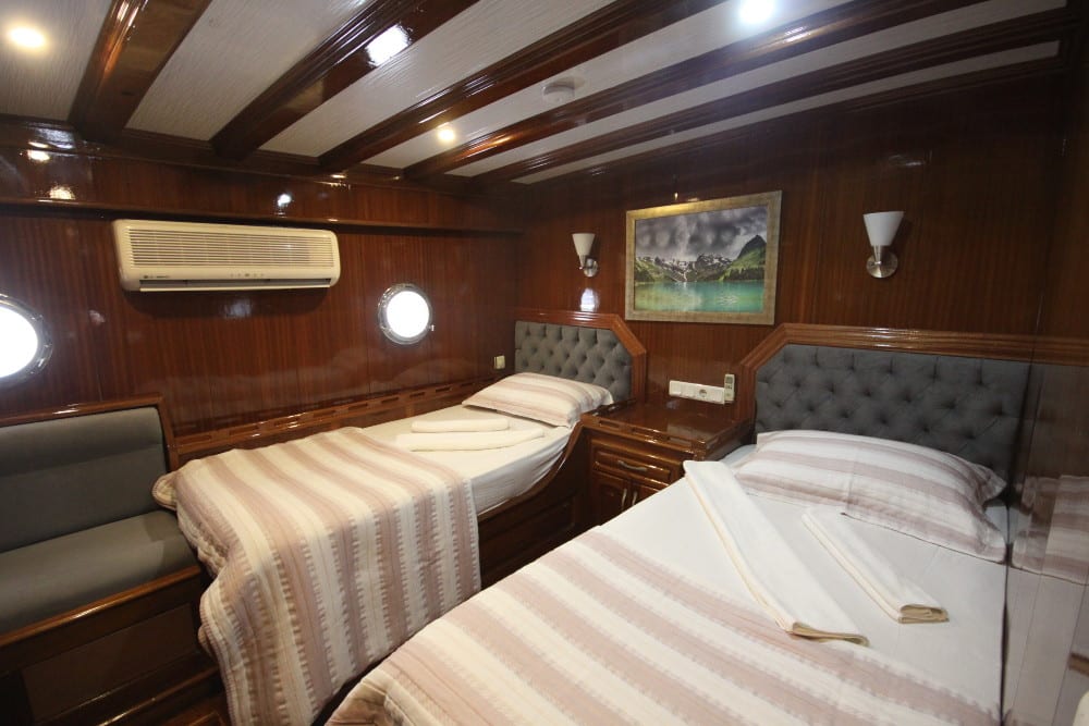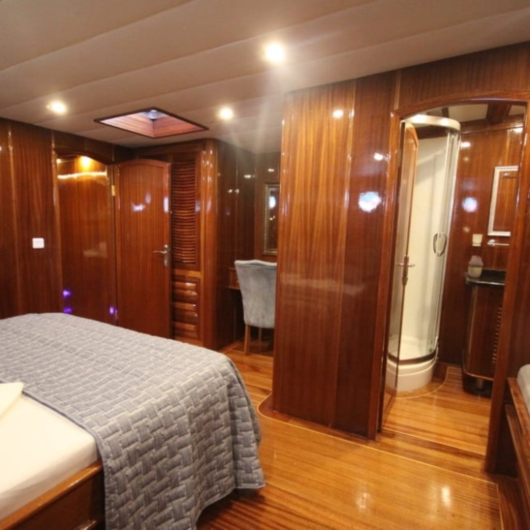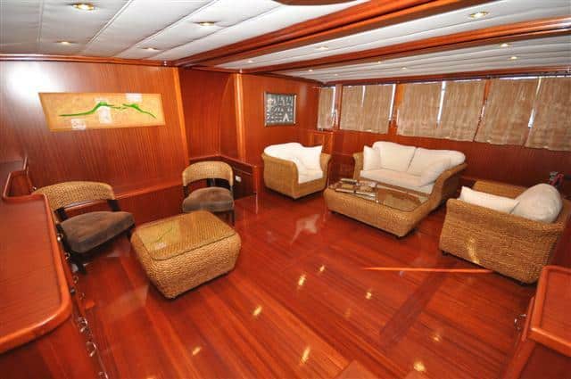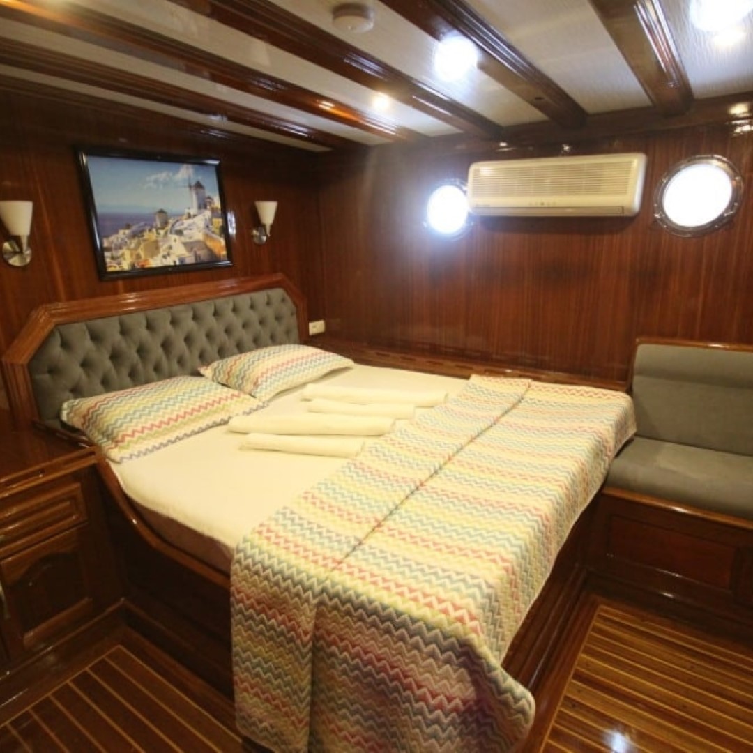 She has been designed to serve groups of up to 12 people in her 1 masters, 4 doubles and 1 twin cabins, each with 24-hour air conditioning
