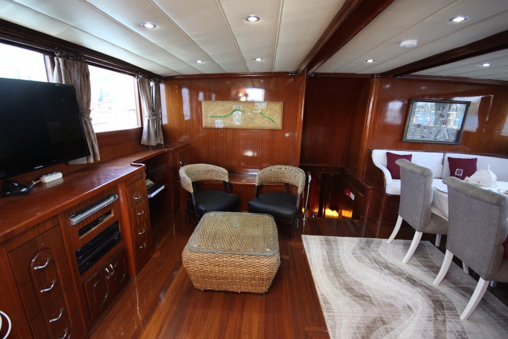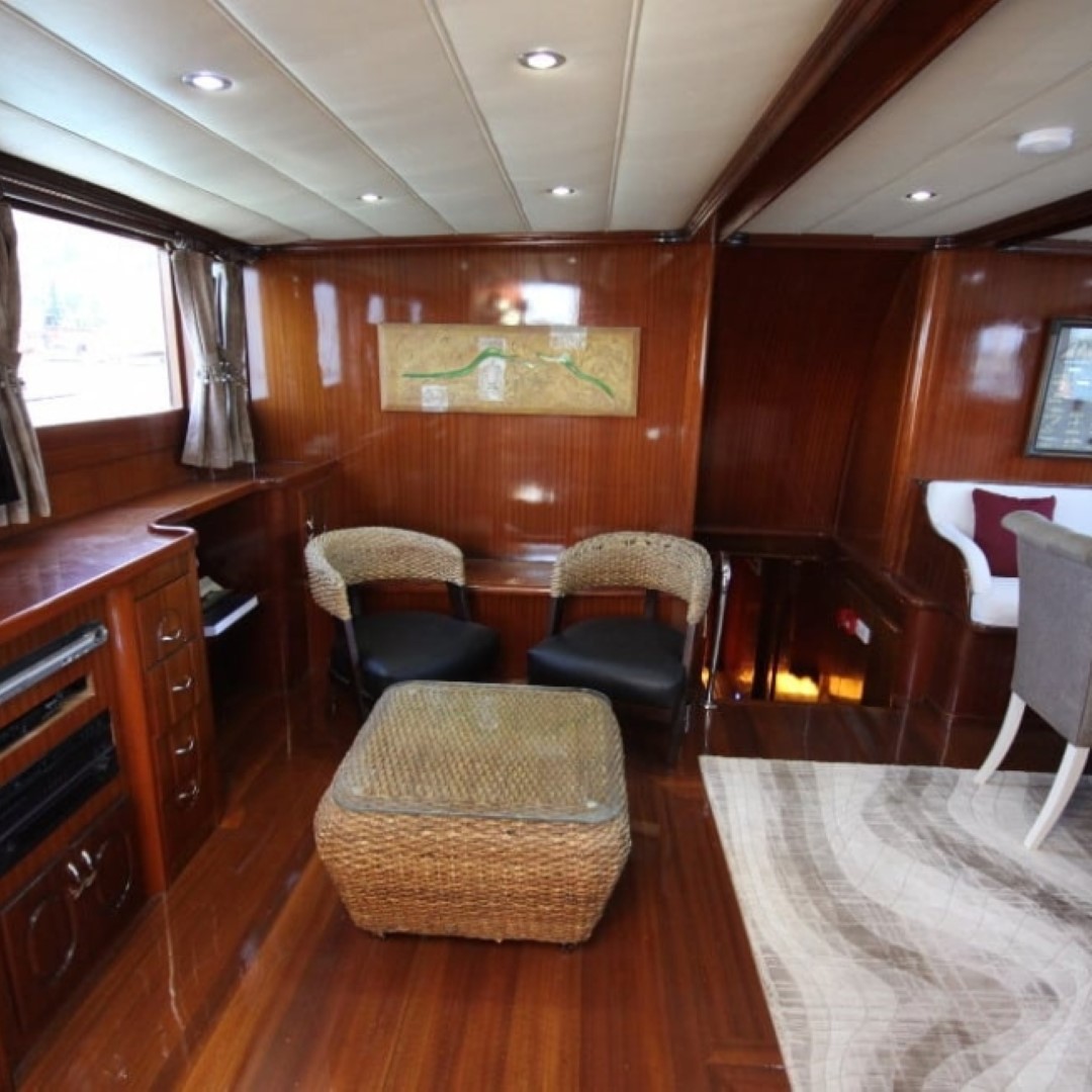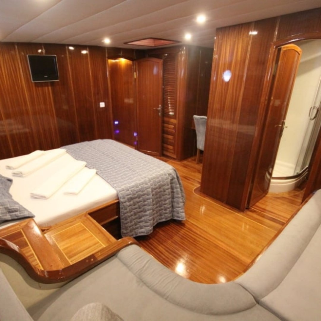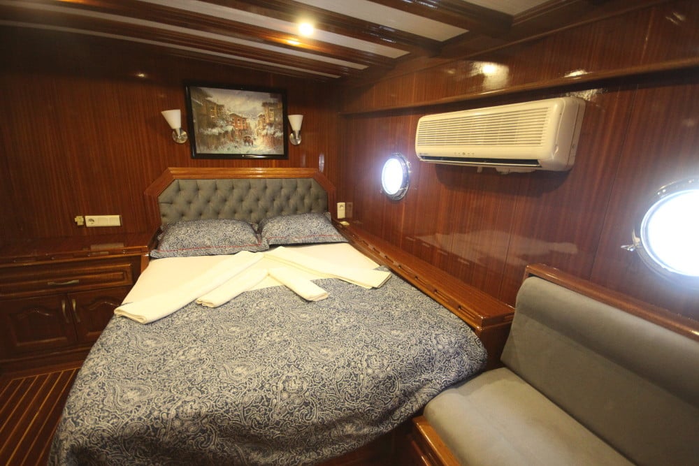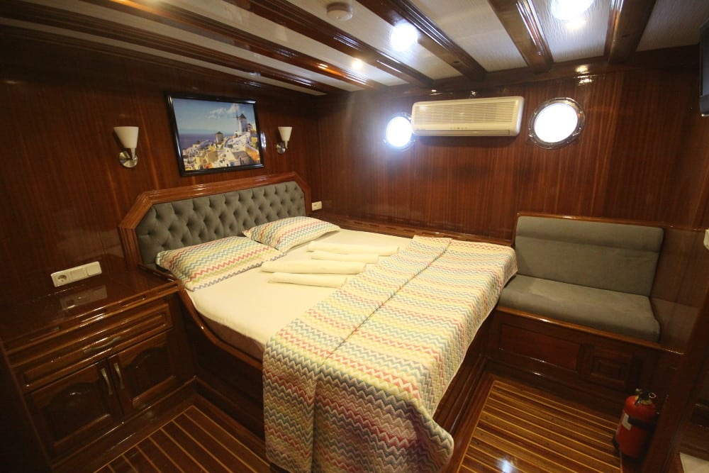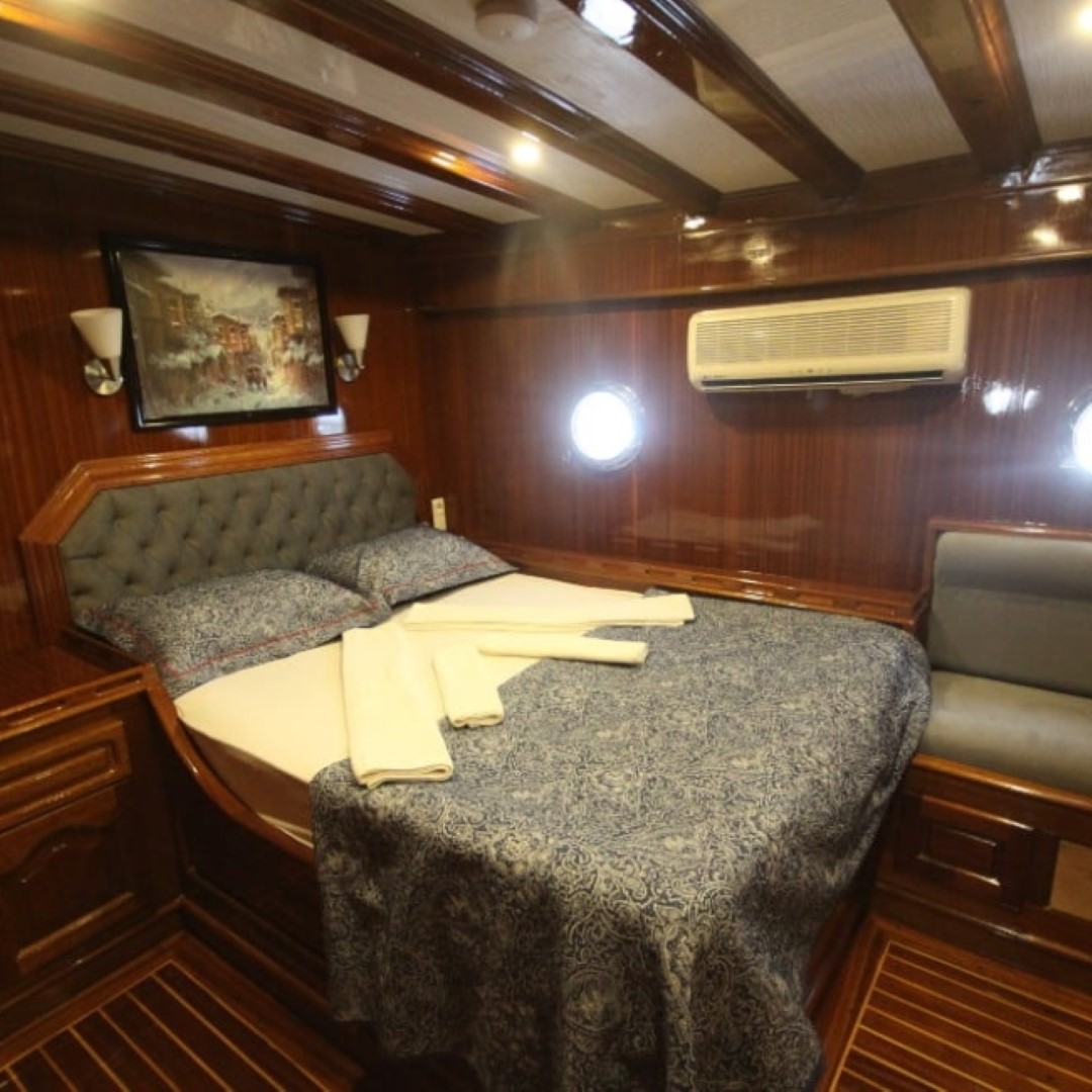 She has been designed to serve groups of up to 12 people in her 1 masters, 4 doubles and 1 twin cabins, each with 24-hour air conditioning