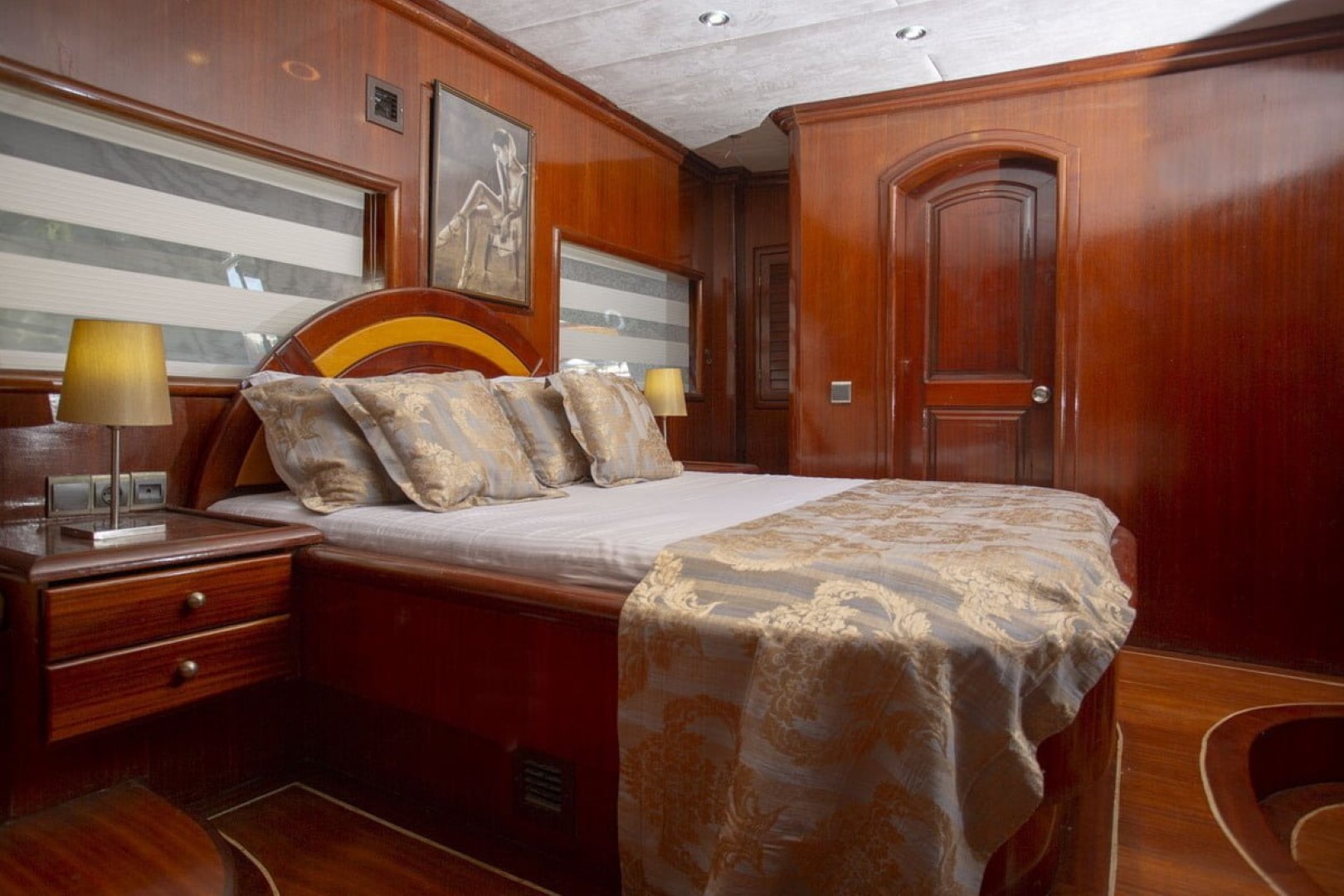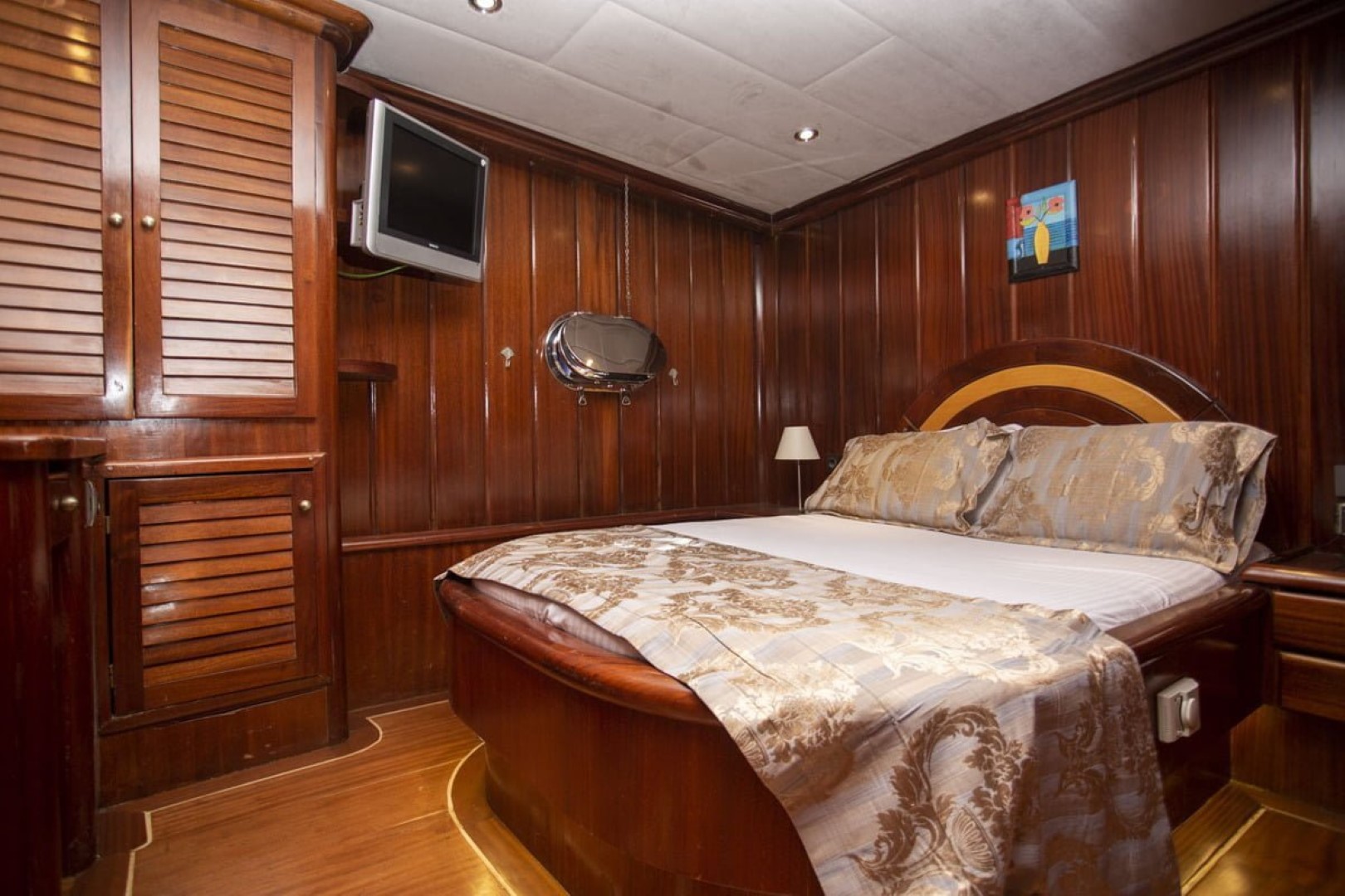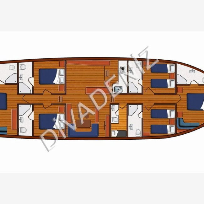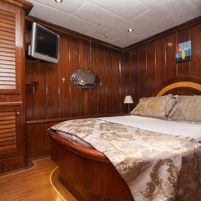 This stunning gulet Diva is based in Marmaris for your Turkey yacht charter. Built in 2008 she is modern and luxurious. This noble gulet has 1 master cabin, 2 twin cabins and 2 double cabins, each cabin has television, air conditioning and is en-suite. She can accommodate up to 12 guests comfortably. In her delightful lounge, she has her own bar, dining/seating area, TV, DVD and music system. On her traditional and spacious deck, there are windsurfing, snorkelling, canoe and fishing equipment available.