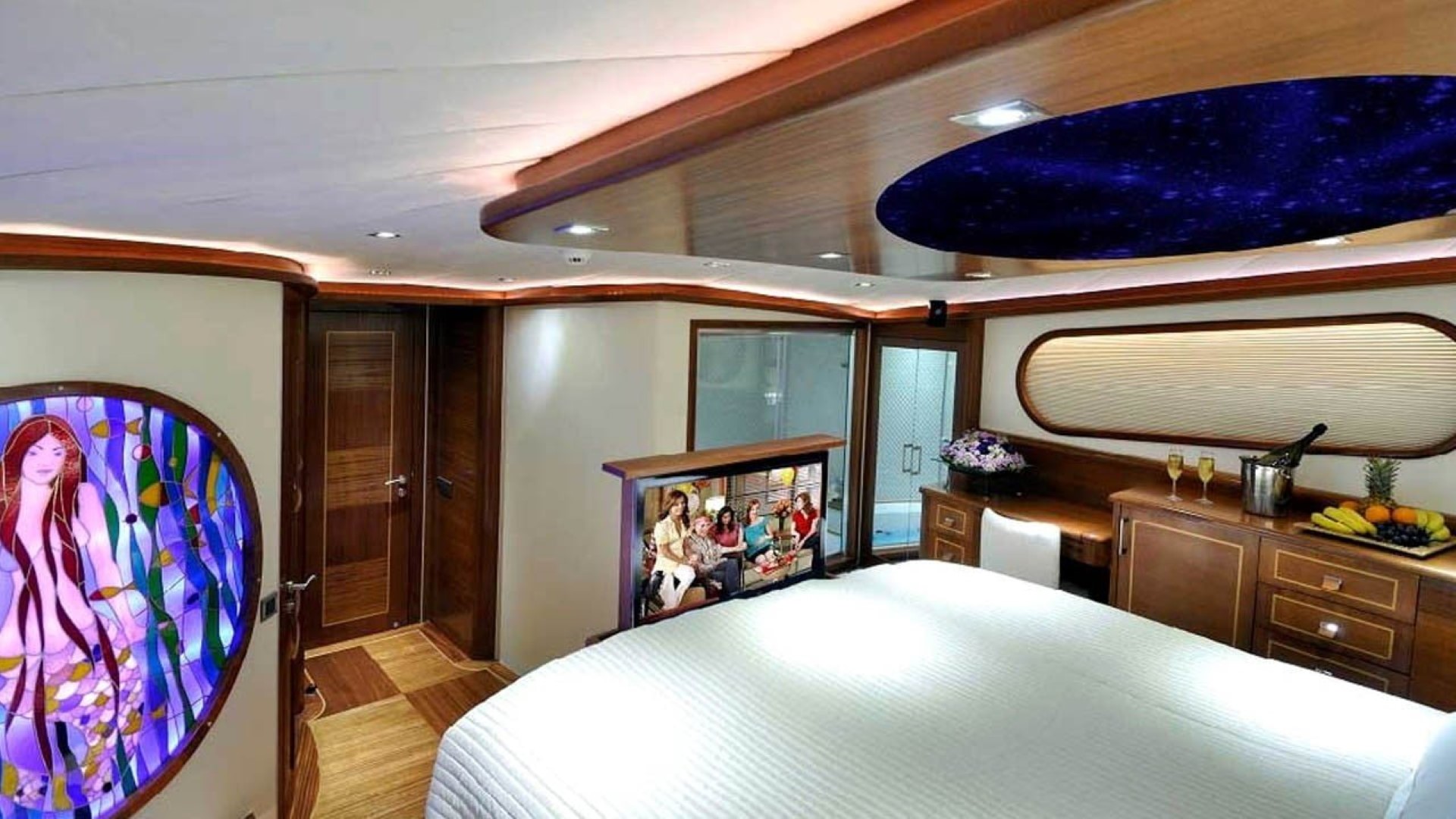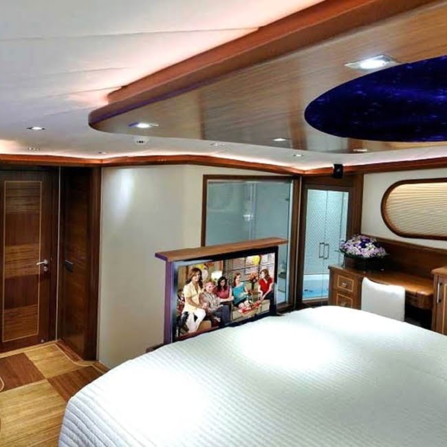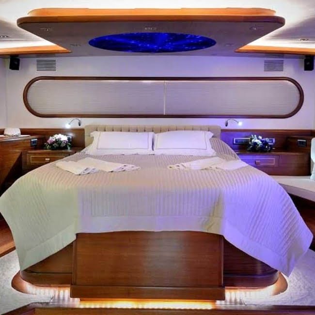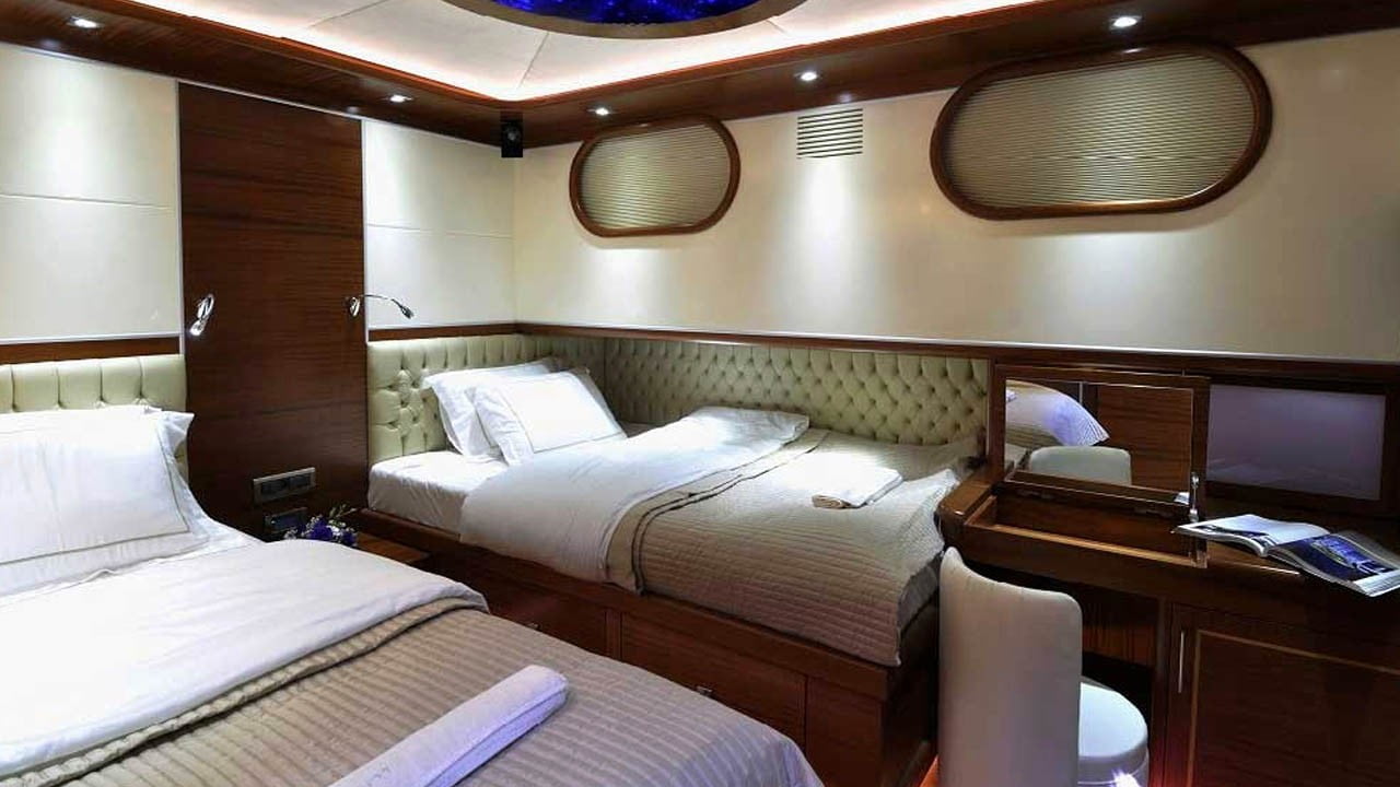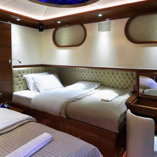 With a total length of 36 meters and a width of 8.35 meters, this super luxury yacht can accommodate 12 guests in a total of 6 2 Master Cabins, 2 Double, 2 Triple Cabins.