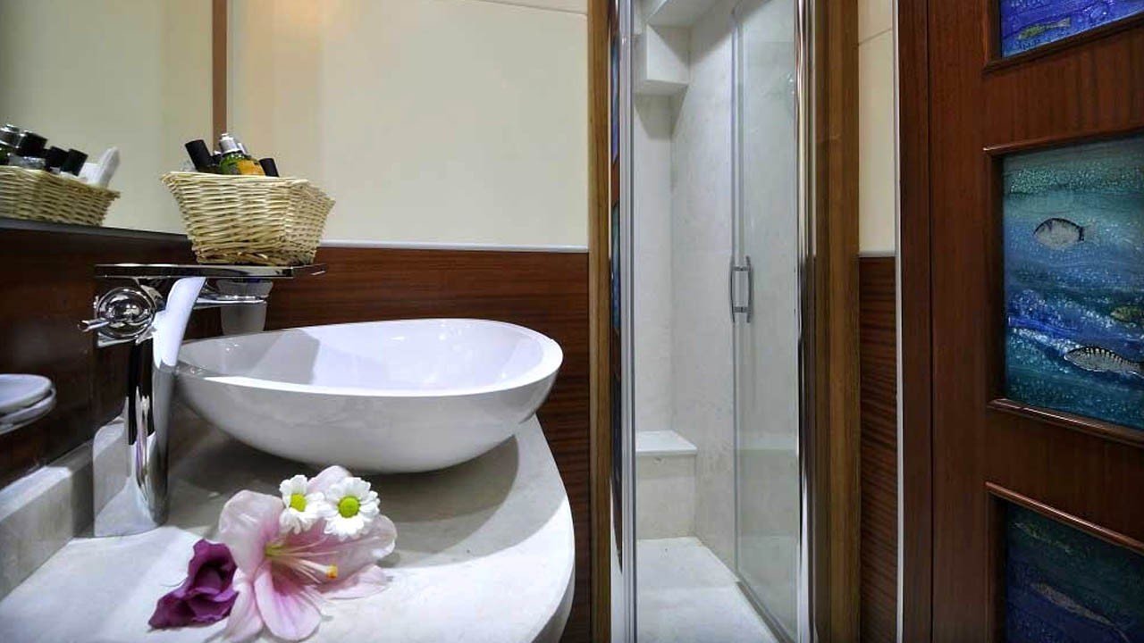 Each cabin in Dolce Mare has a private shower, toilet, and air conditioning.