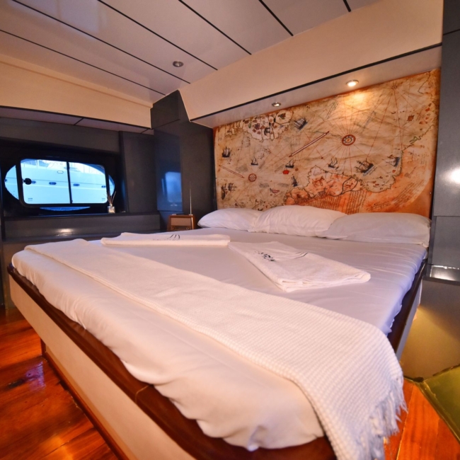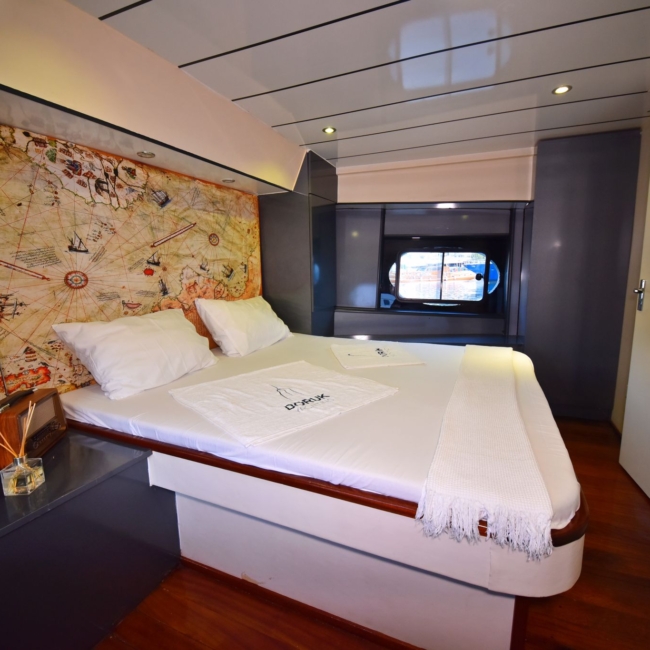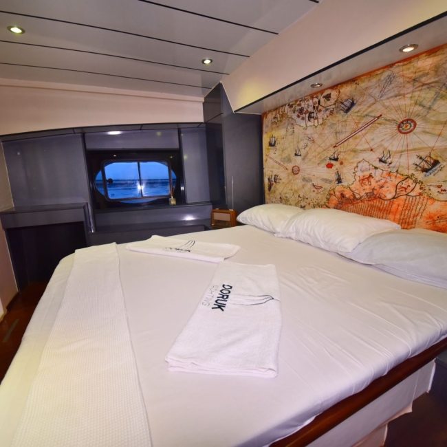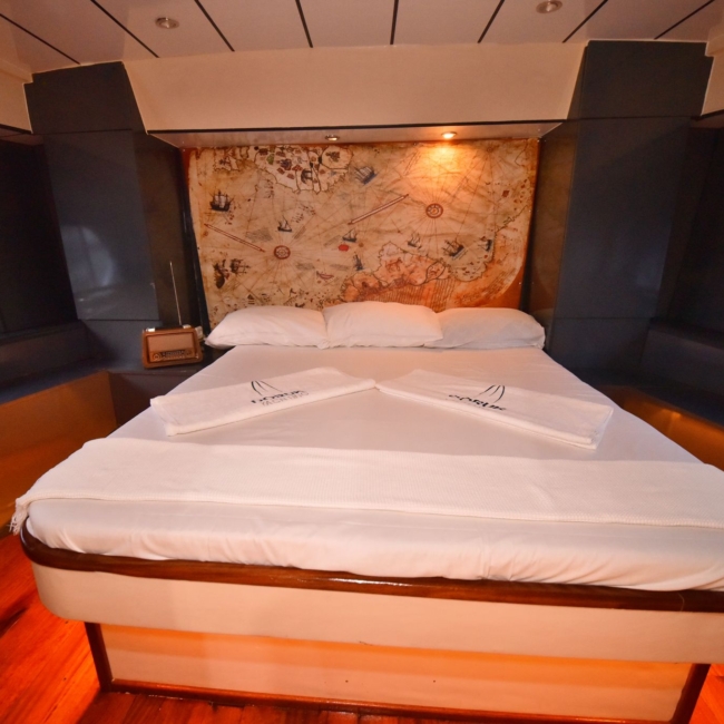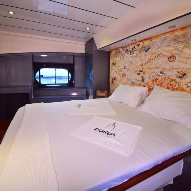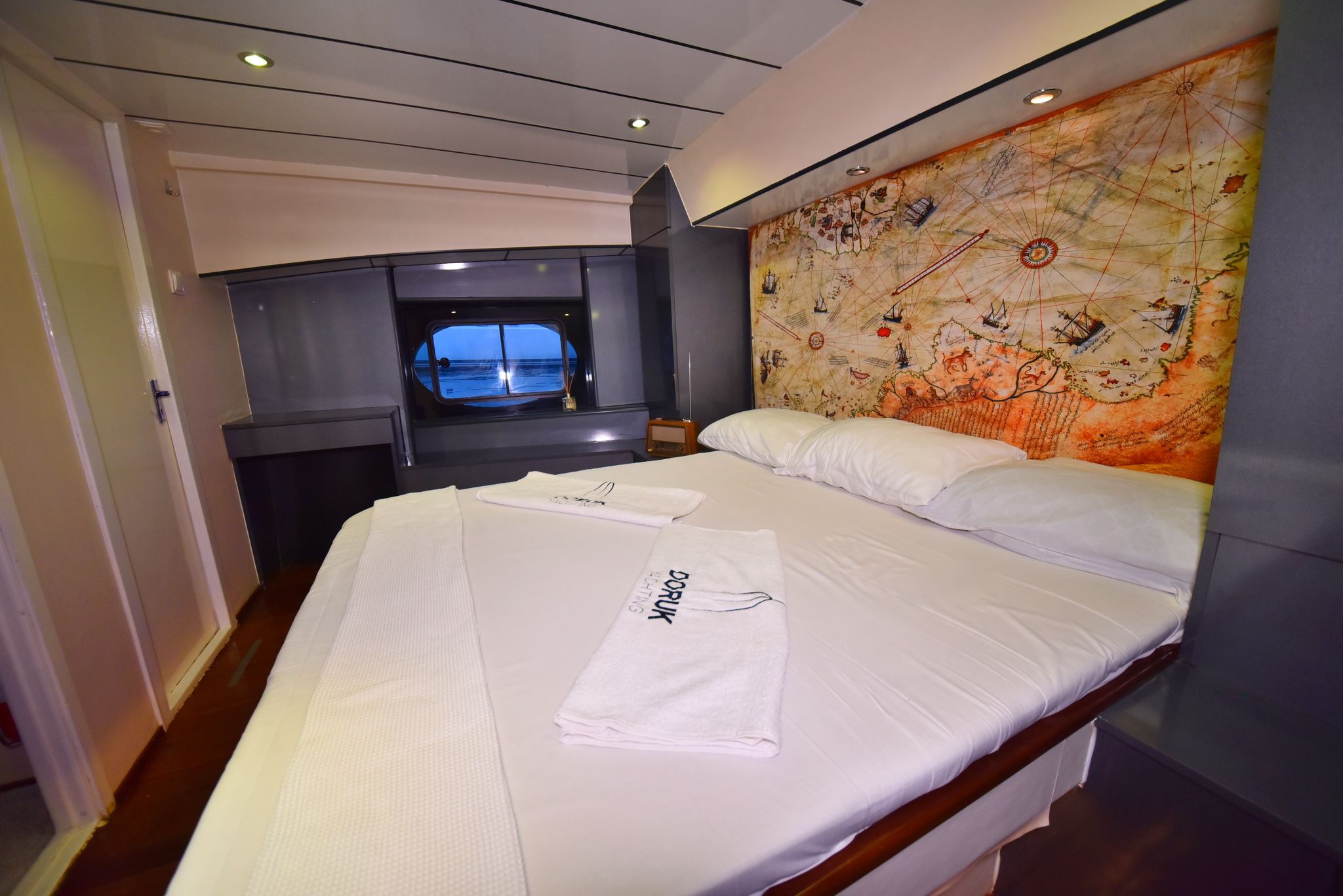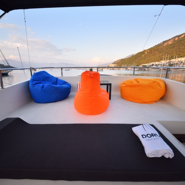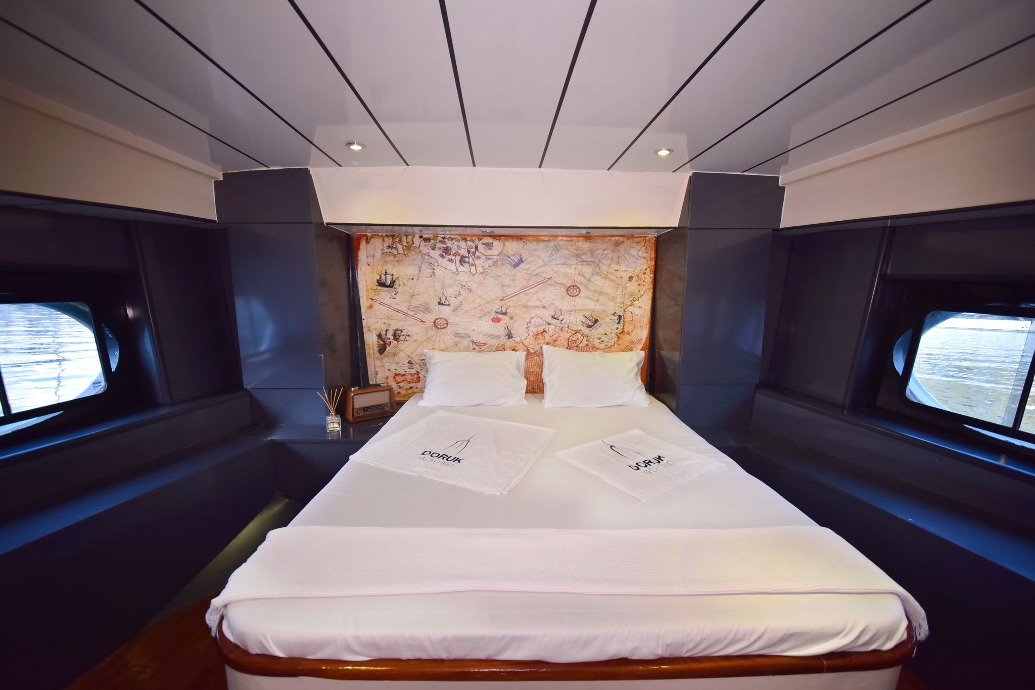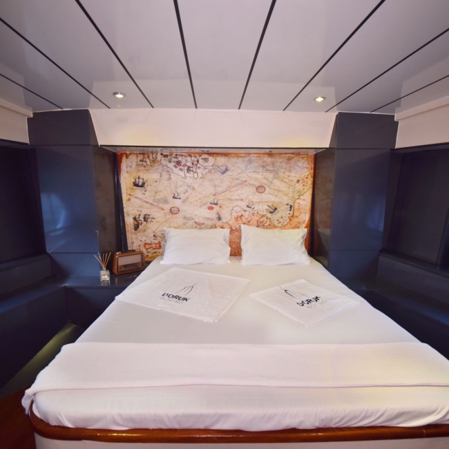 Doruk 71 is a 13-meter-long and 4.60-meter-wide air-conditioned gulet, fully refitted in 2023. Departing from Fethiye Harbour, this two-cabin yacht (1 Master, 1 Double) accommodates up to 6 guests, with each cabin featuring a private bathroom and shower.