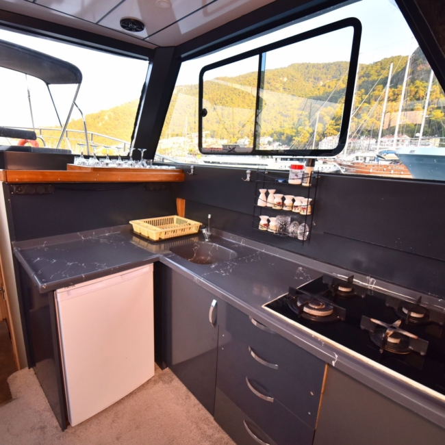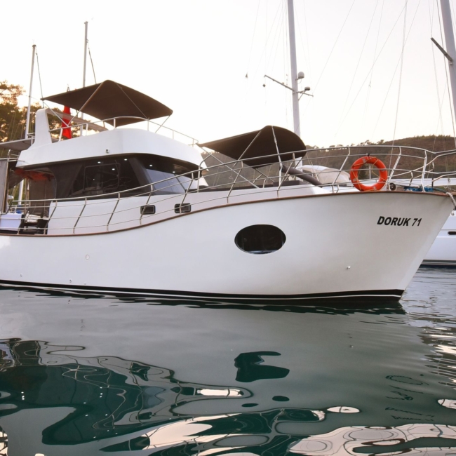 Powered by a 285 HP main engine and supported by a sufficient generator system, Doruk 71 offers a comfortable cruising experience. The yacht is also equipped with a 1,500-liter freshwater tank, making it ideal for extended journeys.