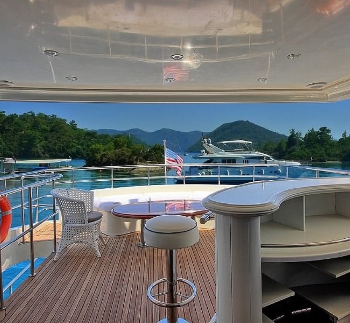 Motor Yacht Dream, which was launched in 2006, was refurbished in 2015 and is equipped for today’s comfort. With its 3-story view, spacious living areas, and 5 cabins accommodating up to 10 guests our 32-meter-long yacht is in the ultra-luxury category. Our experienced crew offers service with guest-oriented satisfaction. Dream motor yacht with a jacuzzi on the deck will be indispensable for your blue voyage vacation.