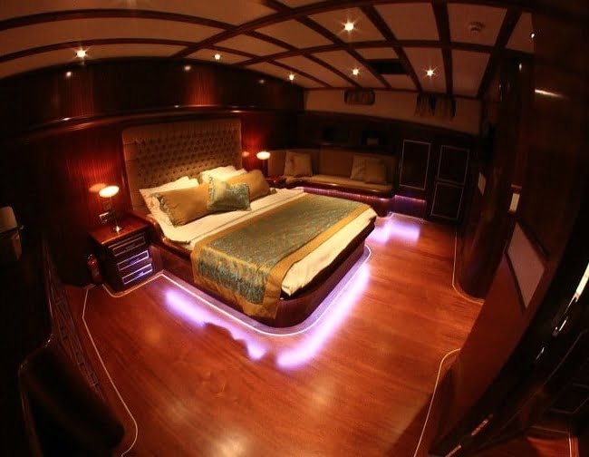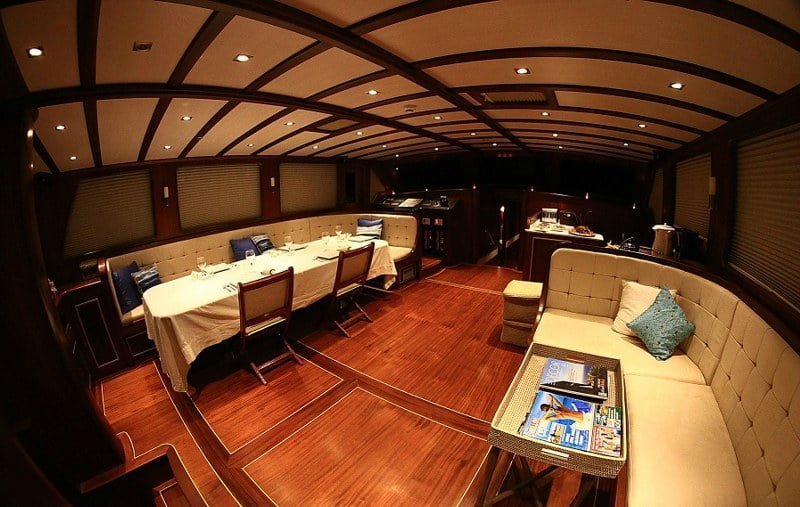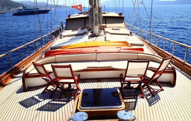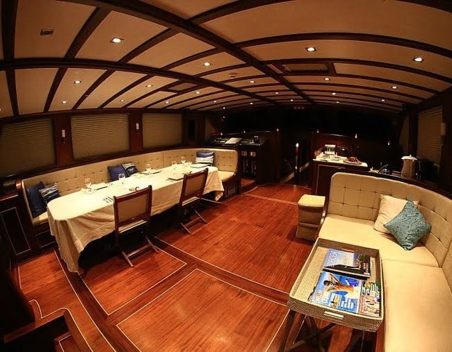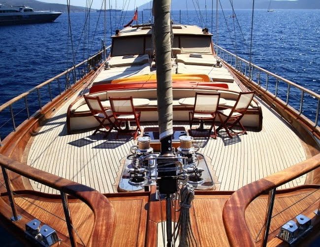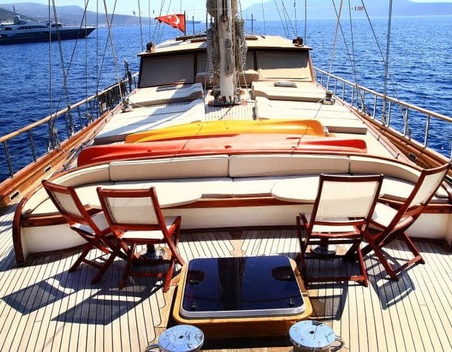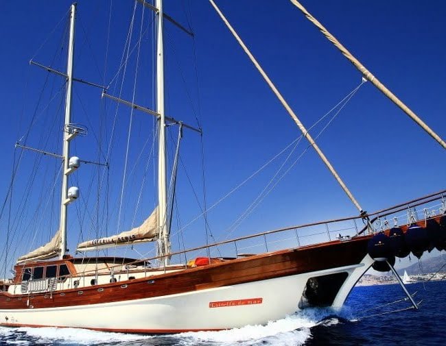 You can see detailed information about the 34-meter-long Estrella Del Mar boat below. ACCOMMODATION a total of 5 cabins, including 1 master, 2 doubles, 2 triples. Passenger capacity is 12 people in Turkish and foreign territorial waters. LCD TV / DVD player, music system, air conditioning, bathroom with shower cabin, home-type toilet, hair dryer, bath and hand towels in each cabin. In the hall; Dining table, sitting group, LCD TV, music system. Air conditioner usage time is unlimited. GENERAL HARDWARE Full safety equipment, navigation equipment, life jackets, fire extinguishers, sailing equipment, watermaker, satellite antenna, and internet in Turkish territorial waters.