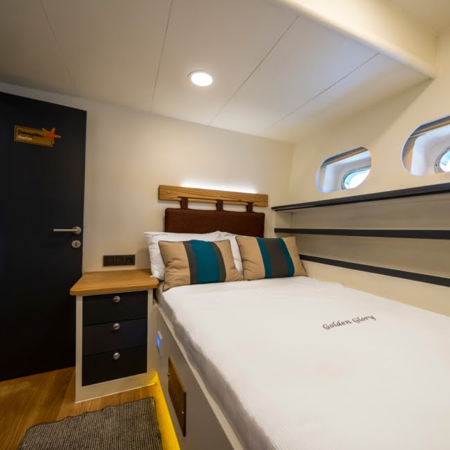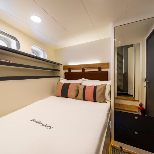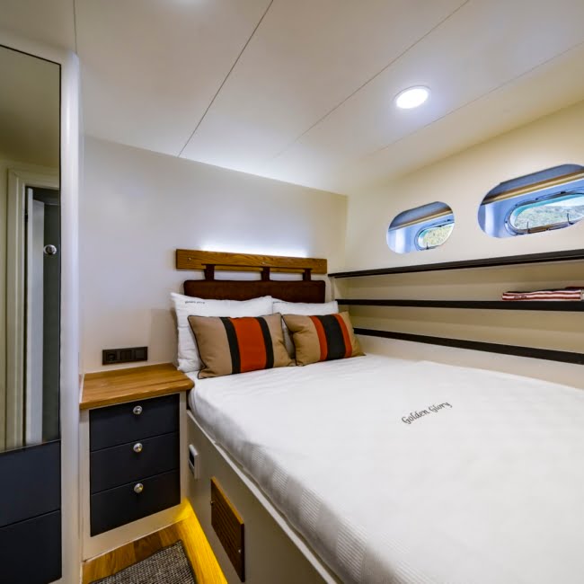 Our Golden Glory yacht can accommodate 12 guests in 6 cabins and provides every comfort for your convenience.