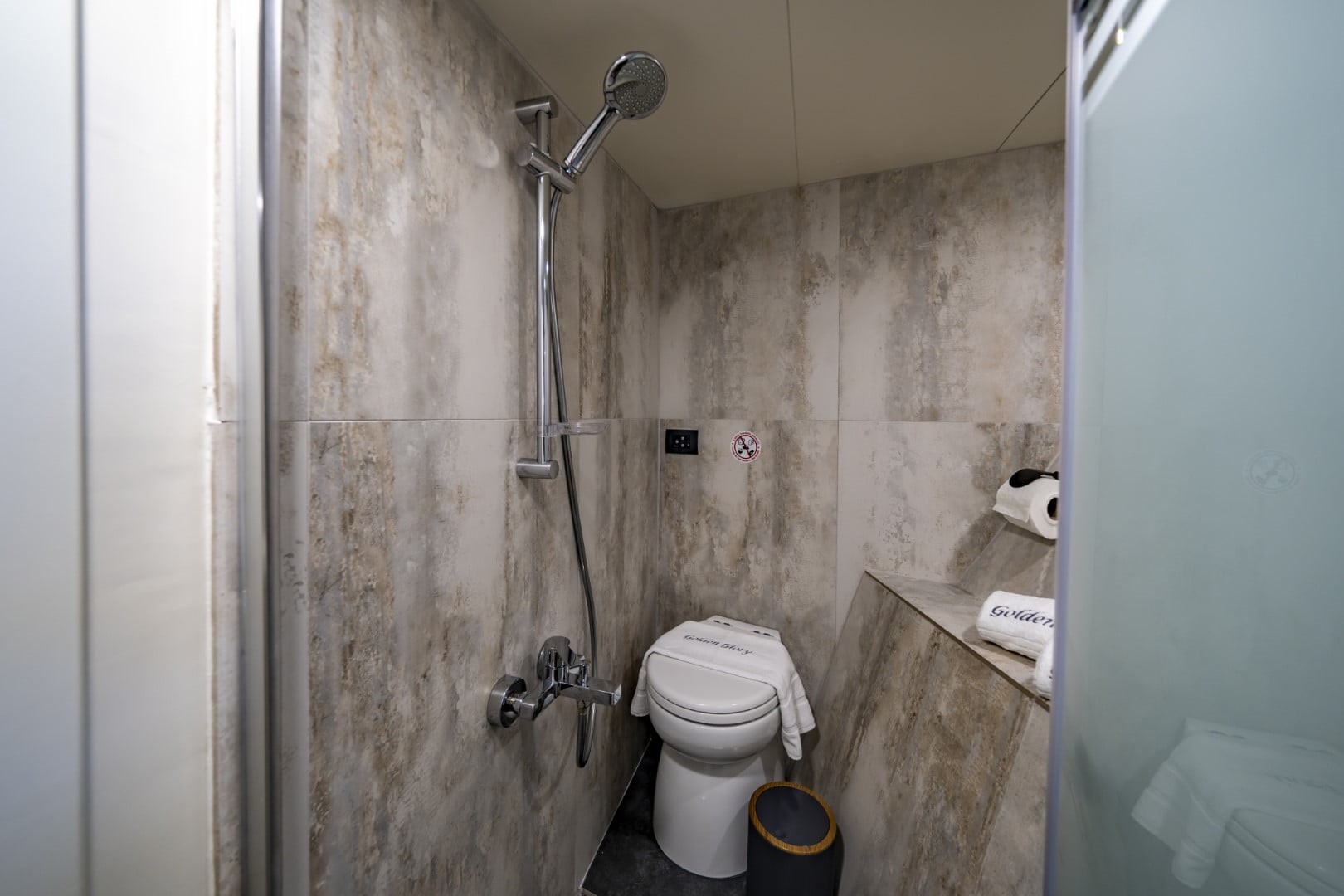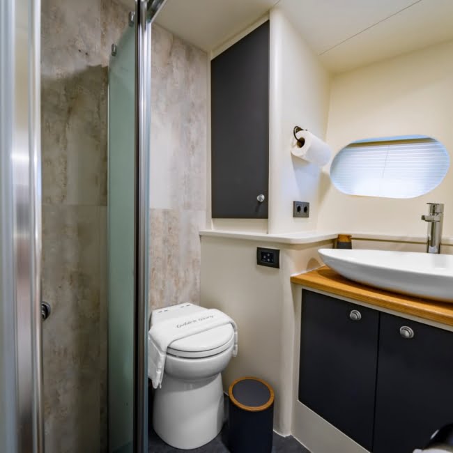 Each cabin on the Golden Glory yacht has air conditioning, a separate WC and shower unit.