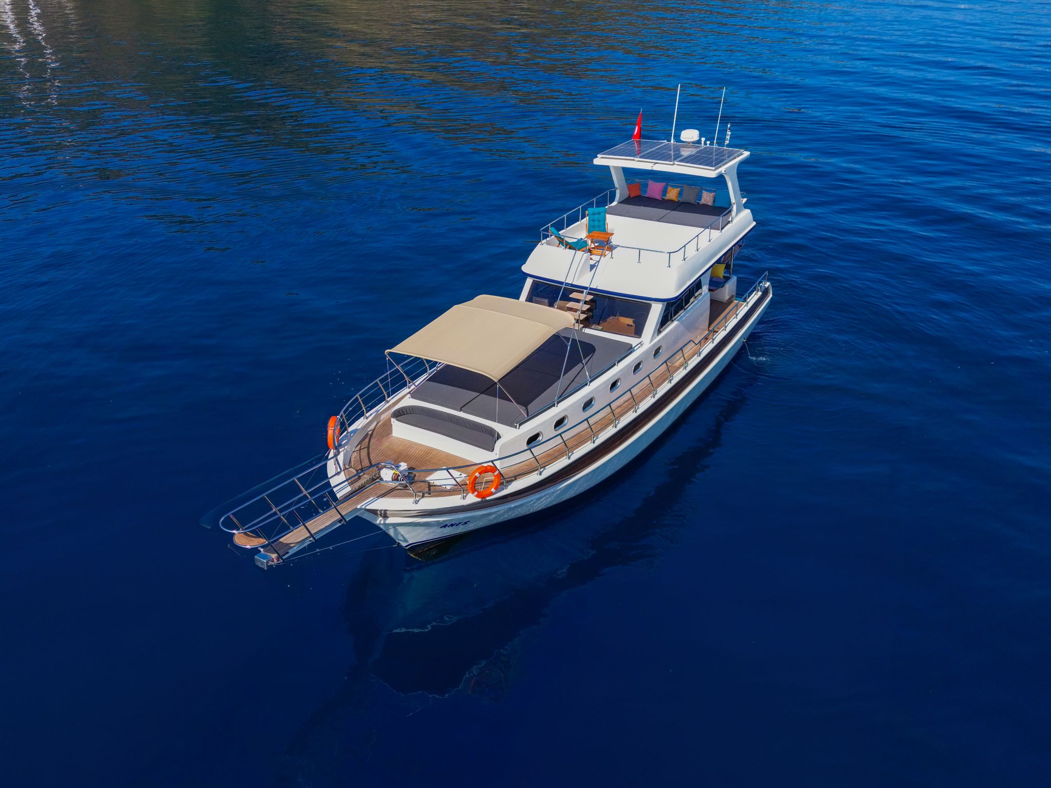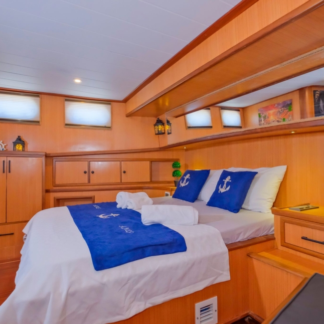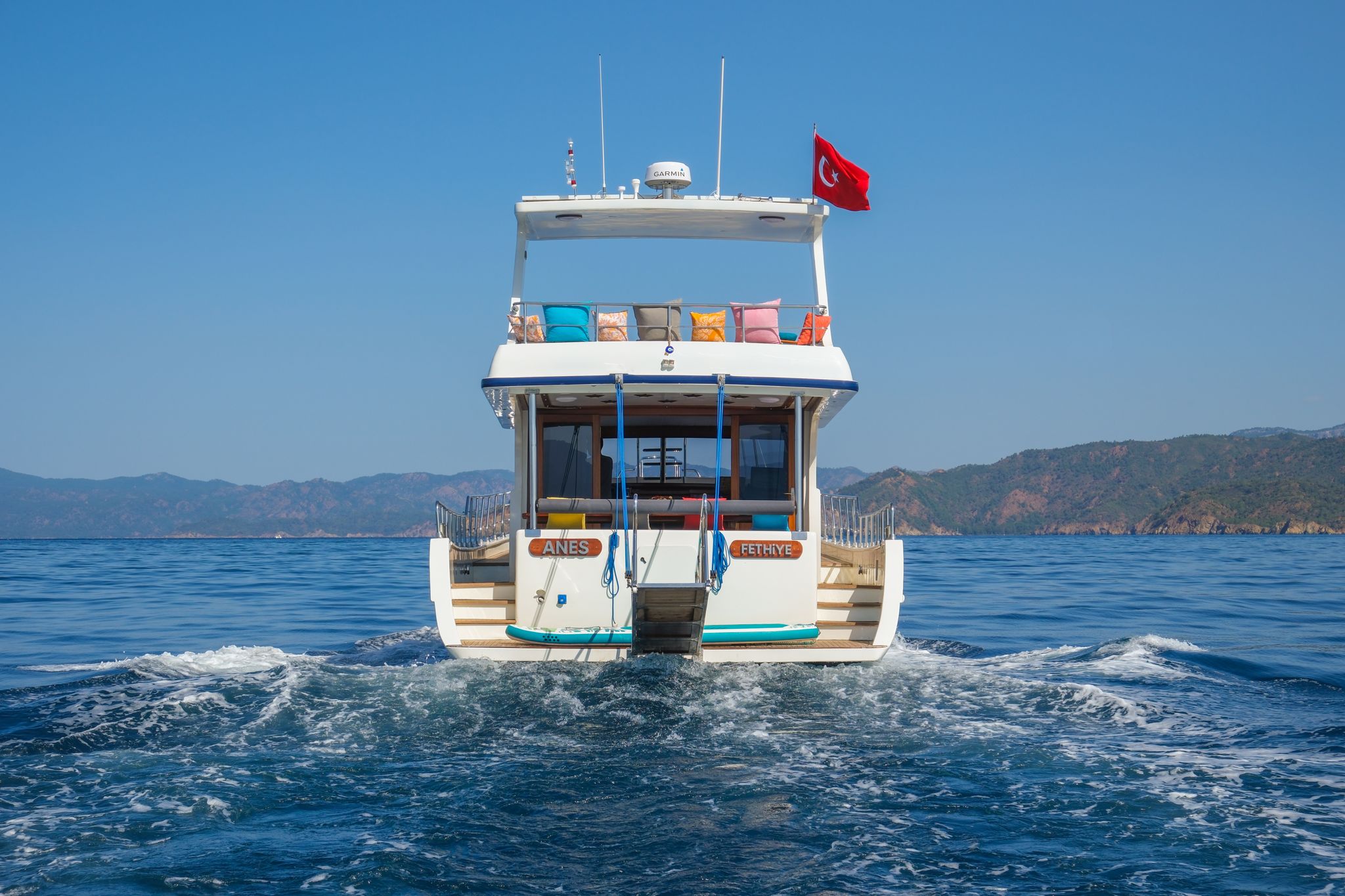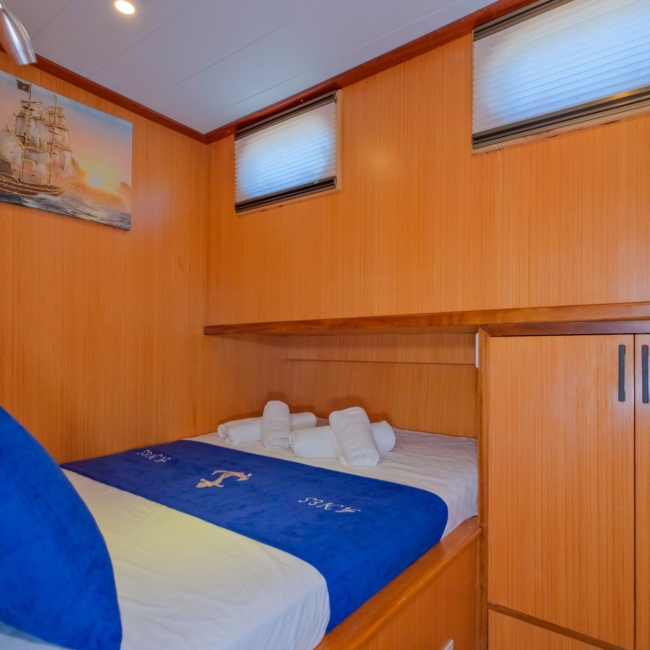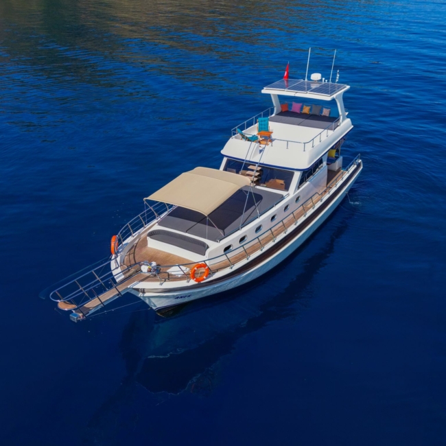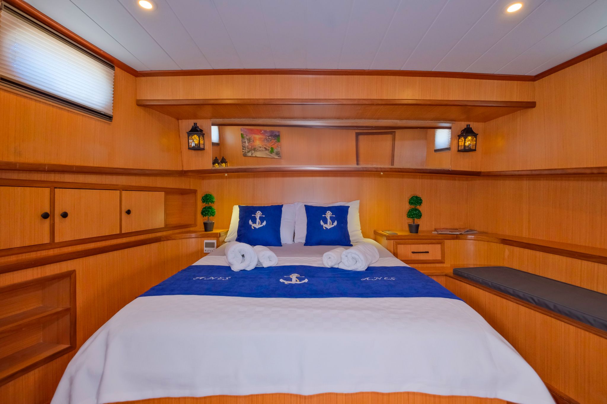 Anes Gulet is a 16-meter traditional wooden yacht offering accommodation for up to 6 guests in 3 cabins, including 1 master and 2 double cabins. Each cabin is equipped with a private bathroom and air conditioning. The yacht is operated by a crew of two: a captain and a cook. Ideal for short blue cruises around Fethiye and Göcek, the gulet features essential water toys, a generator, and kitchen equipment. It is a suitable choice for small groups seeking a peaceful holiday in quiet bays.