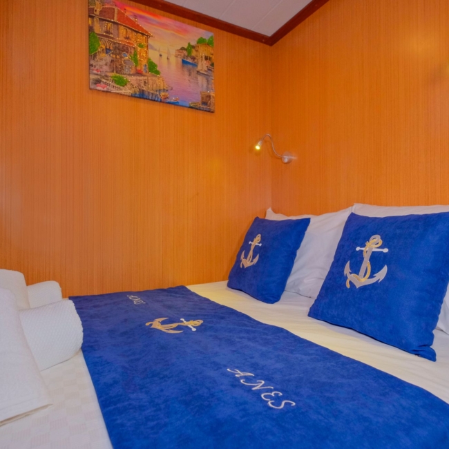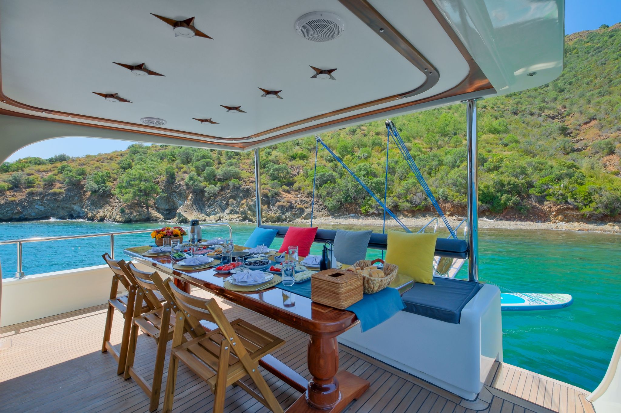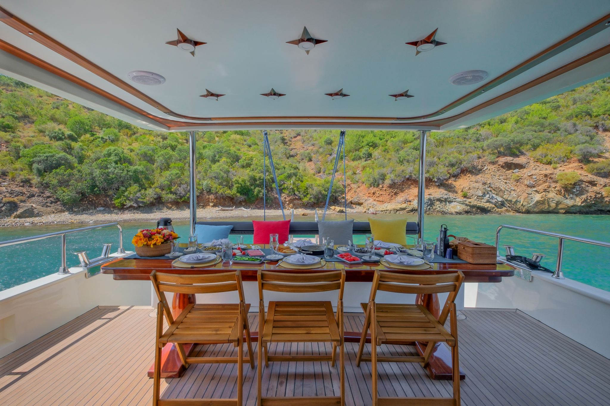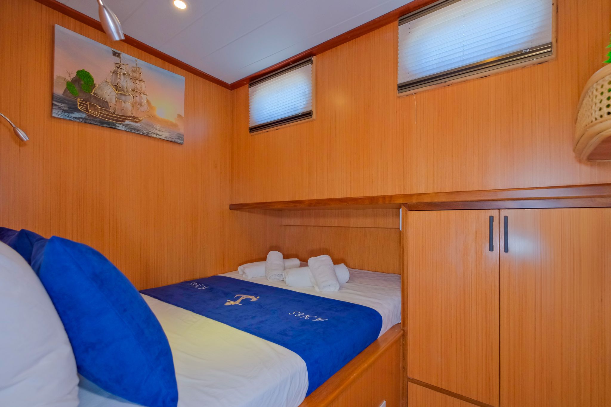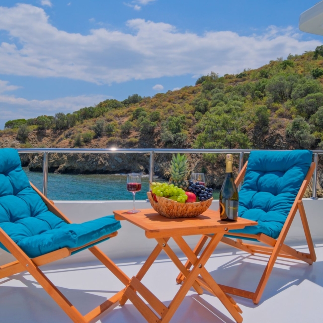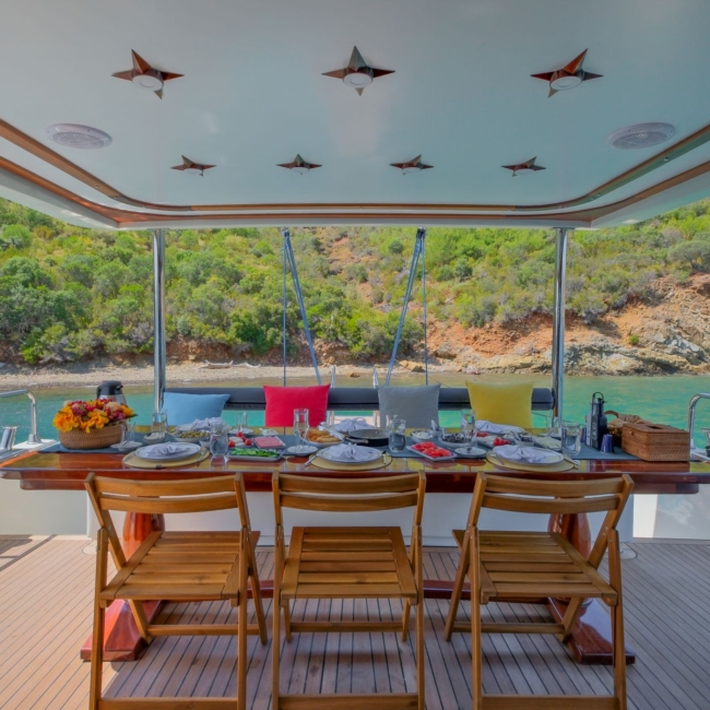 Anes Gulet is a 16-meter traditional wooden yacht offering accommodation for up to 6 guests in 3 cabins, including 1 master and 2 double cabins. Each cabin is equipped with a private bathroom and air conditioning. The yacht is operated by a crew of two: a captain and a cook. Ideal for short blue cruises around Fethiye and Göcek, the gulet features essential water toys, a generator, and kitchen equipment. It is a suitable choice for small groups seeking a peaceful holiday in quiet bays.