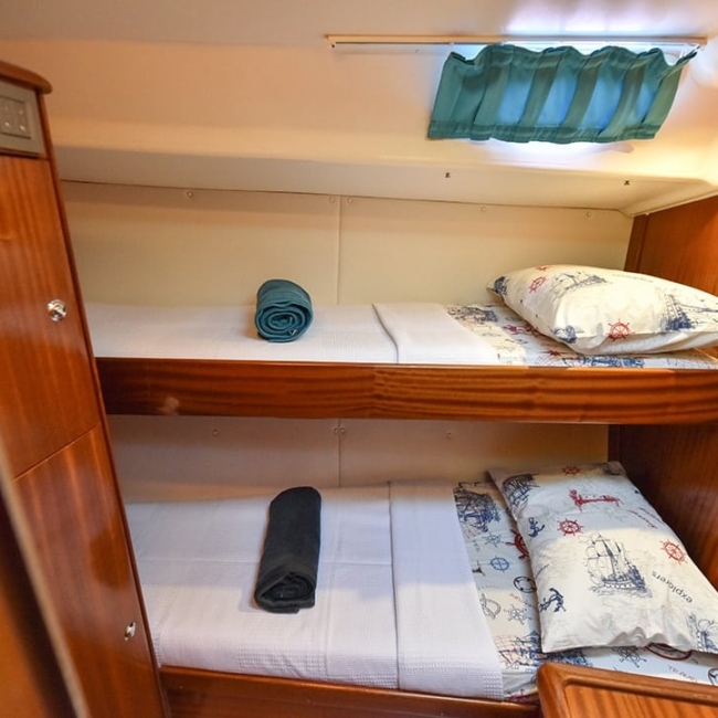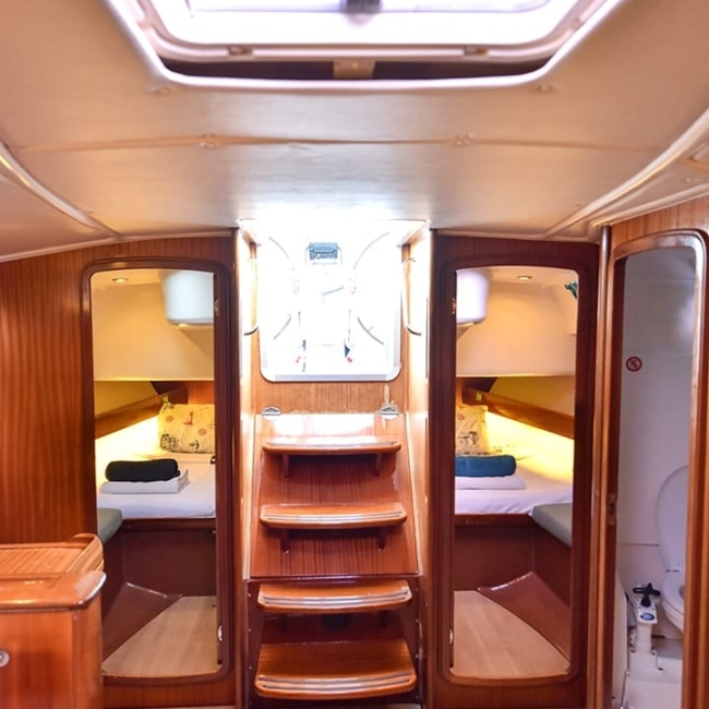 can accommodate 8 people. There are 2 WCs in the sailboat. We hope you have a pleasant holiday as it has a fully equipped and stylish