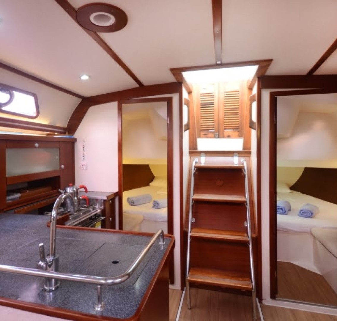 Hanse 40 , the most popular sailing boat brand of recent years, is one of the private boats within our body. With this sailboat, which can accommodate up to 6 people in 3 cabins, you can tour Marmaris, Kekova or Greek islands routes from Fethiye.