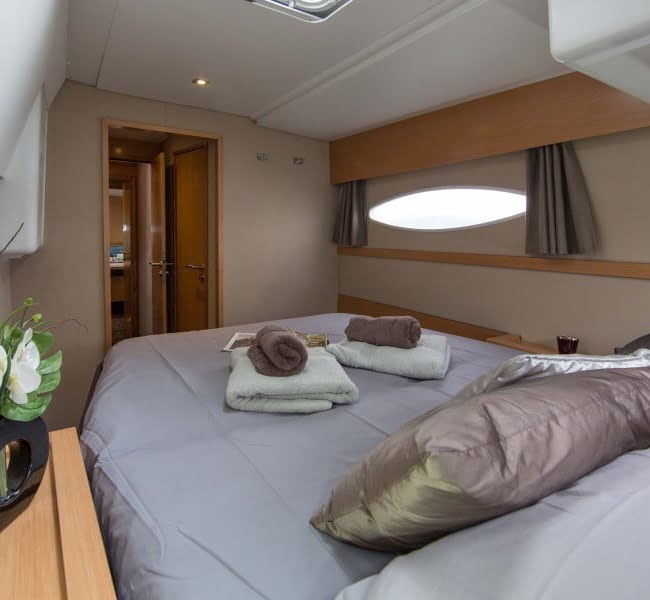 Helia 44 is a private boat available for rental without a captain providing you have the correct qualifications and experience. Inside you will find 4 en-suite cabins with air conditioning, a well equipped kitchen and comfy lounge.