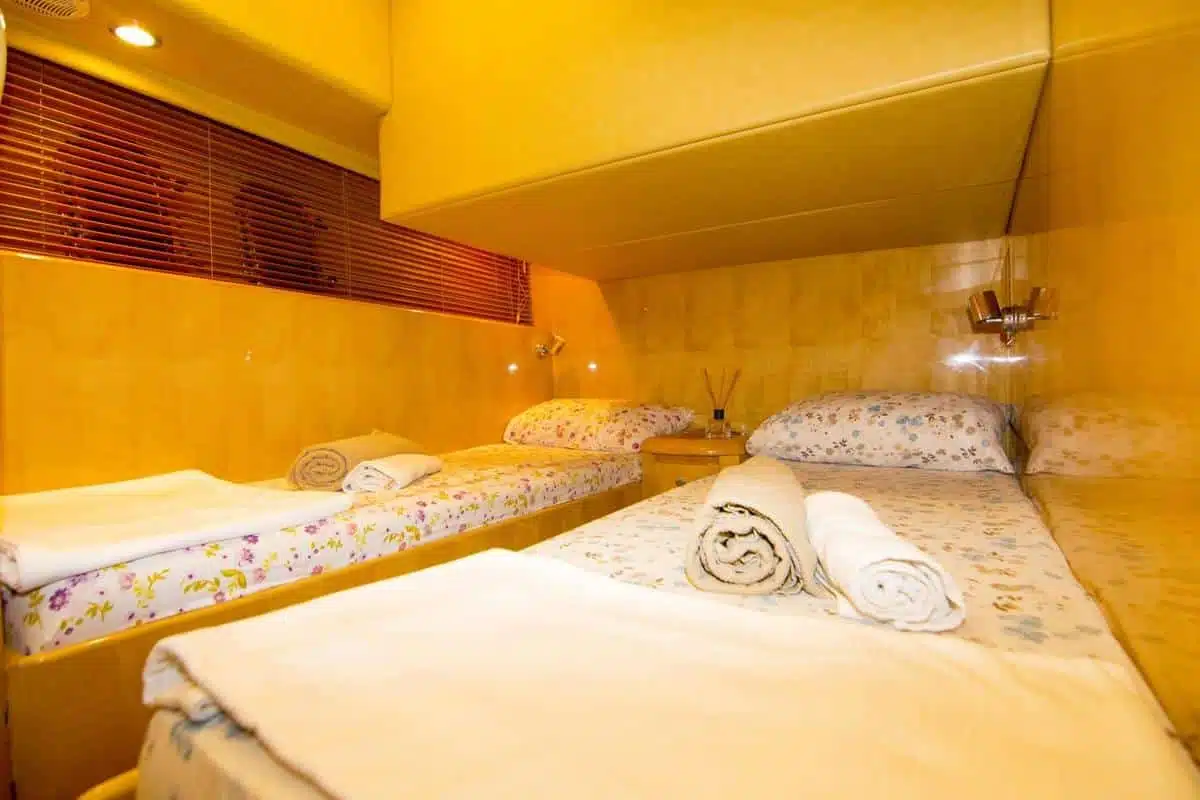 Motoryacht Imera was manufactured in 2008 and was completely renovated in 2018. Adapting to the latest technologies, the boat has a length of 16 meters and a width of 4 meters. Its cruising speed is 16 knots. It has the opportunity to host 6 guests in total with 1 Master, 1 Double and 1 Twin cabins. In addition, 3 modern cabins and air-conditioned rooms are among the advantages of the boat. There is a private bathroom and toilet for guests. Our boat is at your service with its experienced staff of 3 people. With the music system in our living room, you also have the opportunity to listen to music.