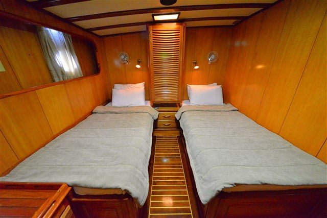This stunning 28m gulet was first introduced to the sea in 2007!! K 5’s outstanding features and quality locate her in the luxury category of gulets. Of course with her spacious layout and carefully constructed body, she is a comfortable choice for larger groups and families! There are 6 cabins in total for up to 12 guests, each air-conditioned with their own en-suite – so don’t worry about privacy on board this busy voyager…Why else will you love your cabin so much? each cabin has its own music system!! Feeling active? your new home on the sea is packed with fun equipment such as snorkeling, fishing and a range of sea toys. Her size will not intimidate you, as our professional crew of 4 will be on hand for all your needs, day and night! Luxurious and charming this charter is economically and environmentally friendly.