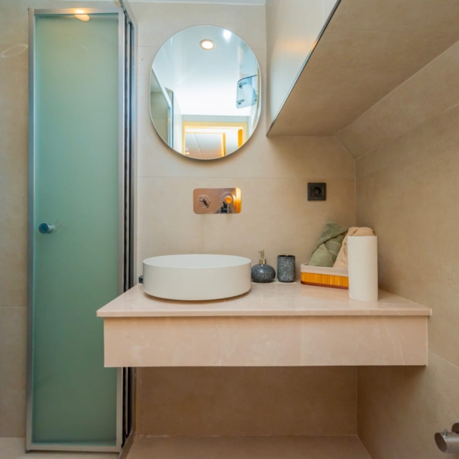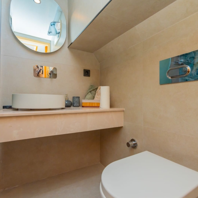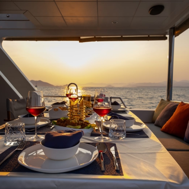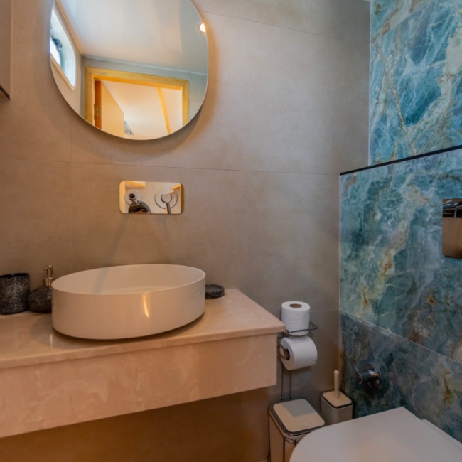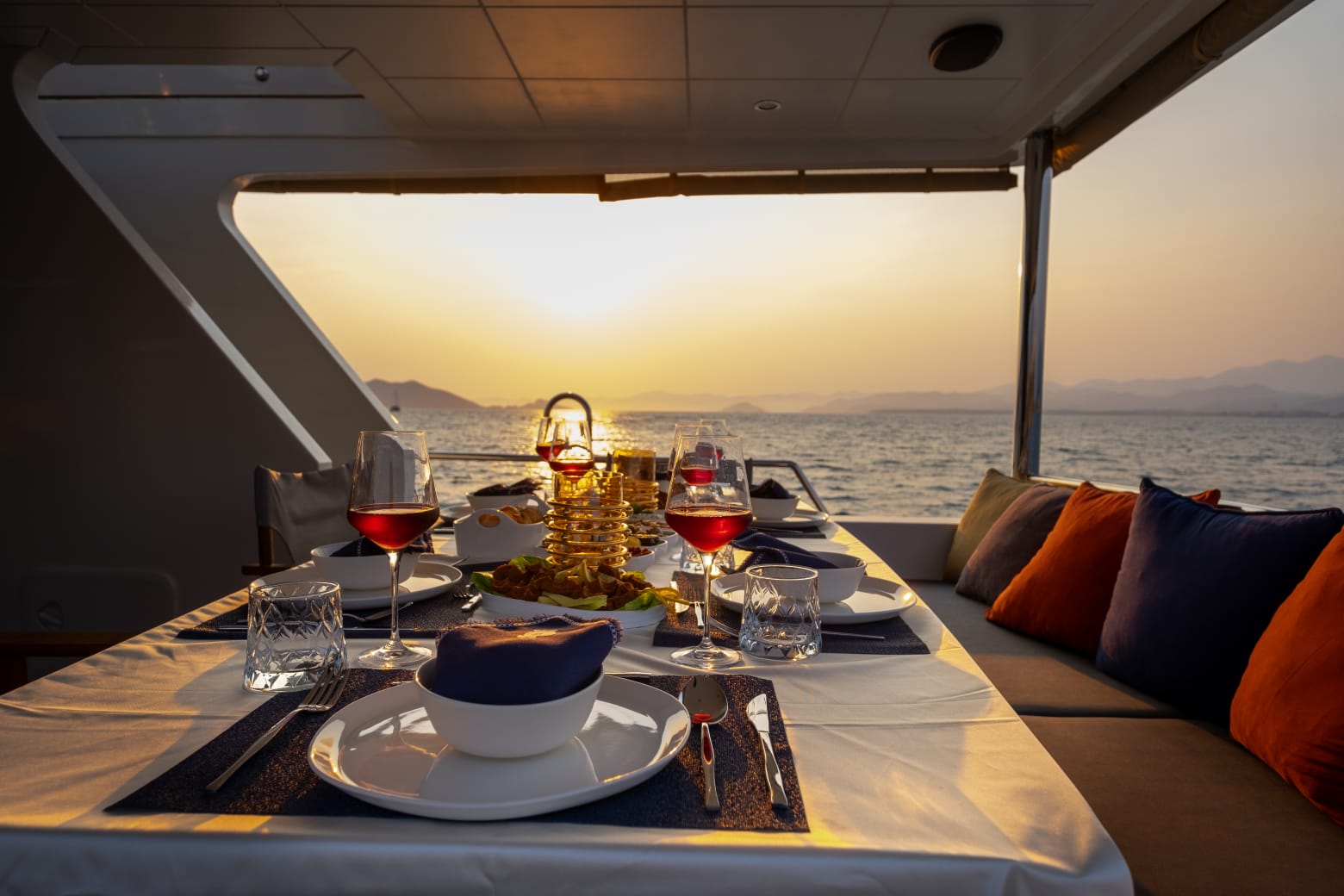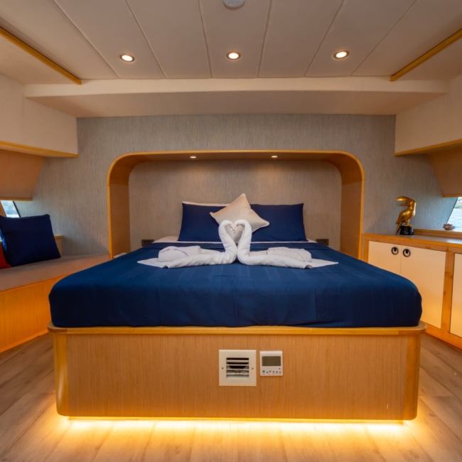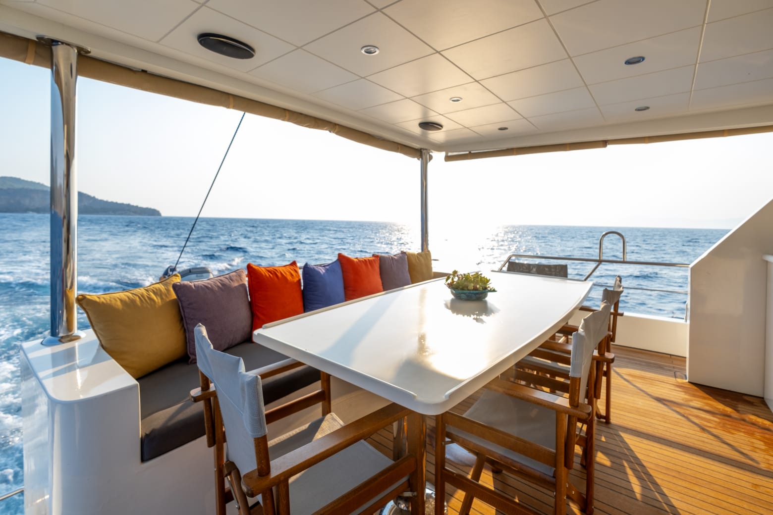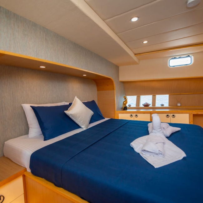 Our 3-cabin luxury trawler, which was completed in 2024, departs from Göcek port and serves you, blue cruise lovers, in Fethiye and Göcek bays. Kaan beyTrawler / Motoryacht has a length of 18 meters and a width of 5.3 meters.