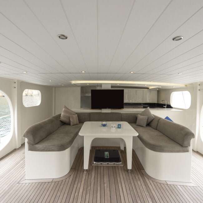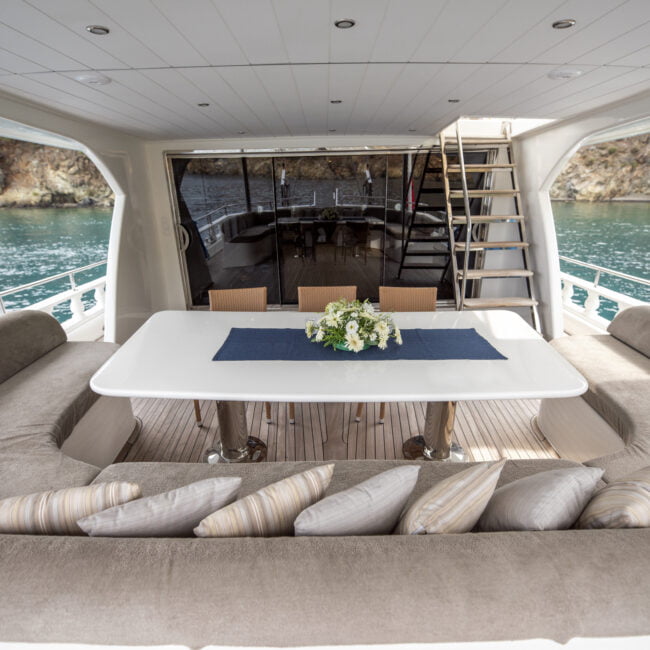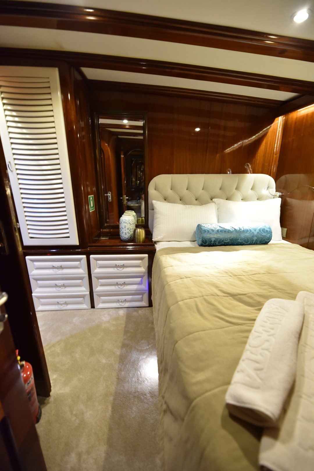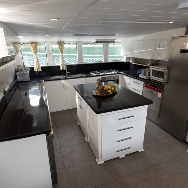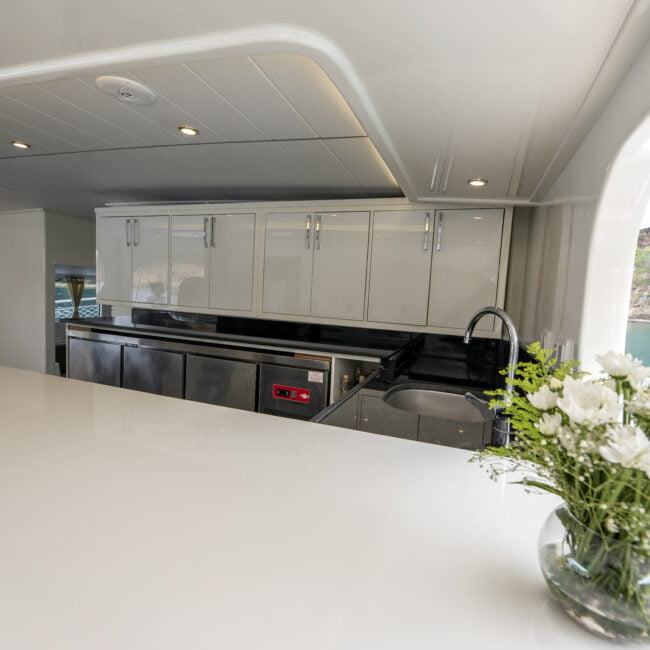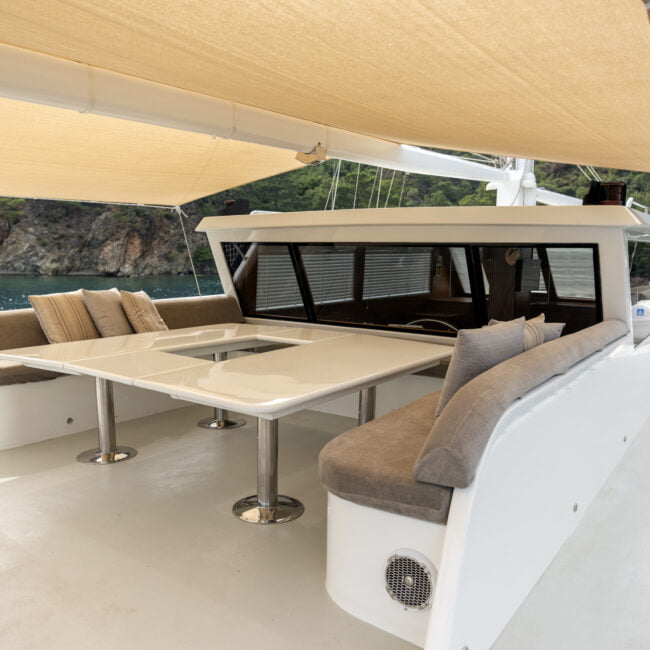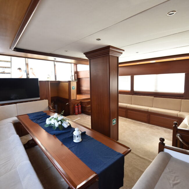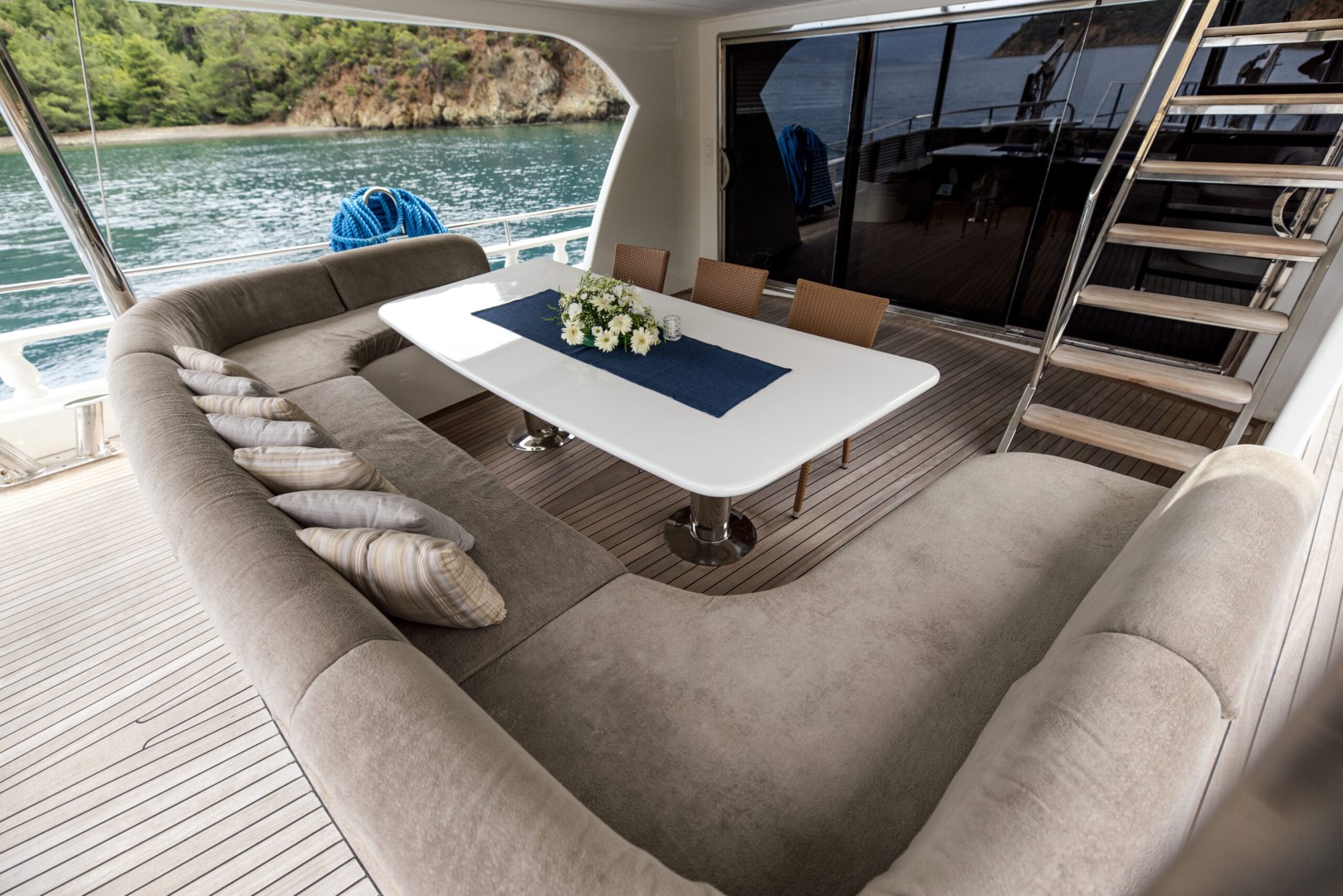 Gulet Kayhan 11 , which was built in 2002 with a length of 34 meters and a width of 7.50 meters, was completely renovated in 2009 and took its current form. It can accommodate a total of 20 guests, 6 Double Cabins and 4 Twin Cabins. Our cabins are large, spacious and modern, with Air Conditioning, Shower and WC. At the same time, a bar, a comfortable sitting area, classical furniture, a fully equipped kitchen are available to guests here. In order for the guests to have a better time, the music system, TV and satellite are located here, while the air conditioner is always open for their use, which will make them feel a little better in summer. In addition, there are options such as ice machine, coffee machine, playing cards, backgammon and okey among the items you can find on the boat. If you want to make the best use of the blue waters of the sea, it should be noted that the boat has many advantages. Equipment such as fishing equipment and diving equipment will always be available for your use here. On the other hand, sun awnings, sun beds, sea ladders, and shower facilities on the deck are among the other advantages of the boat. Yacht crew has their own living space. Our professional team, which organizes activities such as daily in-boat cleaning, service, food and beverage, and maintenance, retreats to their cabins so that they can be with you in every need for your privacy and comfort.