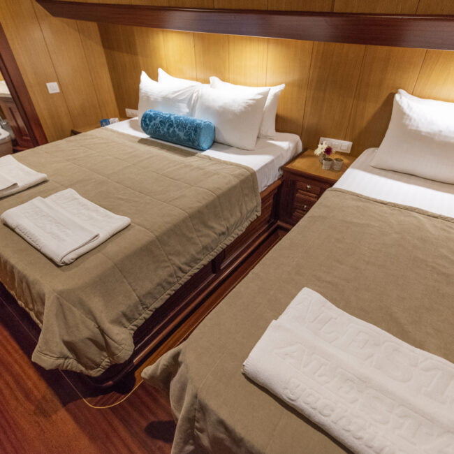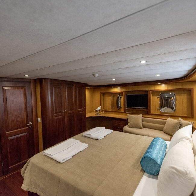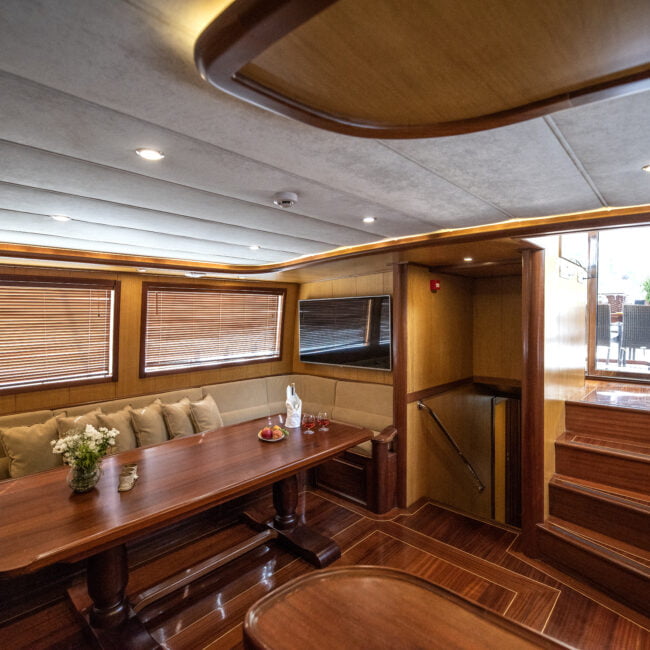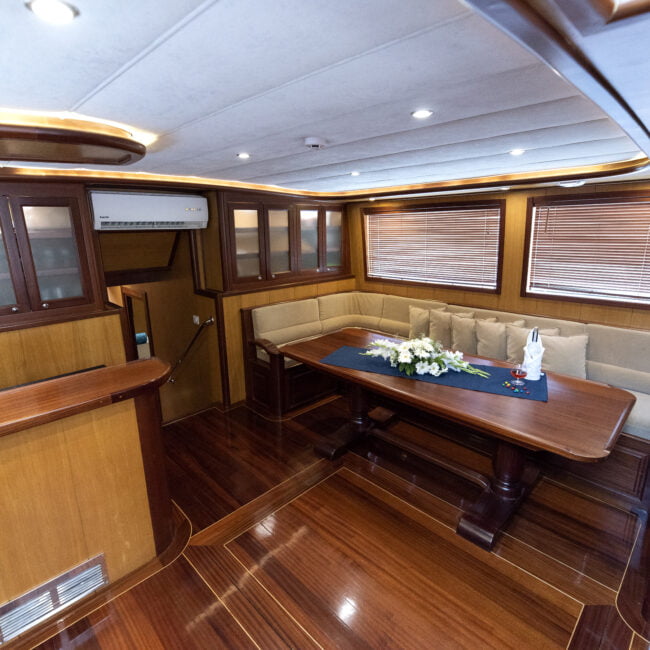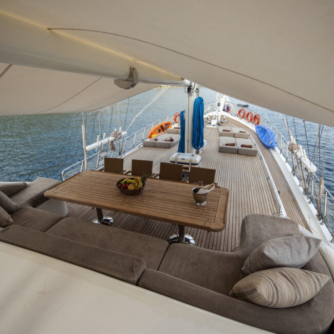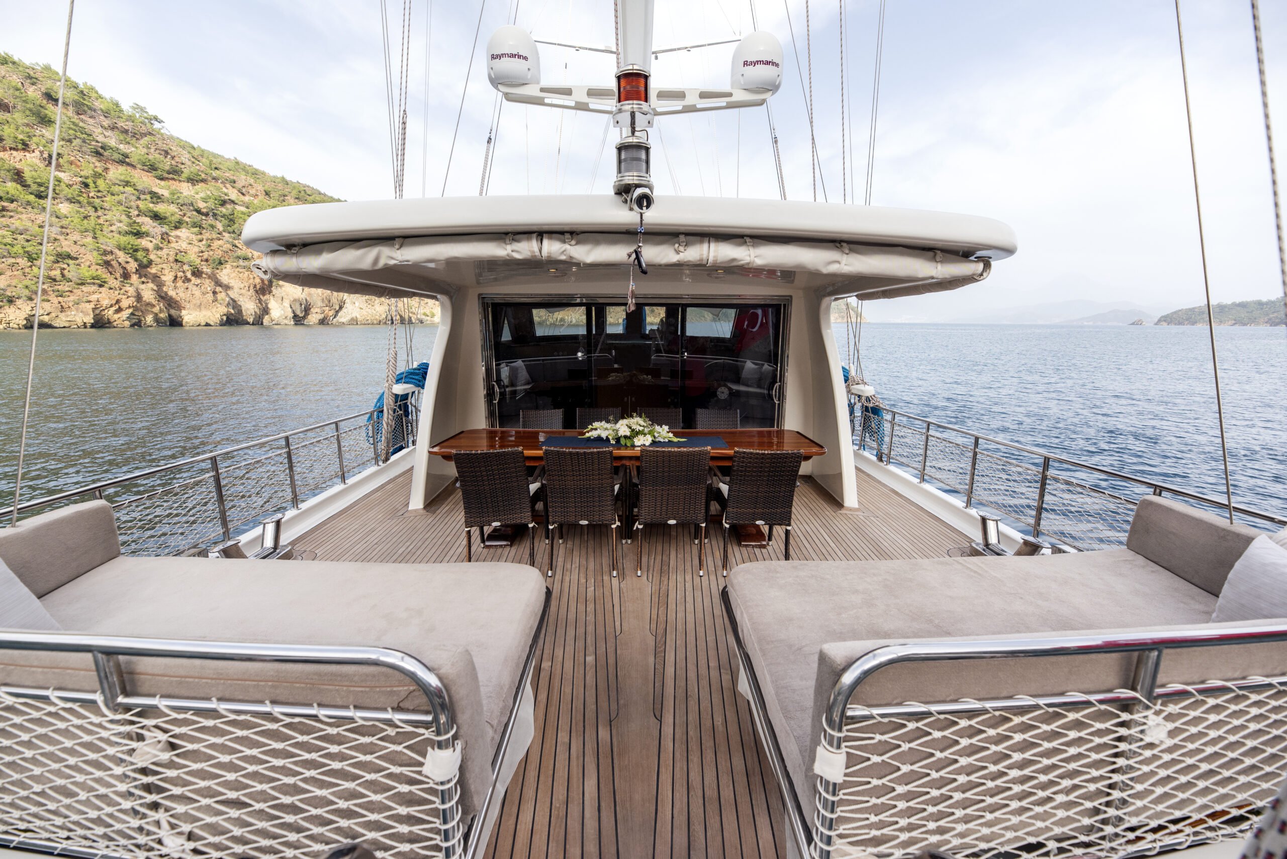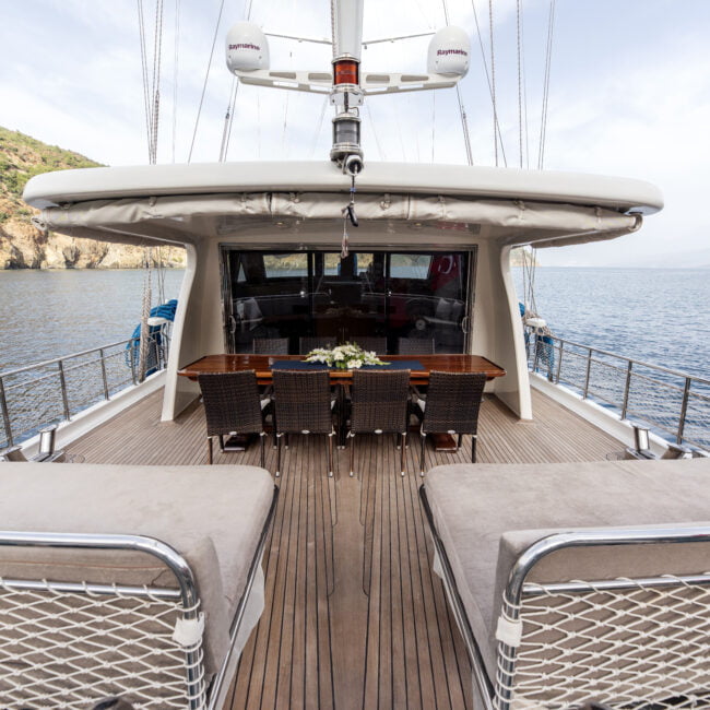 Gulet Kayhan 3 is a high quality yacht with a length of 27 meters and was built in 2014. Modern and spacious cabins, lounge and deck have been specially designed for our Gulet Kayhan 3 guests. Our cabins offer accommodation for up to 10 guests, including 1 master, 2 triple and 2 twin cabins. Each cabin has a private shower and toilet, and all cabins are air conditioned. Gulet Kayhan 3 has a fully equipped separate kitchen, indoor and outdoor dining area and an air-conditioned lounge. There is a TV, DVD and music system in the lounge and all cabins. There are also sufficient sunbathing cushions in a large area on the deck. Gulet Kayhan 3 Crew Gulet Kayhan 3 offers luxury service with its team of 3 professional, experienced people. This team consists of the captain, chief, deck and service personnel. There are separate cabins to accommodate the staff who will accompany you throughout the tour. The crew meticulously meets all your needs such as organizing daily activities on the boat, cleaning, service, food and beverage, and security. They have received special training for the safety and comfort of their guests and accordingly, they will be with you whenever you need them and will retreat to their own areas whenever you want privacy.