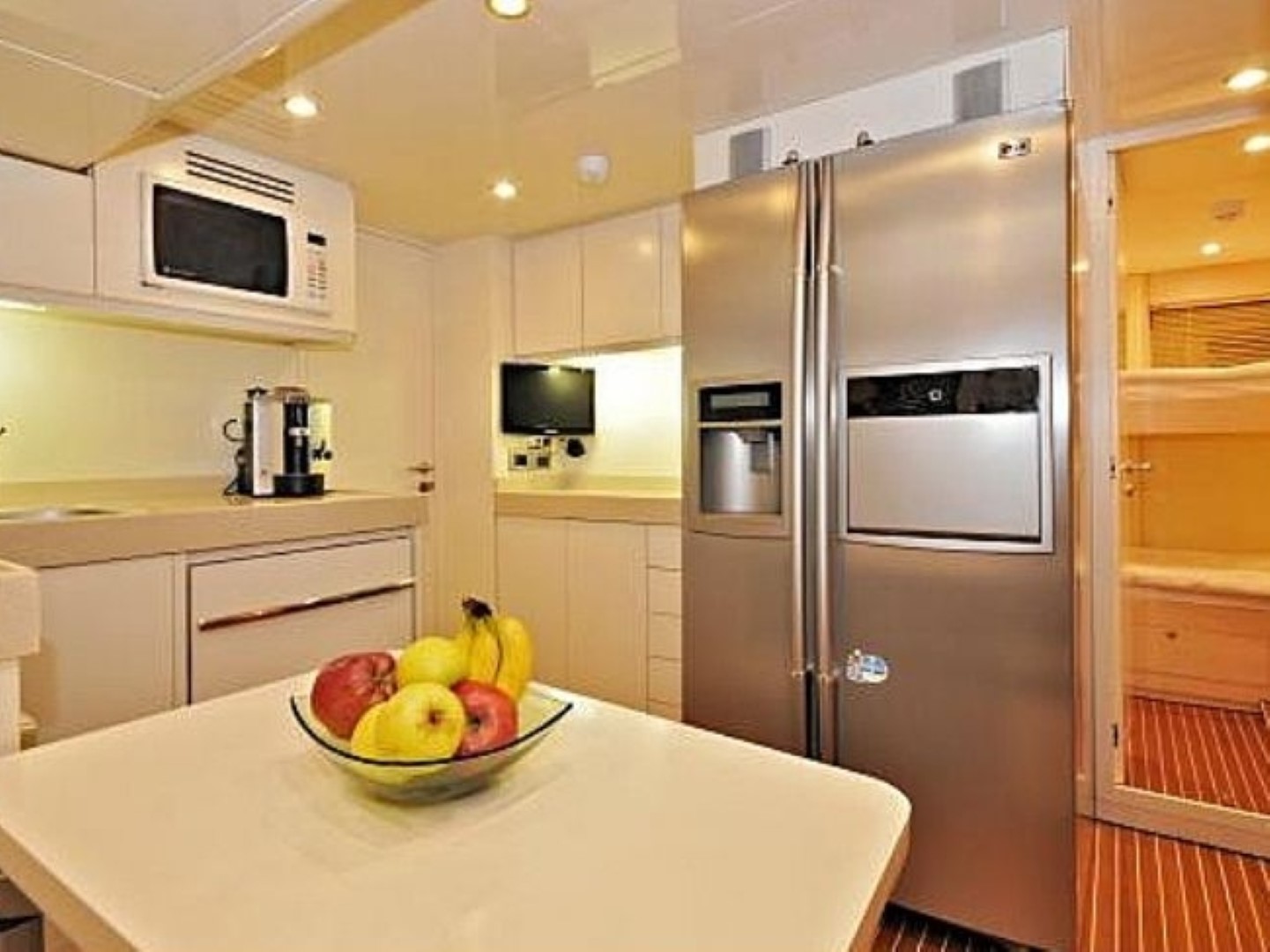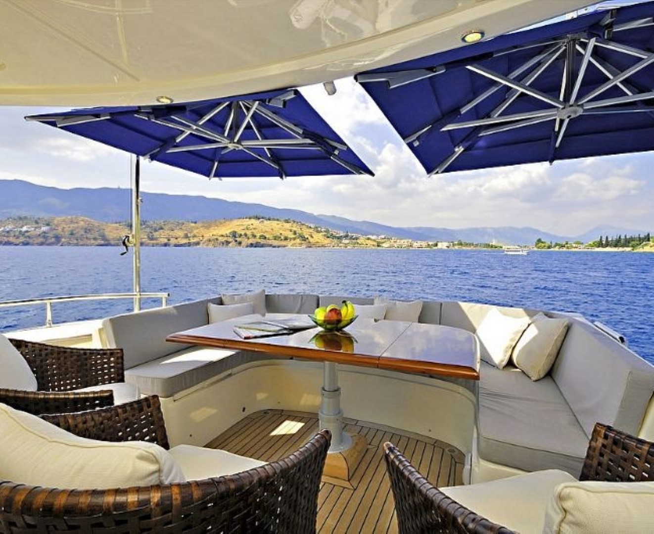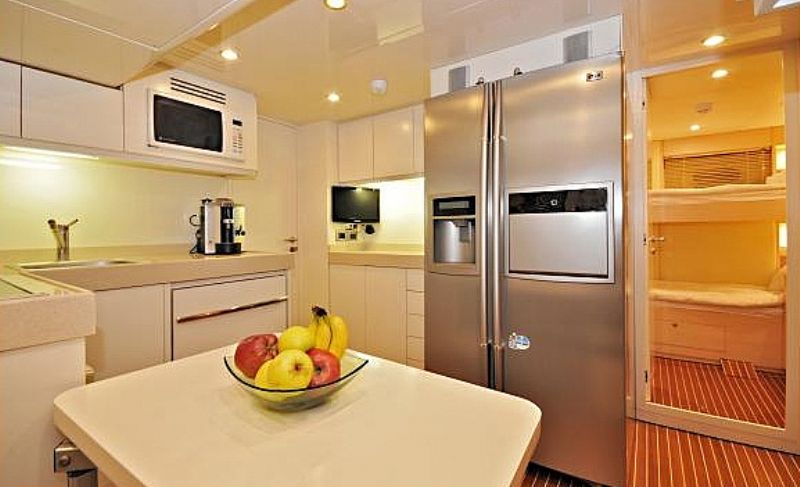 M.T Time Motoryacht has 2 master and 2 double cabins, a total of 4 cabins. Looking for your next adventure. Look no further and book a sailing holiday in Turkey onboard an M.T Time motor yacht. Specially designed and built in 2010, with attention to every detail, this magnificent yacht has one master, one VIP and two guest cabins each with TV, air conditioning and en-suite facilities. She welcomes up to 8 passengers on board. Delicious meals, made from fresh Turkish produce, are prepared in the well-equipped kitchen. Relax, read a book, or sip a cocktail while lounging on the cozy seating either on the deck or in the living room. TV and music system can also be found in the lounge. M.T Time has an exceptional team of 4 who will be at your service throughout your holiday.