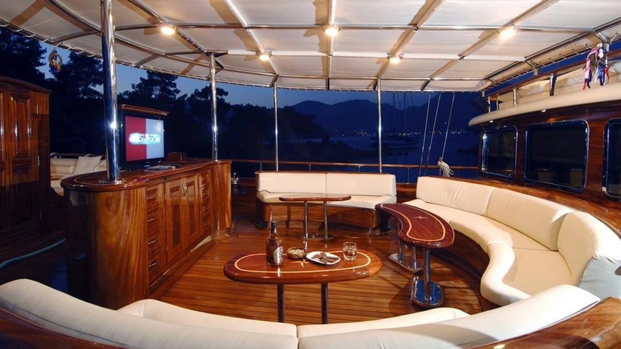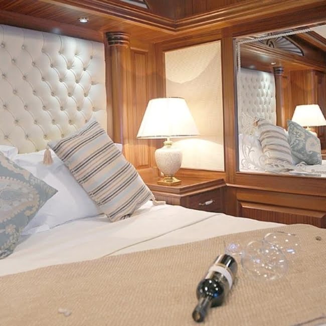 It has the capacity to accommodate a total of 12 guests, including 5 Master Cabins and 1 Twin cabin. TV, DVD, My Music System, and Air