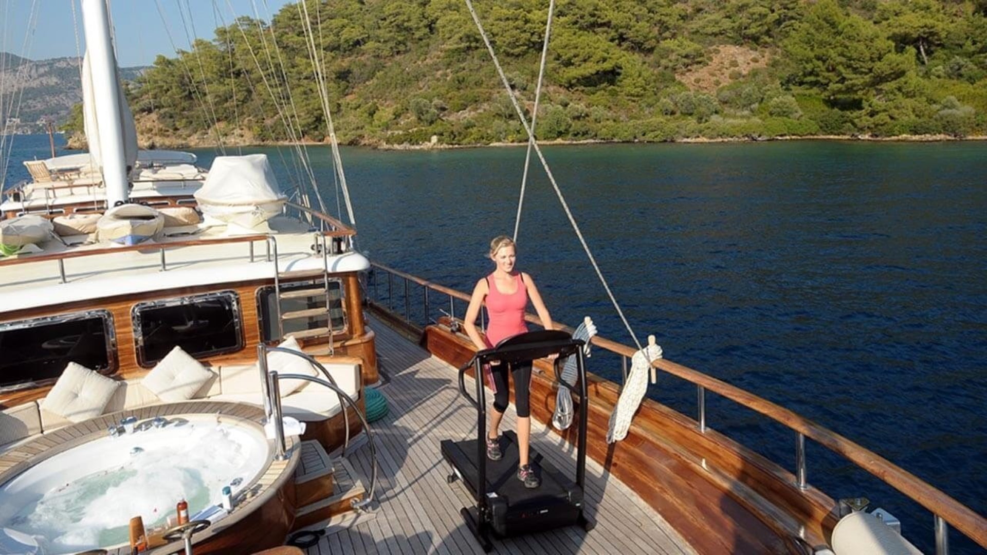 Although there is enough sunbathing area and a sun mat on the outer deck, the jacuzzi creates a pleasant atmosphere.