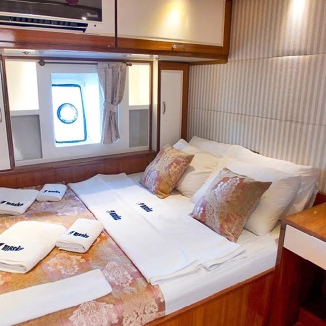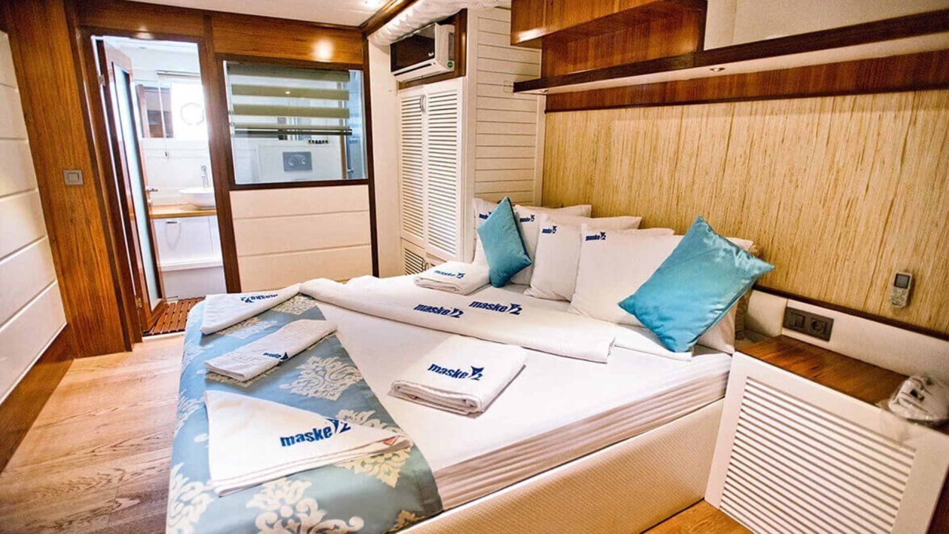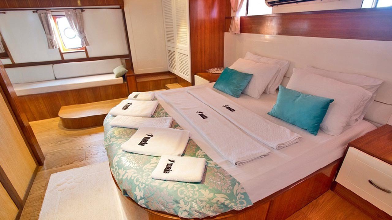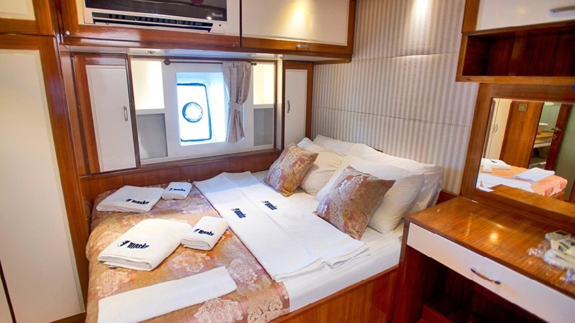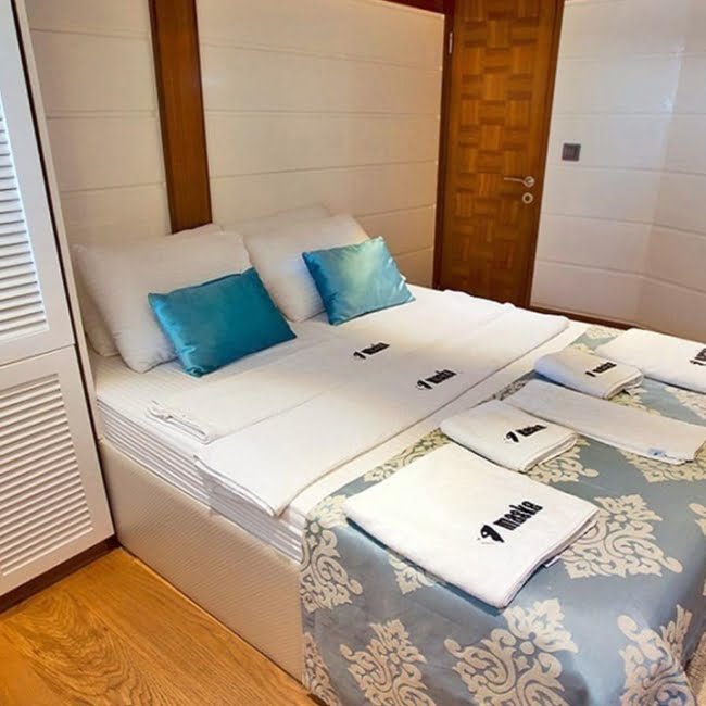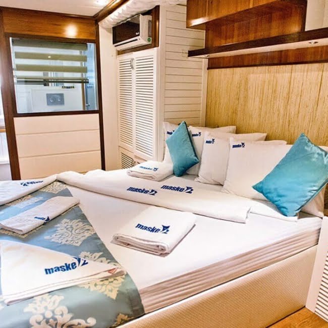 Our yacht has wide and comfortable cabins has a total of 6 Cabins, 2 Master Cabins, 3 Double Cabins, and 2 Twin Cabins.