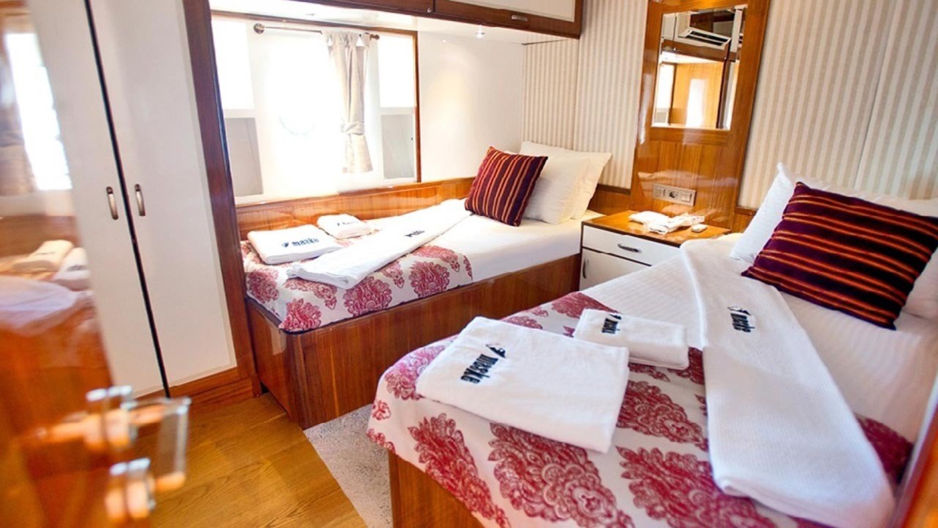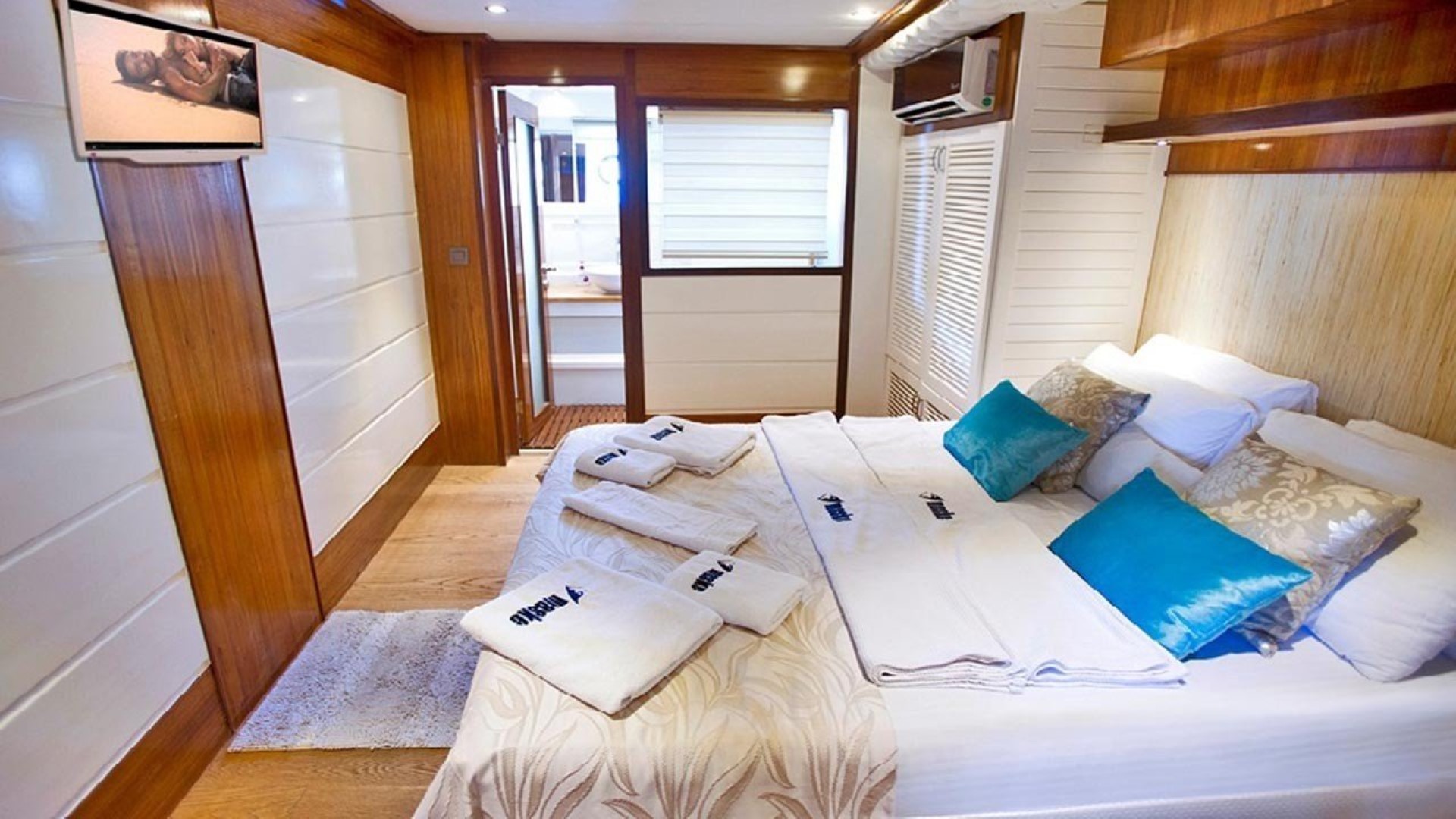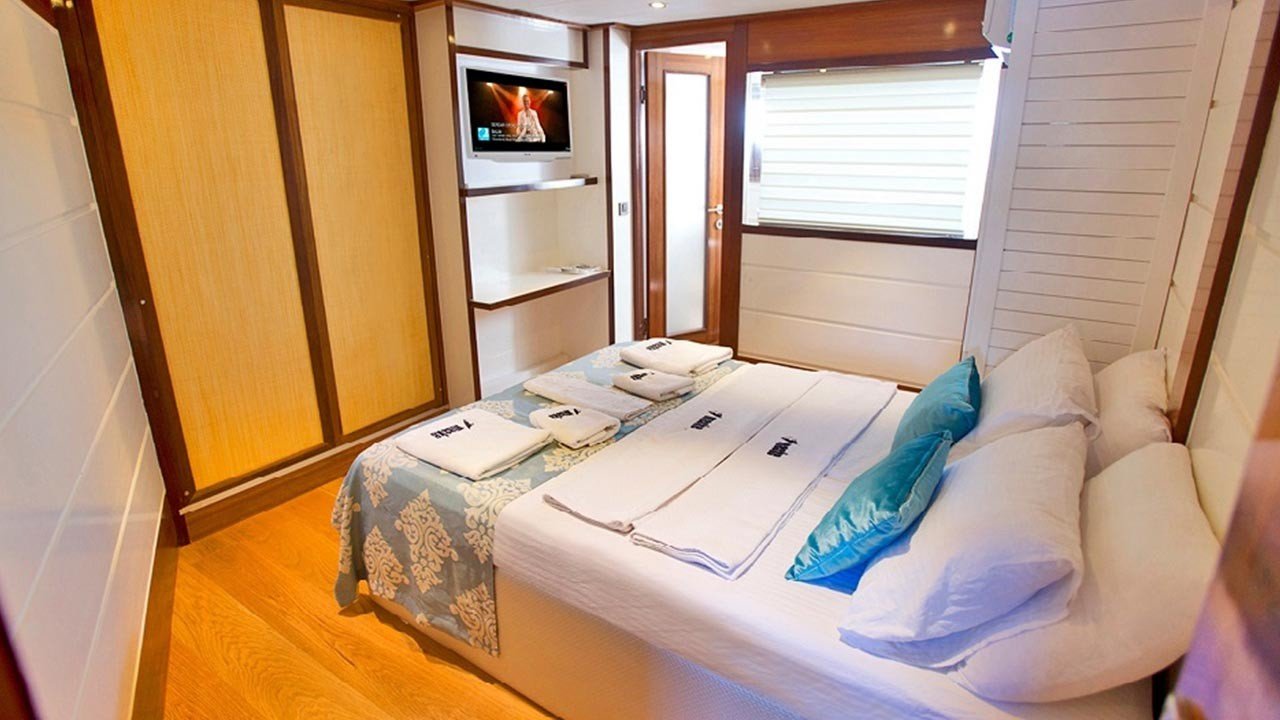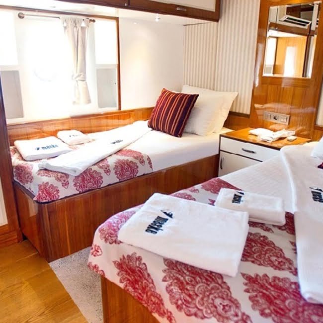 Tv, Air Conditioning, Shower & WC are available in all cabins of our gulet which can accommodate 12 guests.