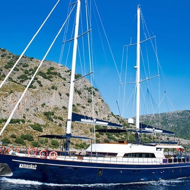 Gulet Maske 2 was built in 2013 with a length of 30 meters and a width of 7 meters.