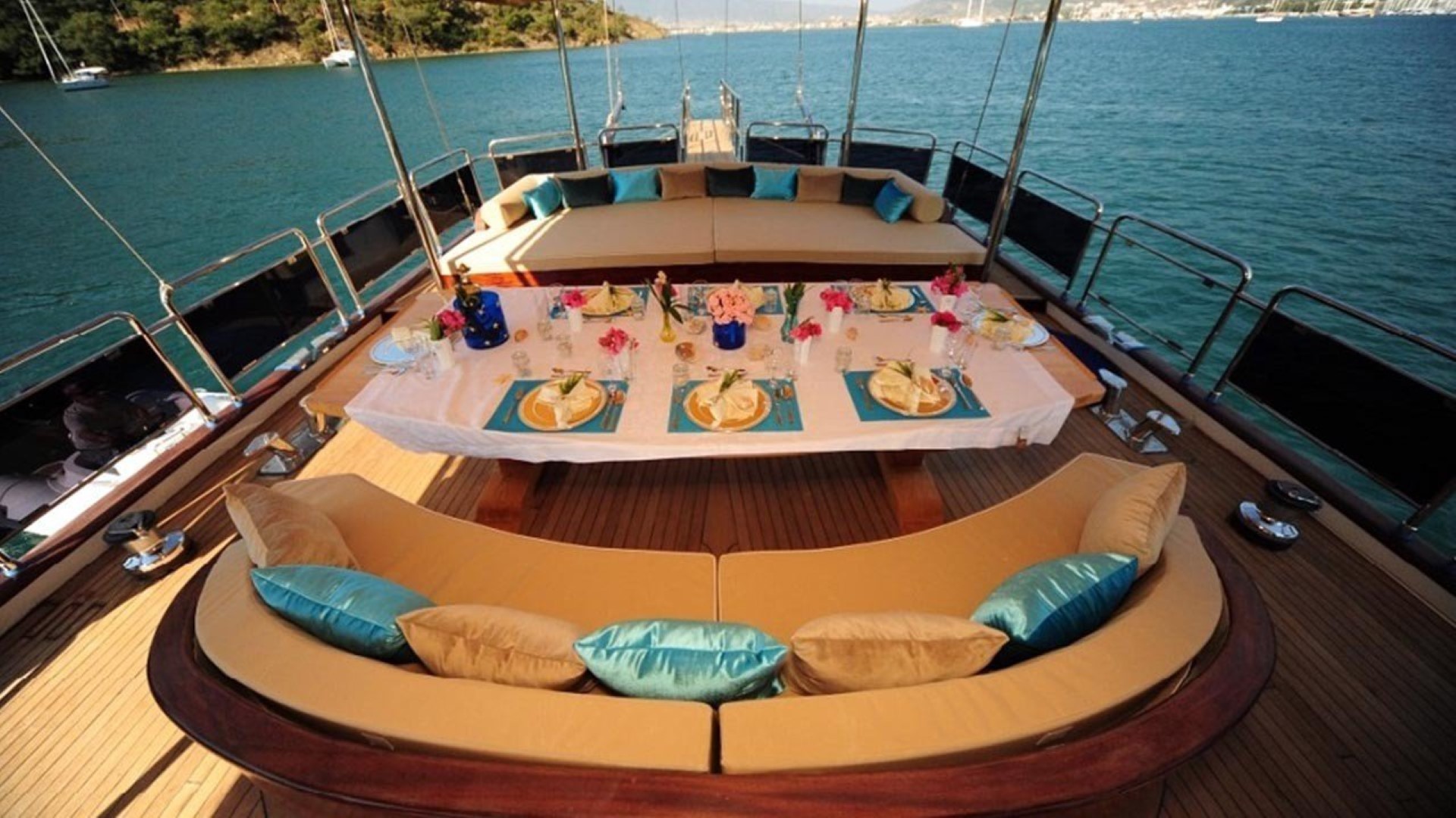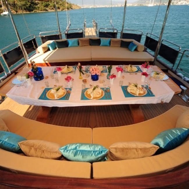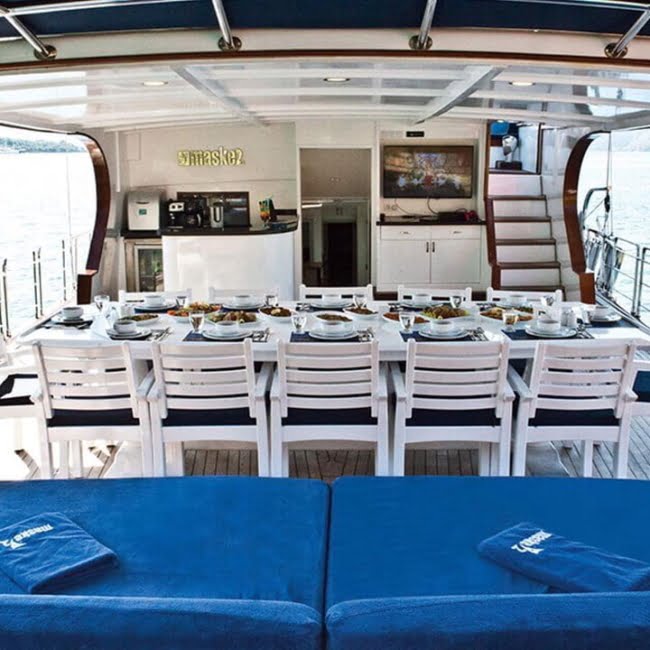 On the other hand, sun awnings, sunbeds, sea ladders, and shower facilities on the deck are among the other advantages of the boat.