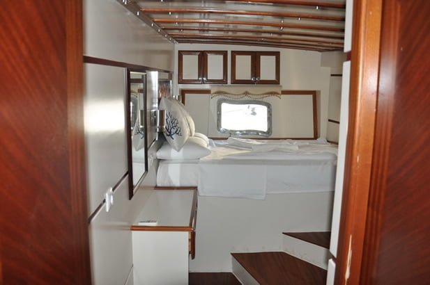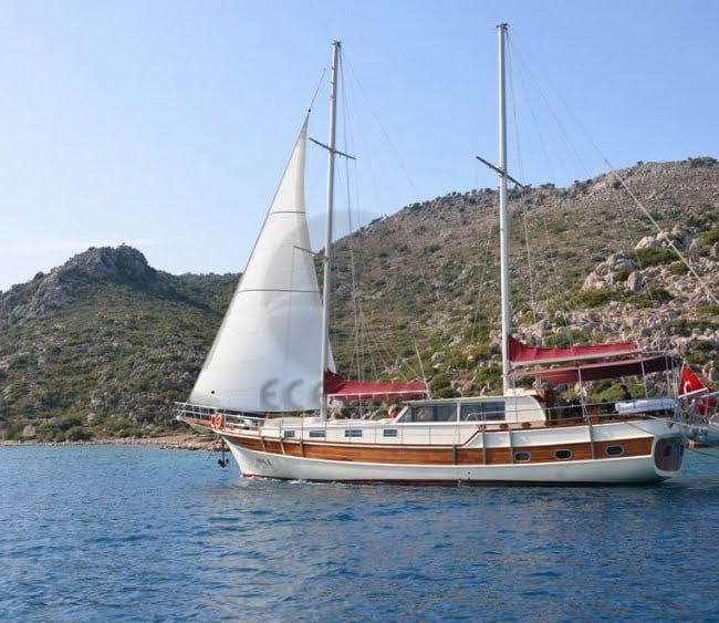 Gulet Miraç A was launched in 2012! She attracts attention with her 24 metre length, spacious living areas and comfortable cabins. Miraç A has 2 master and 2 double cabins, each designed for your contentment with air conditioning and en-suite facilities. She sleeps up to 8 guests. In her beautiful lounge, she has a TV and a music system for your entertainment. Want to explore the sea a bit more? Canoe, fishing and snorkel equipment are also onboard your gulet.