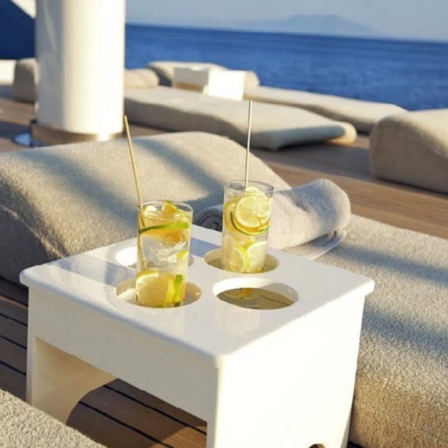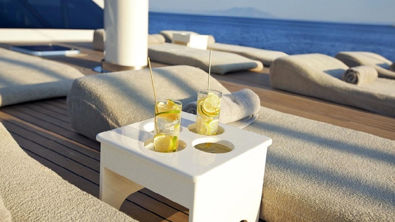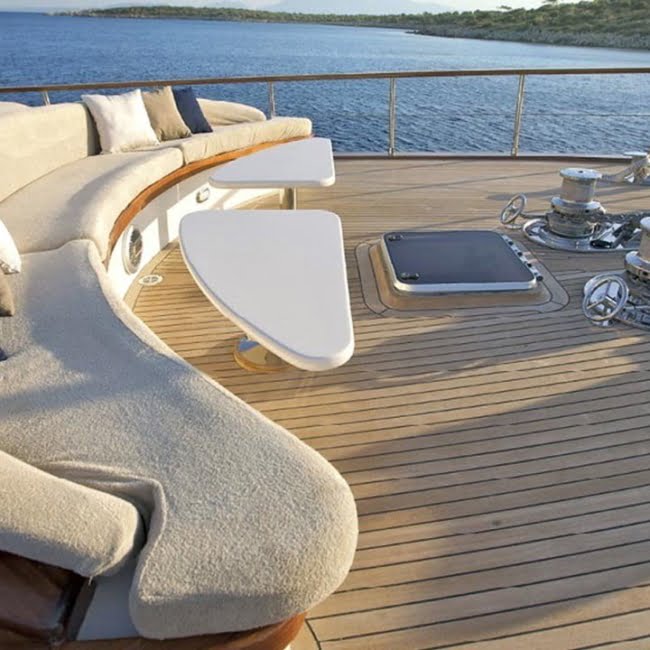 There is a large sunbathing area on the front deck and sunbeds and beanbags.