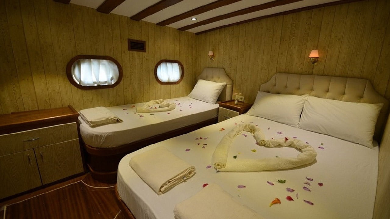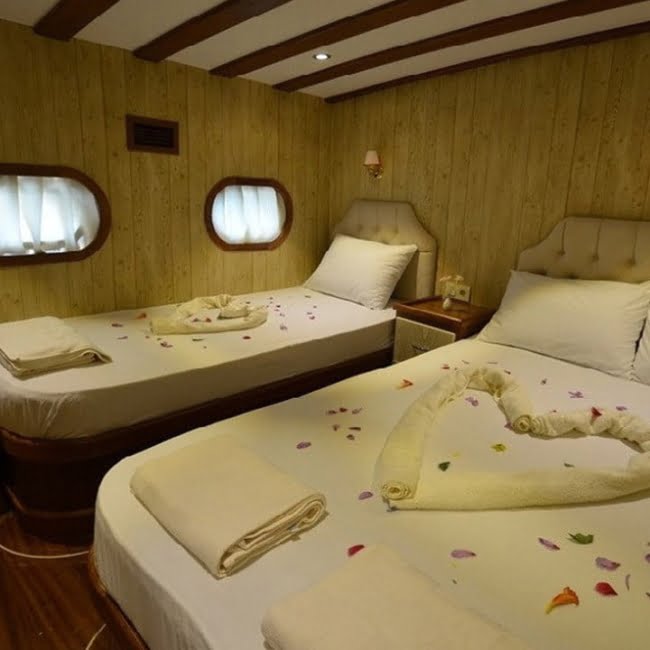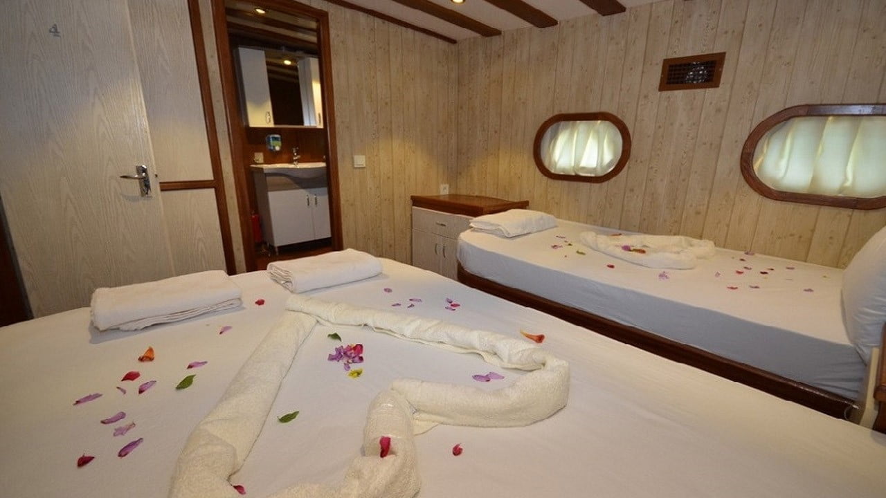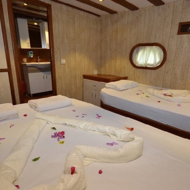 A total of 12 guests can host in 1 Master Cabin, 3 Double Cabins and 2 Triple Cabins.